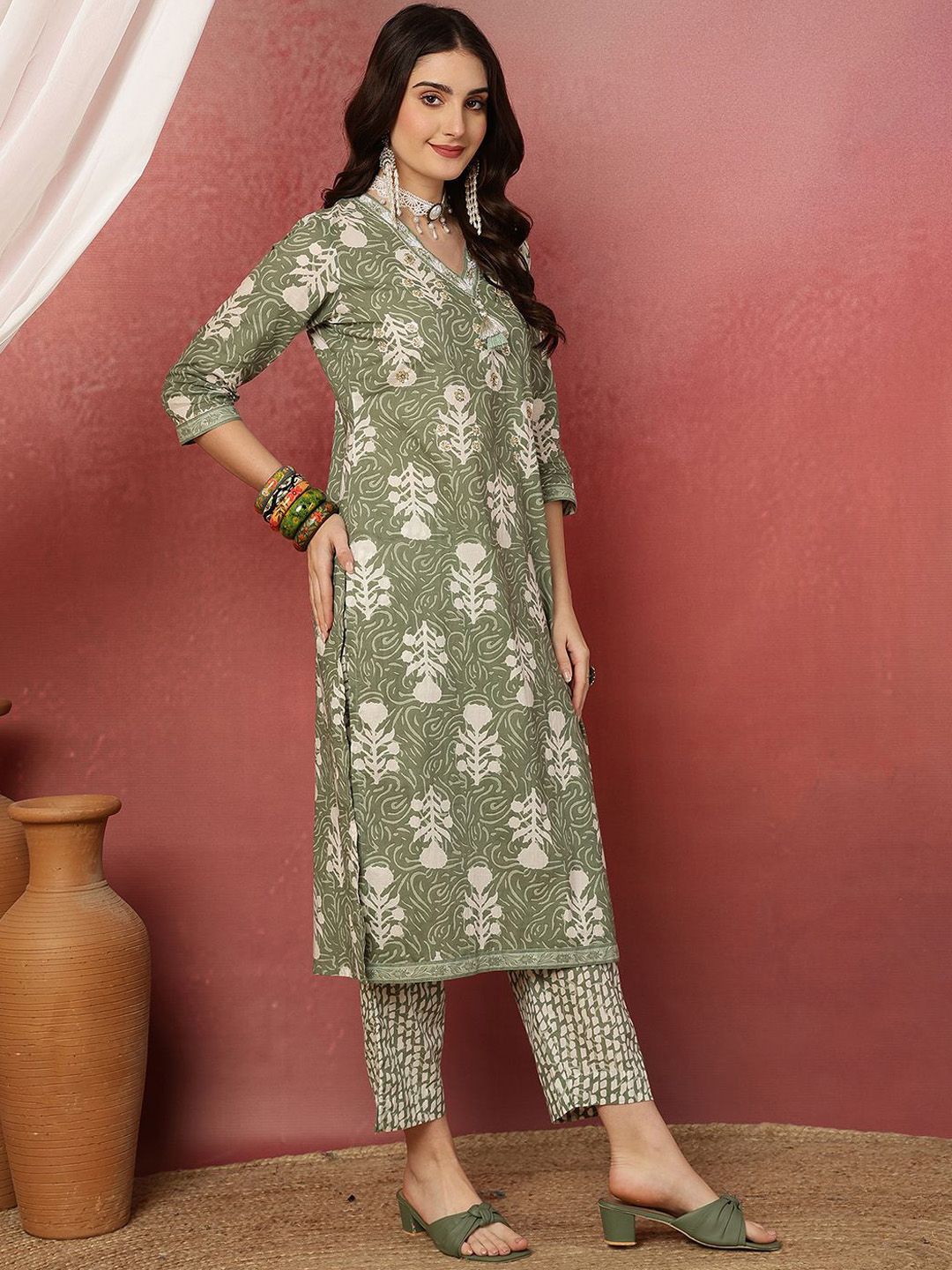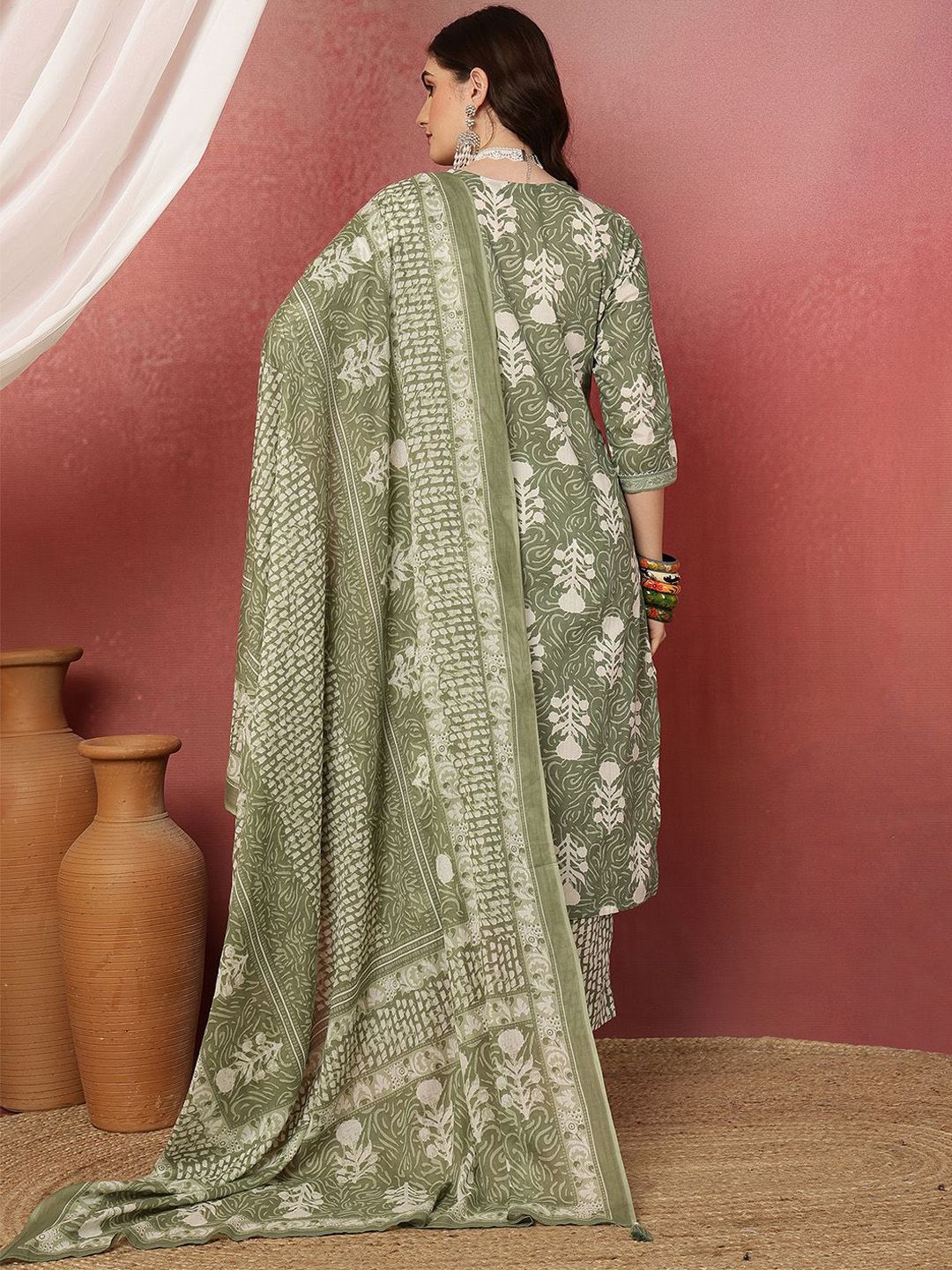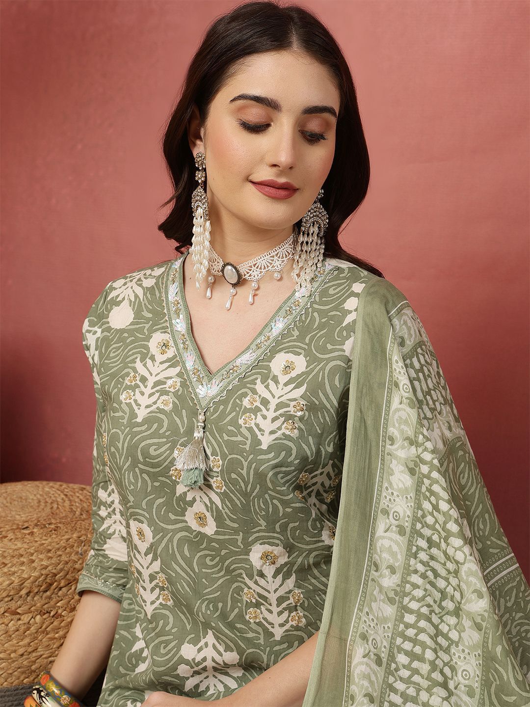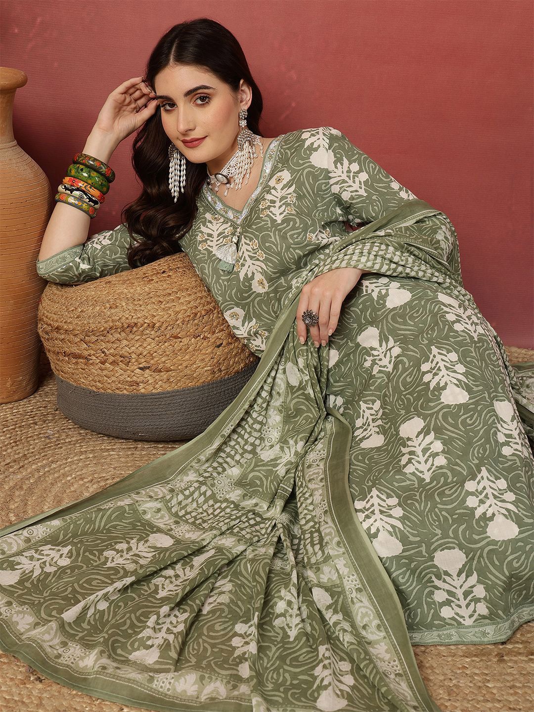 Anouk Women Ethnic Motifs Printed Cotton Kurta with Trousers & Dupatta