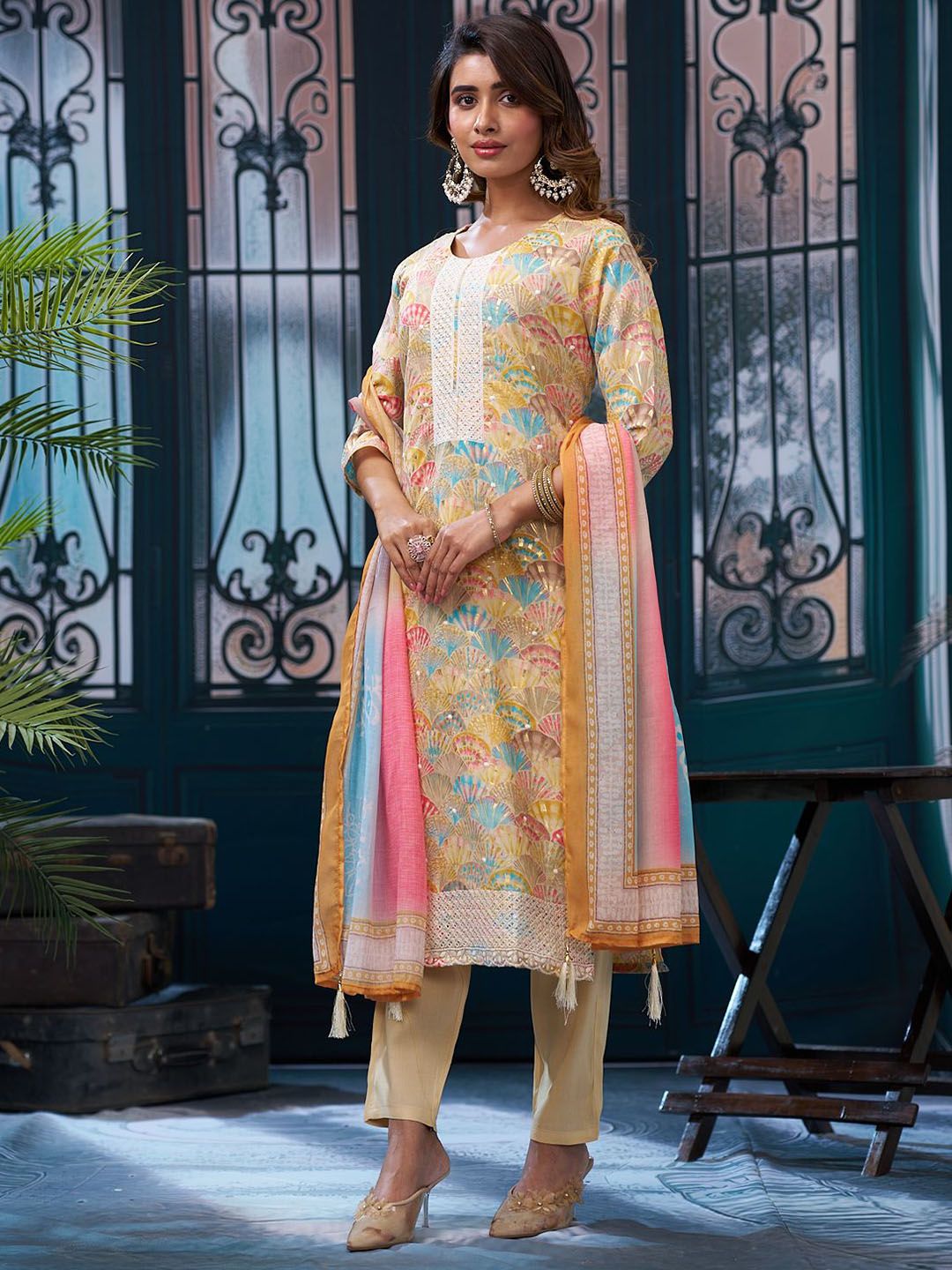 Anouk Women Ethnic Motifs Printed Kurta with Trousers & Dupatta