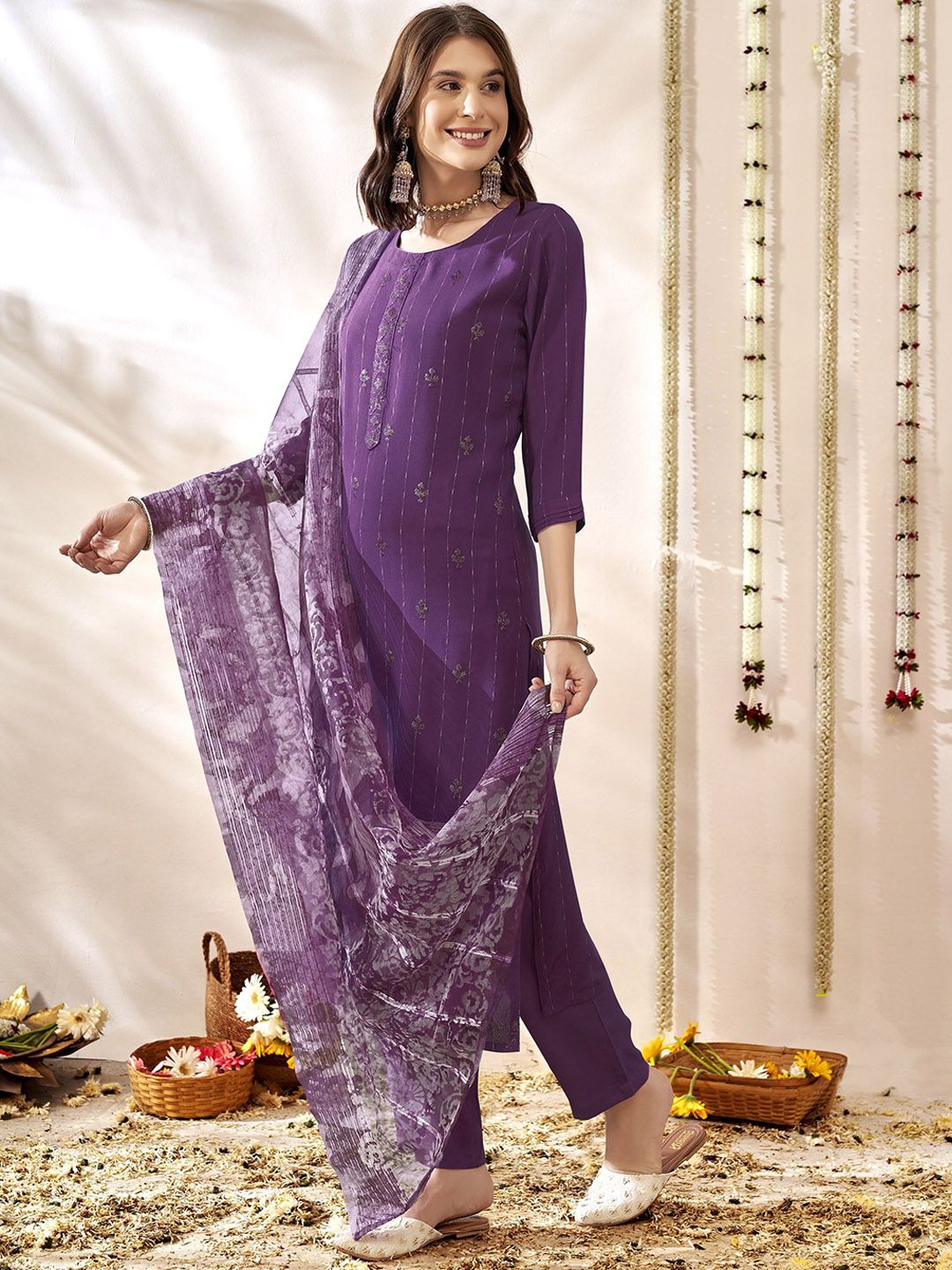 Anouk Women Ethnic Motifs Striped Kurta with Trousers & Dupatta