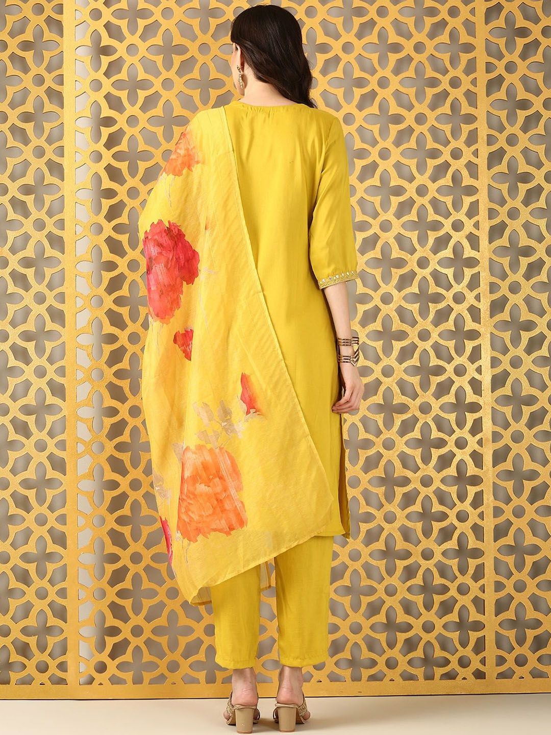 Anouk Women Ethnic Motifs Yoke Design Embroidered Sequinned Kurta With Trousers & Dupatta