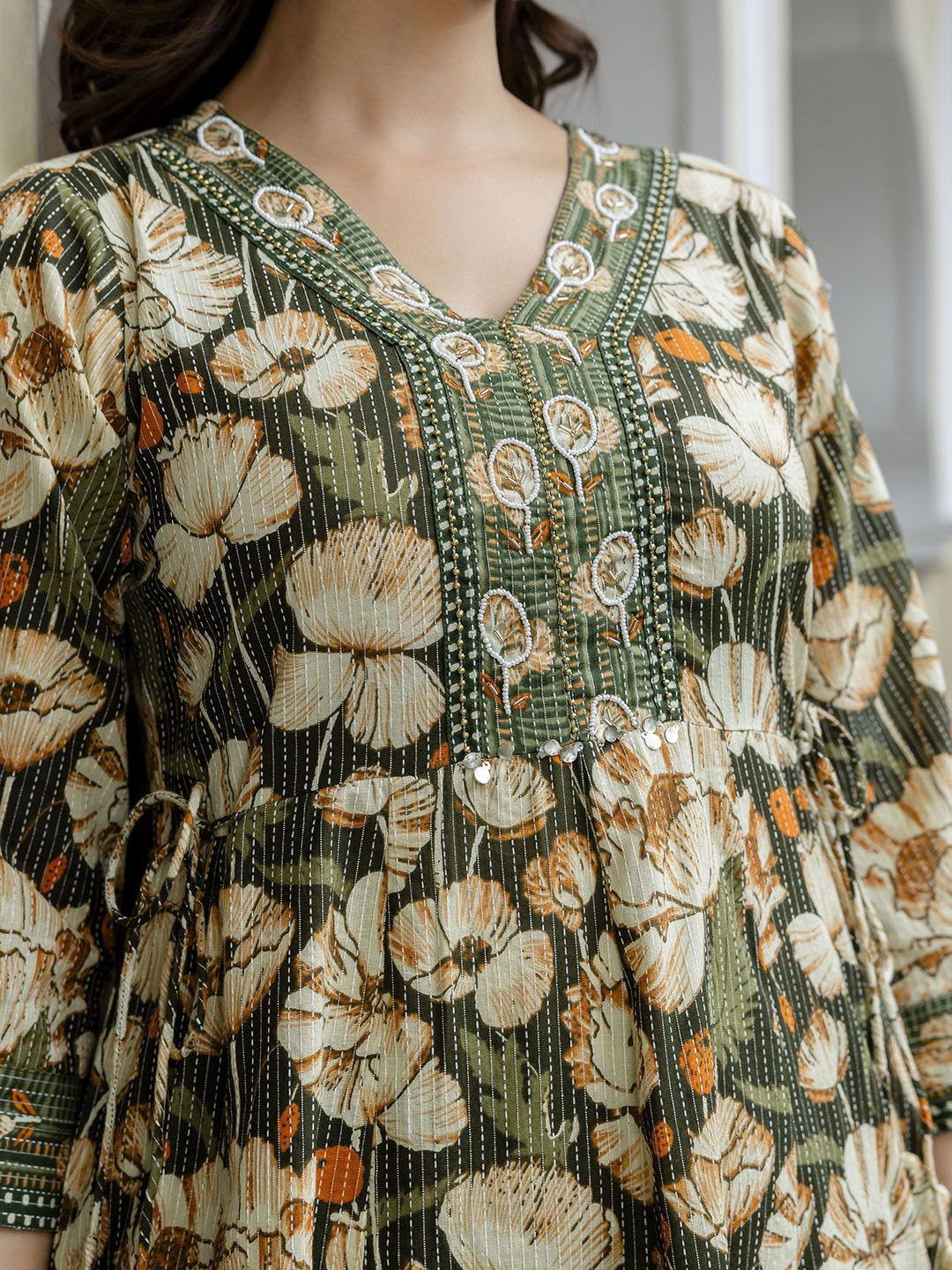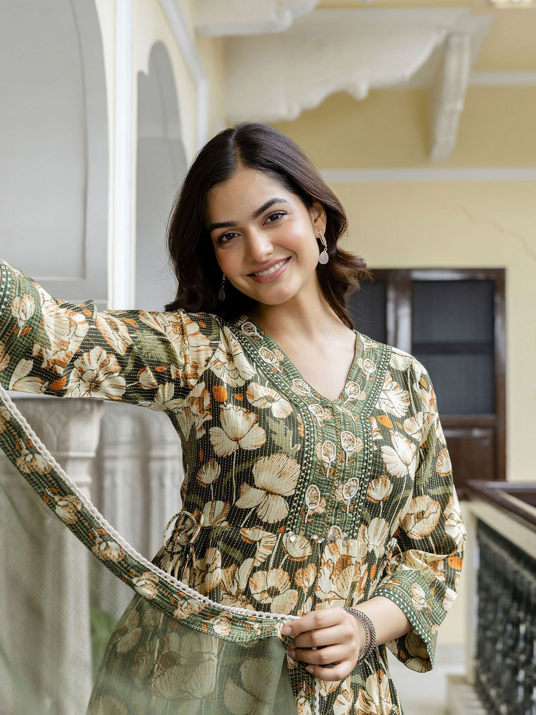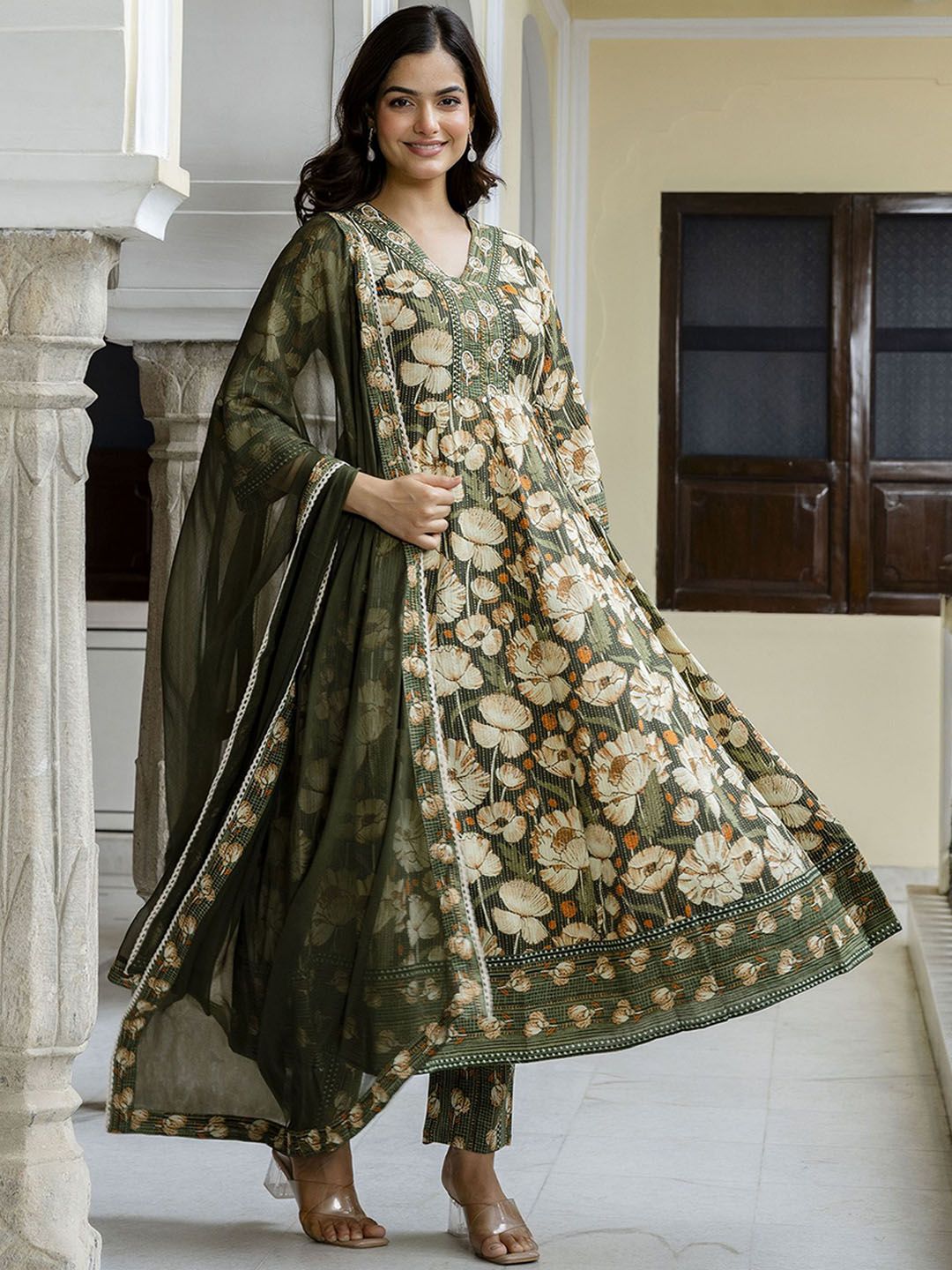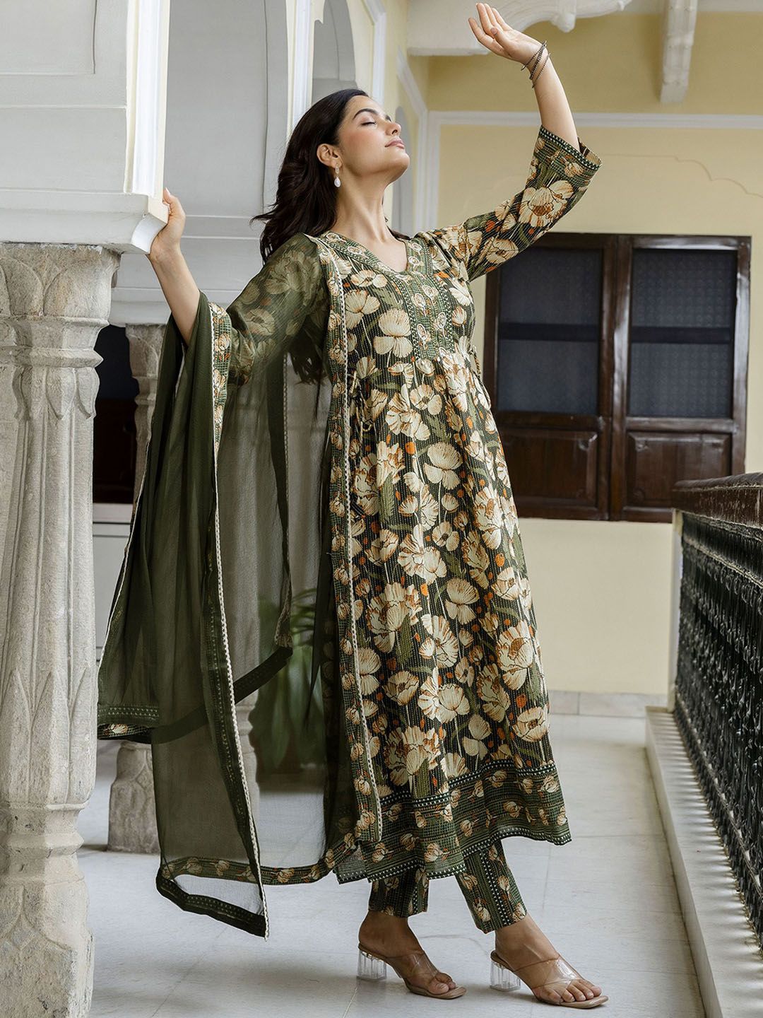 Anouk Women Floral Embroidered Cotton Kurta with Pyjama & Dupatta