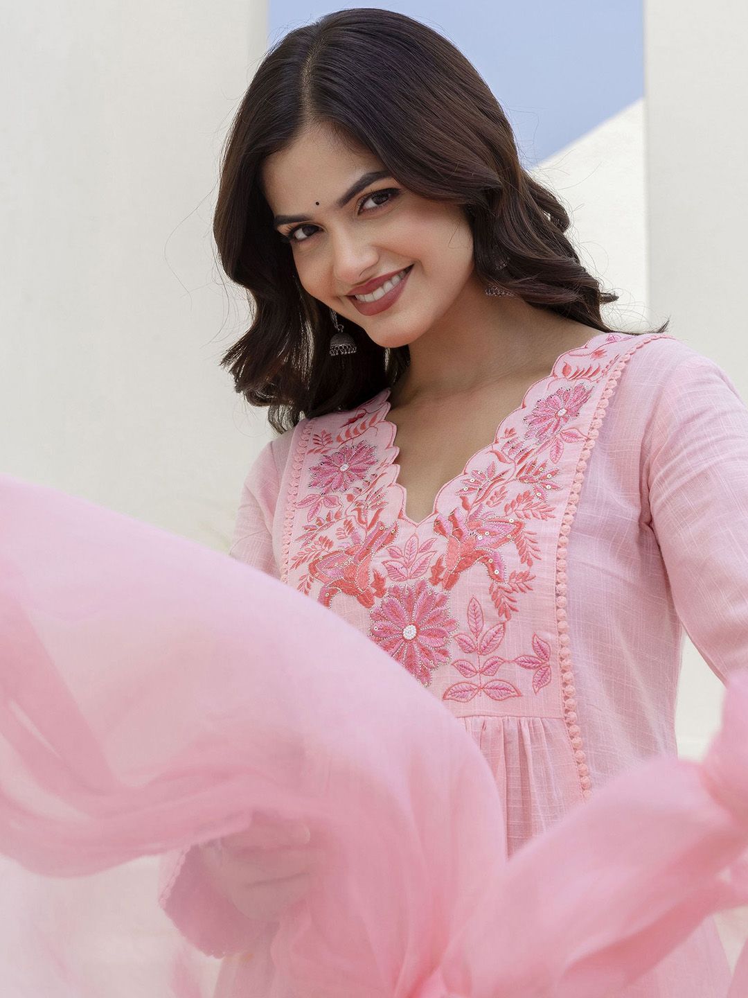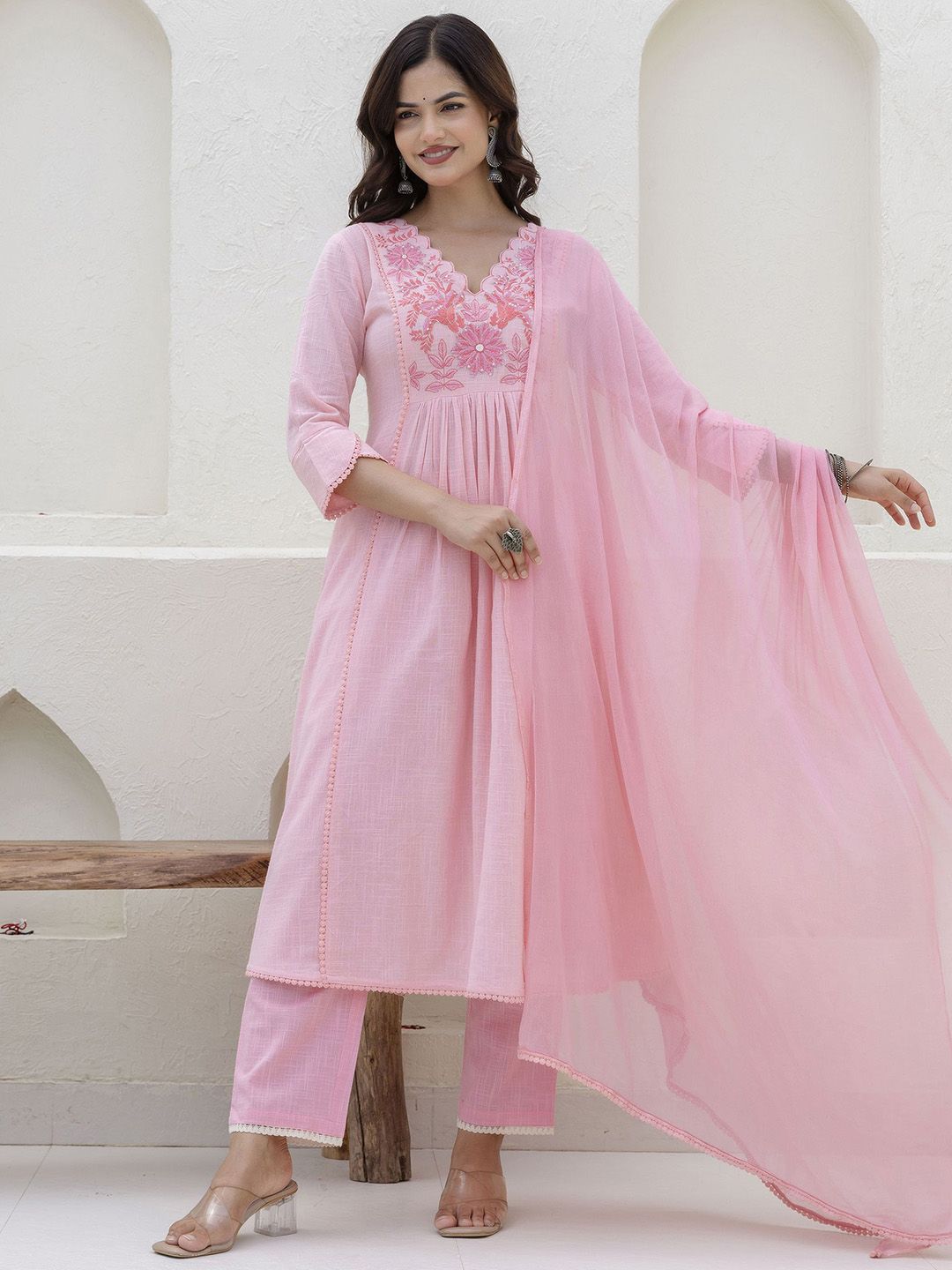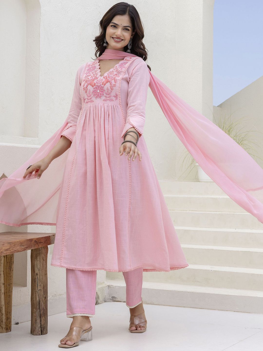 Anouk Women Floral Embroidered Cotton Kurta with Trousers & Dupatta