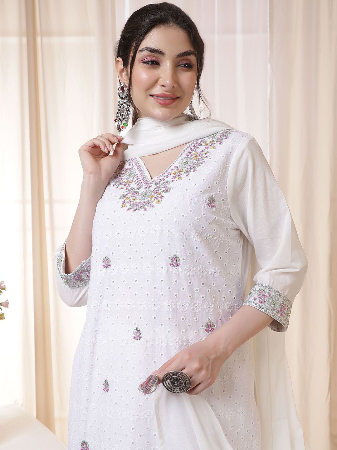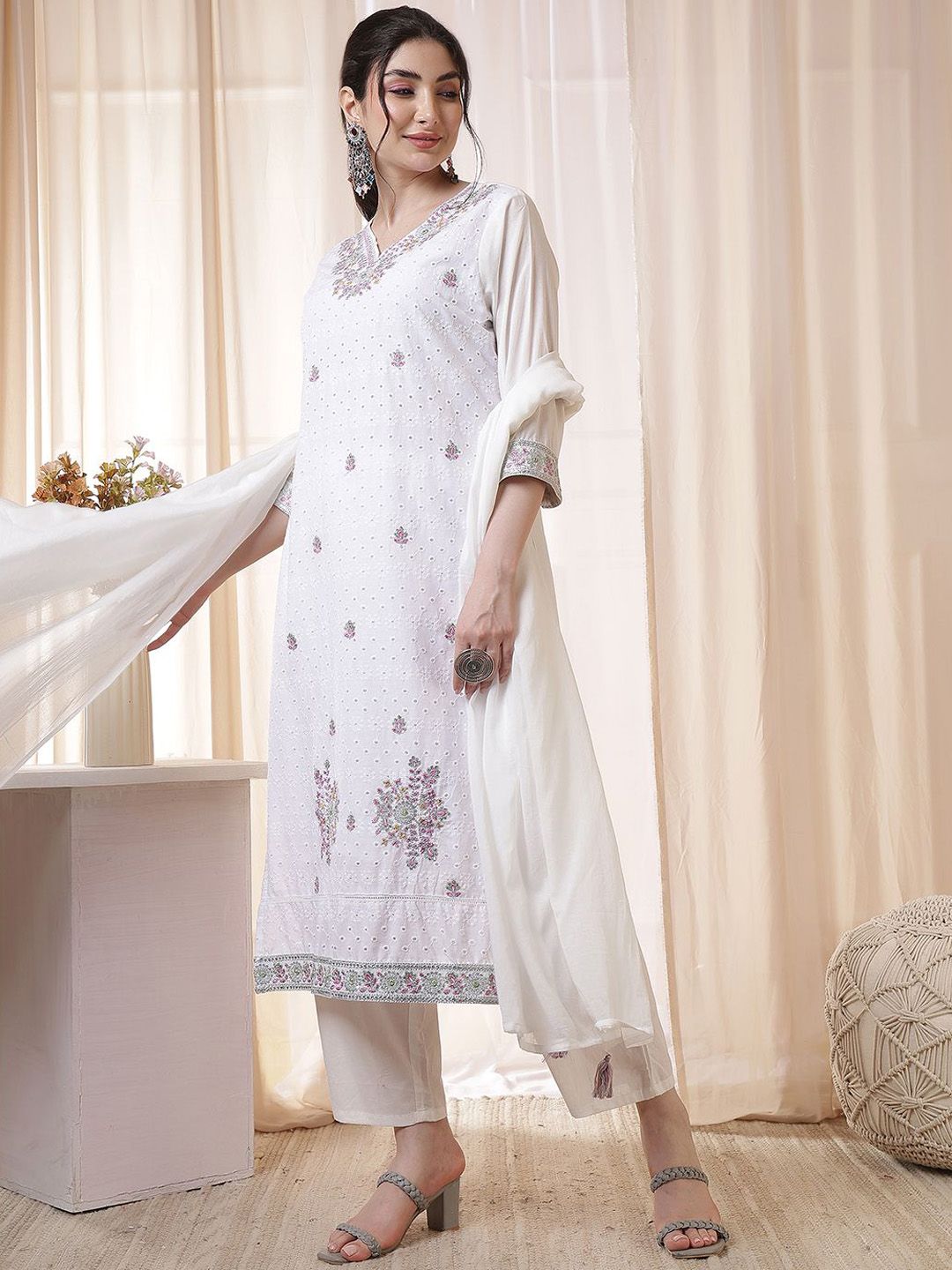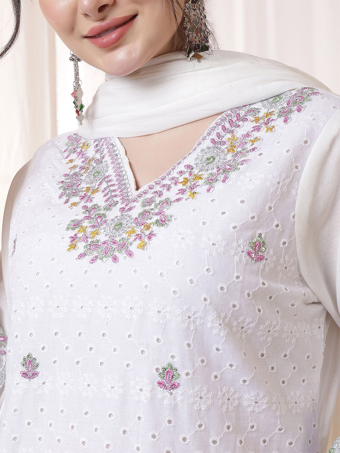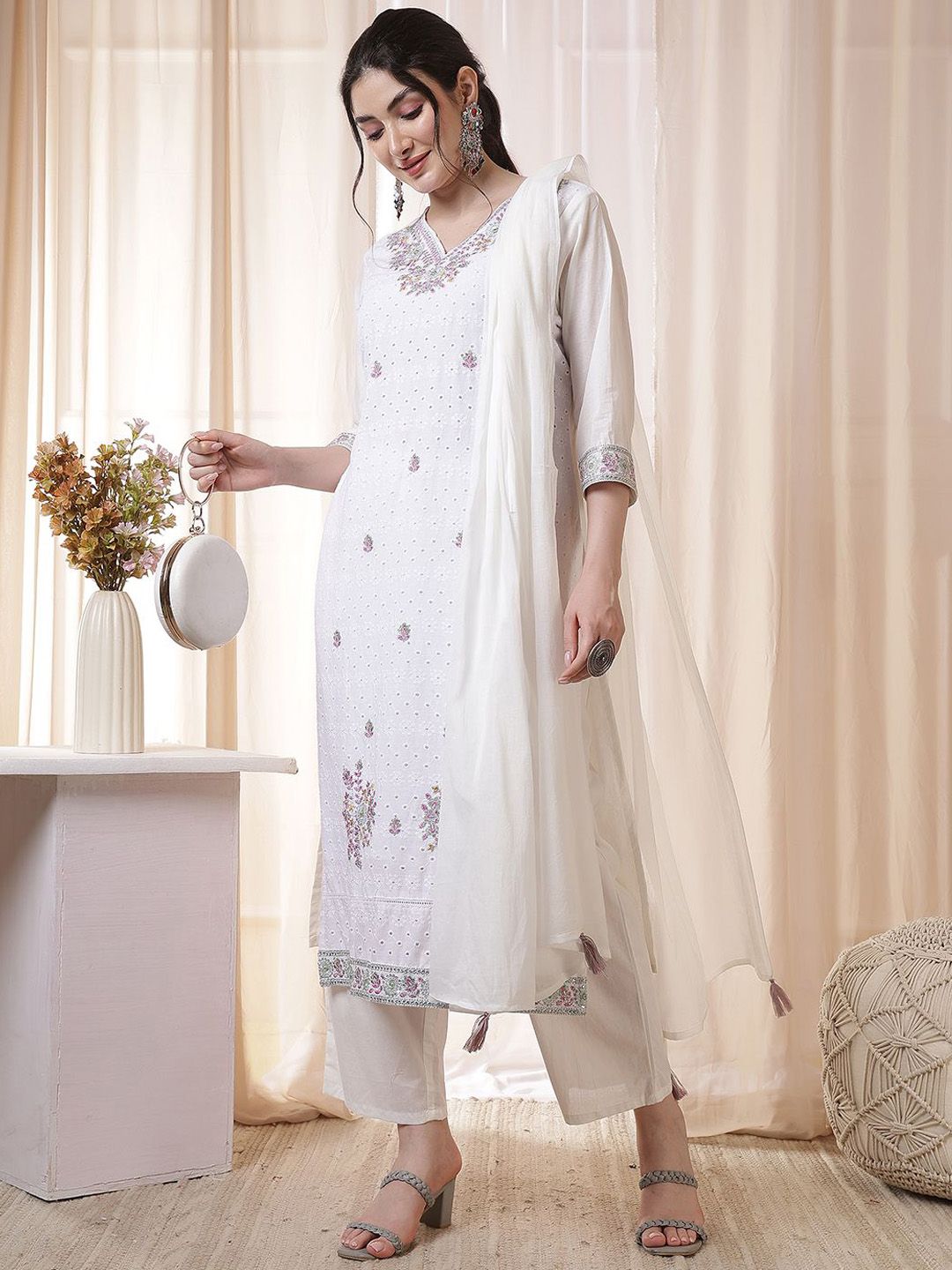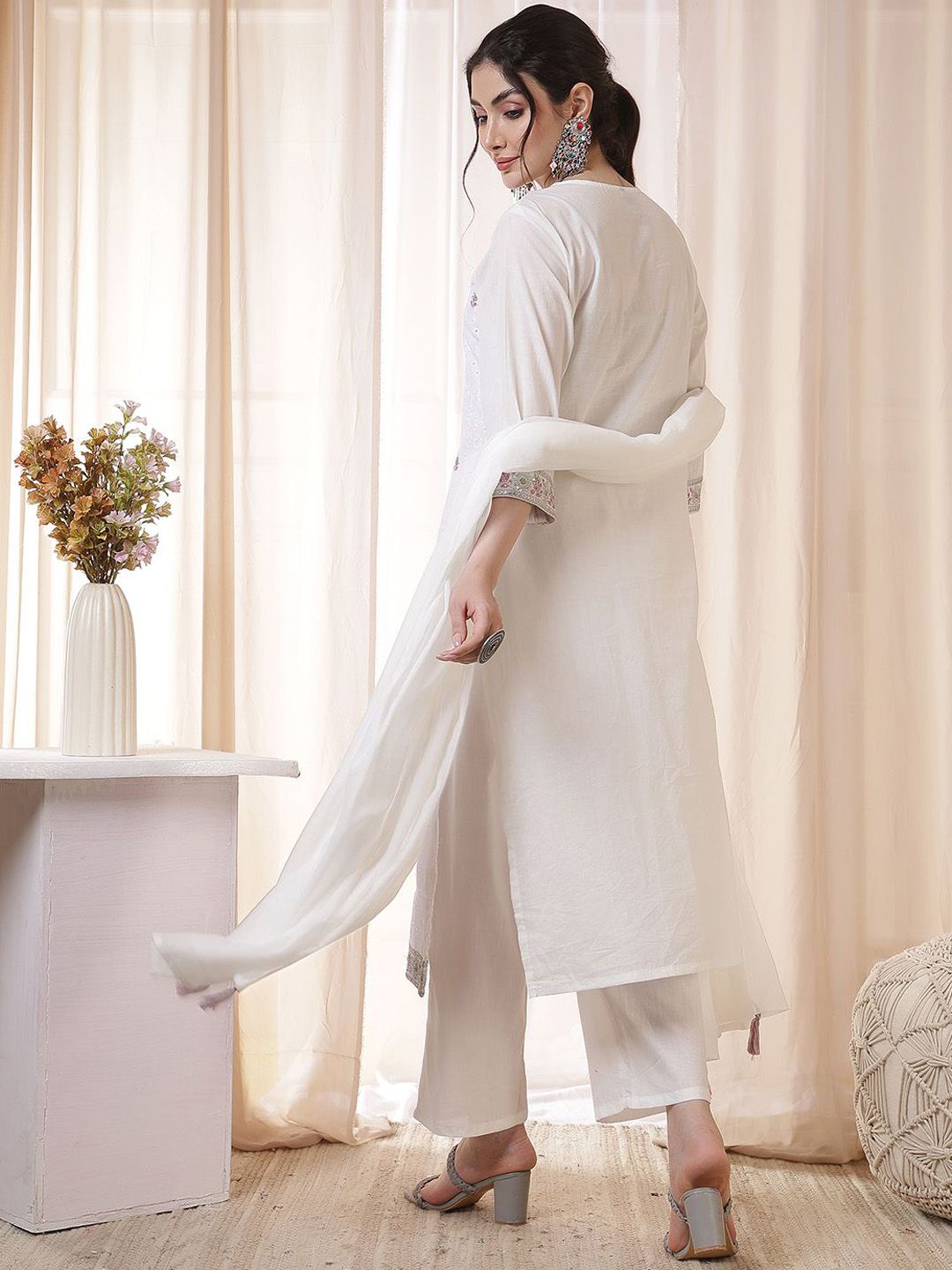 Anouk Women Floral Embroidered Cotton Kurta with Trousers & Dupatta