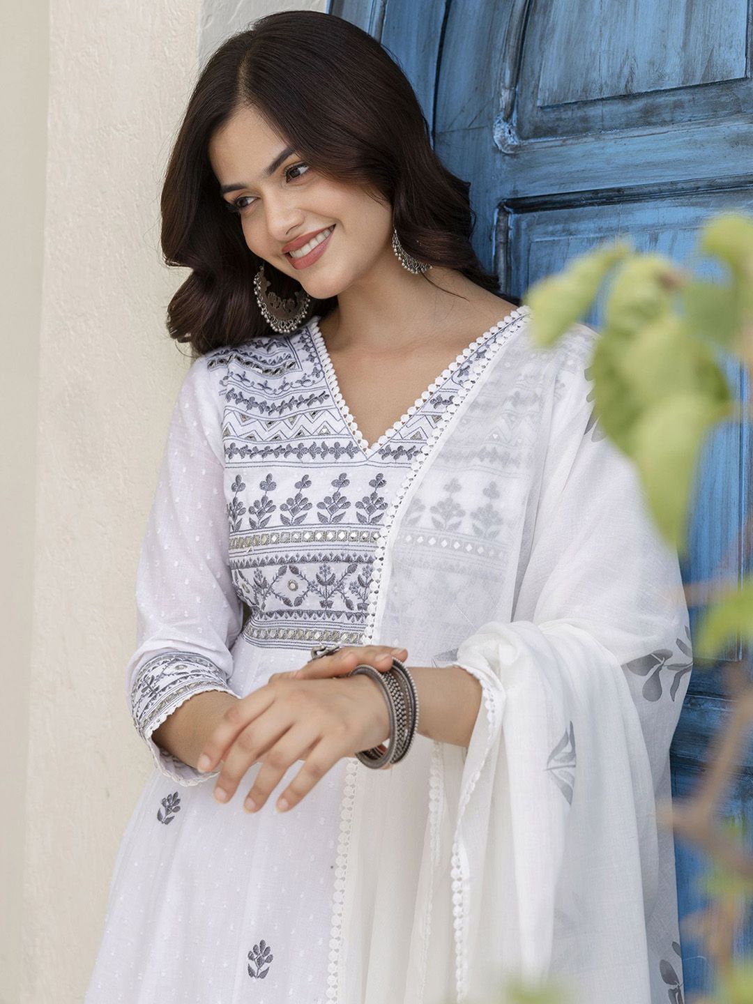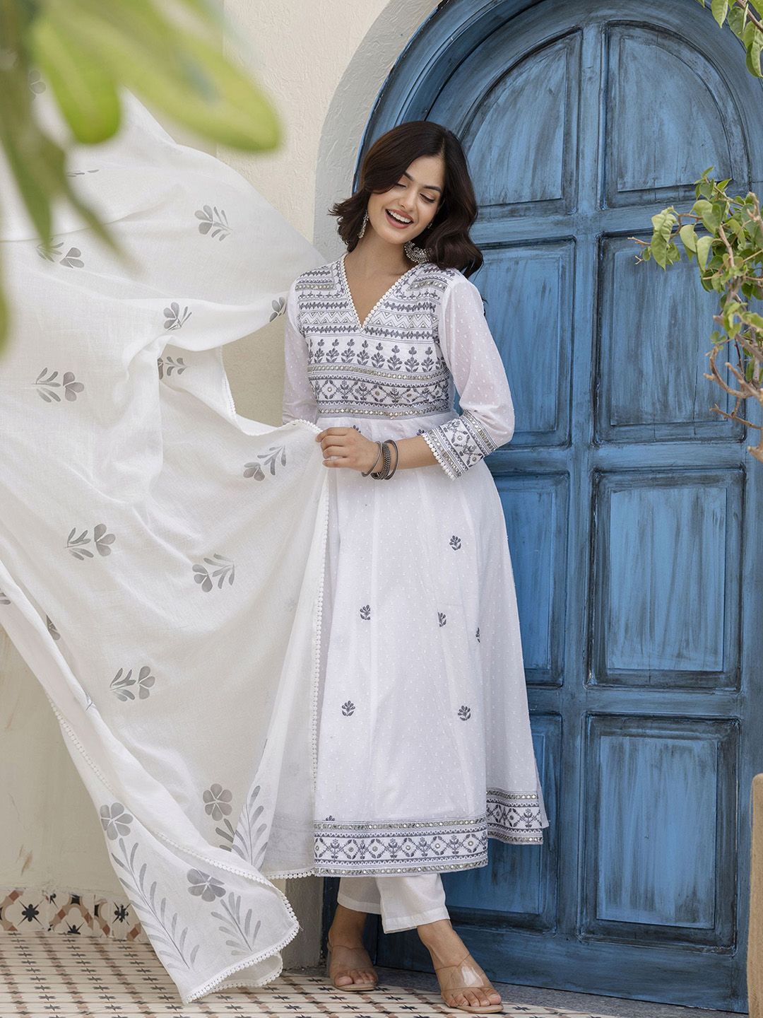Anouk Women Floral Embroidered Cotton Kurta with Trousers & Dupatta