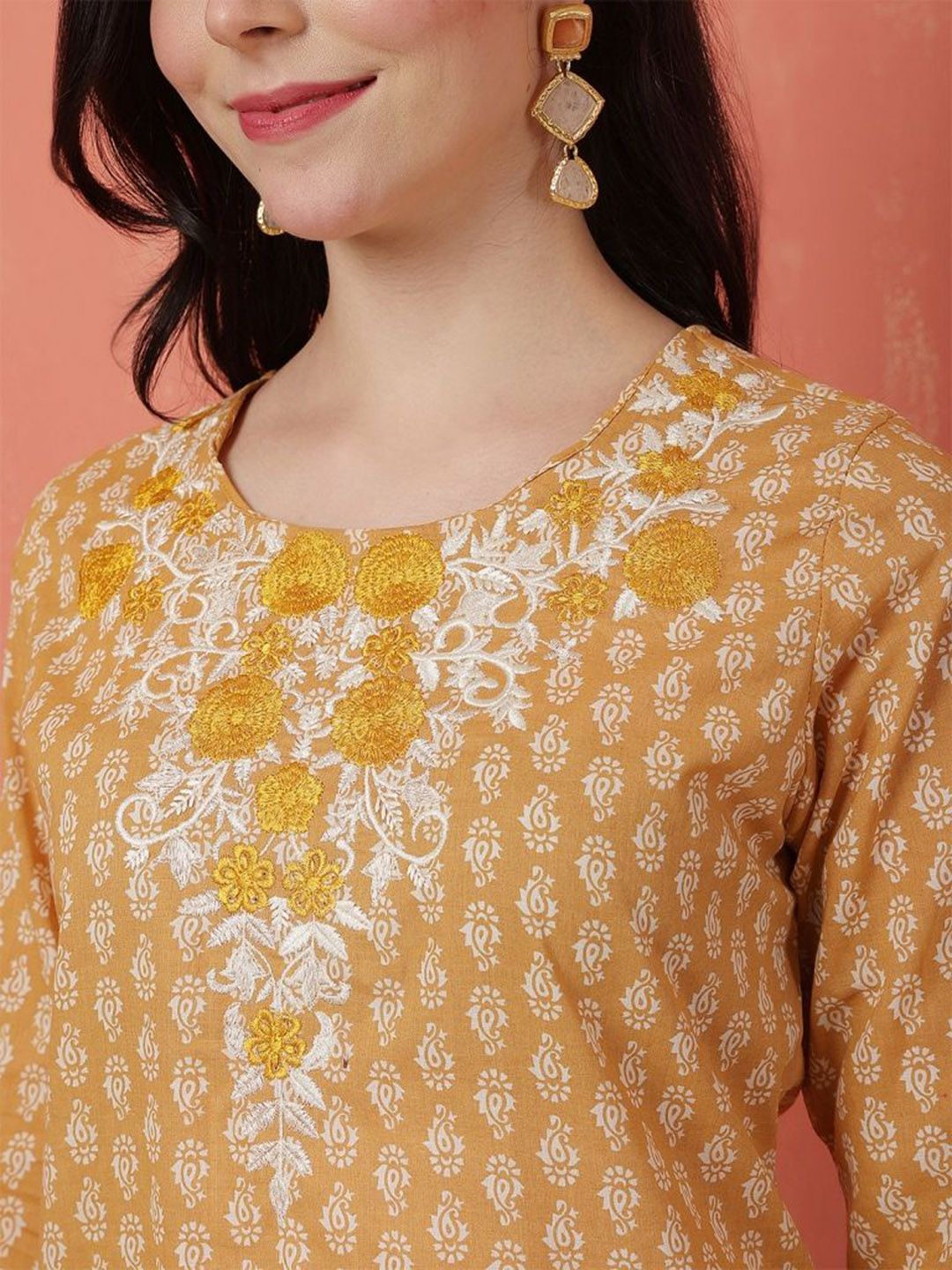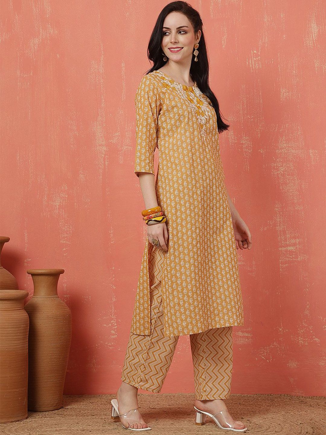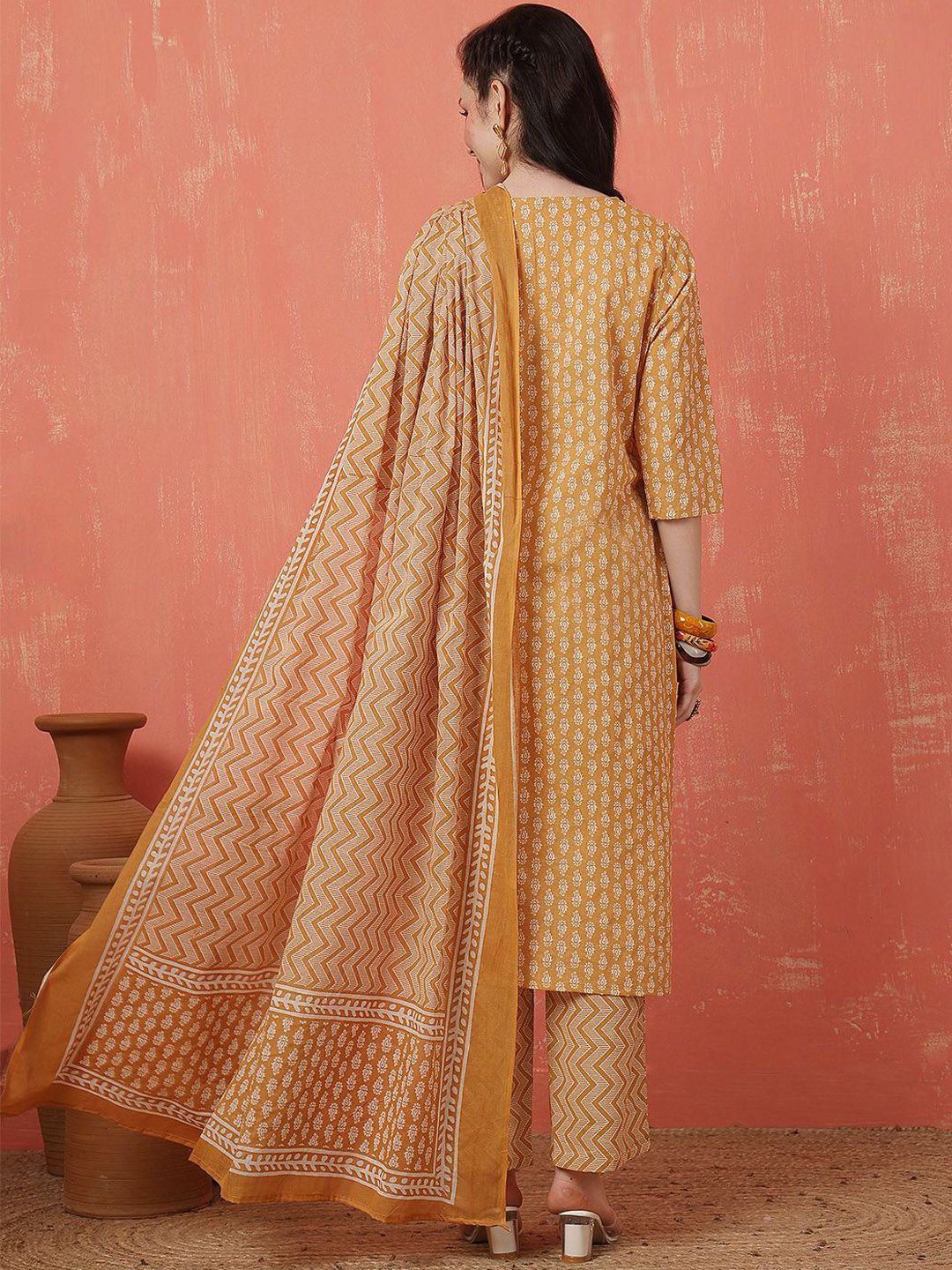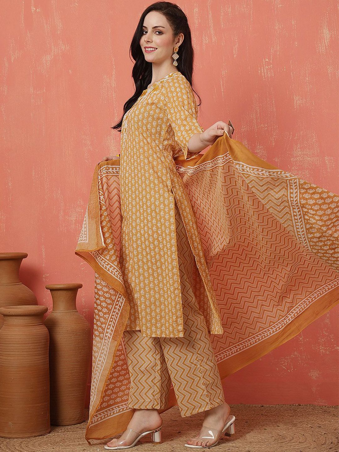 Anouk Women Floral Embroidered Cotton Kurta with Trousers & Dupatta