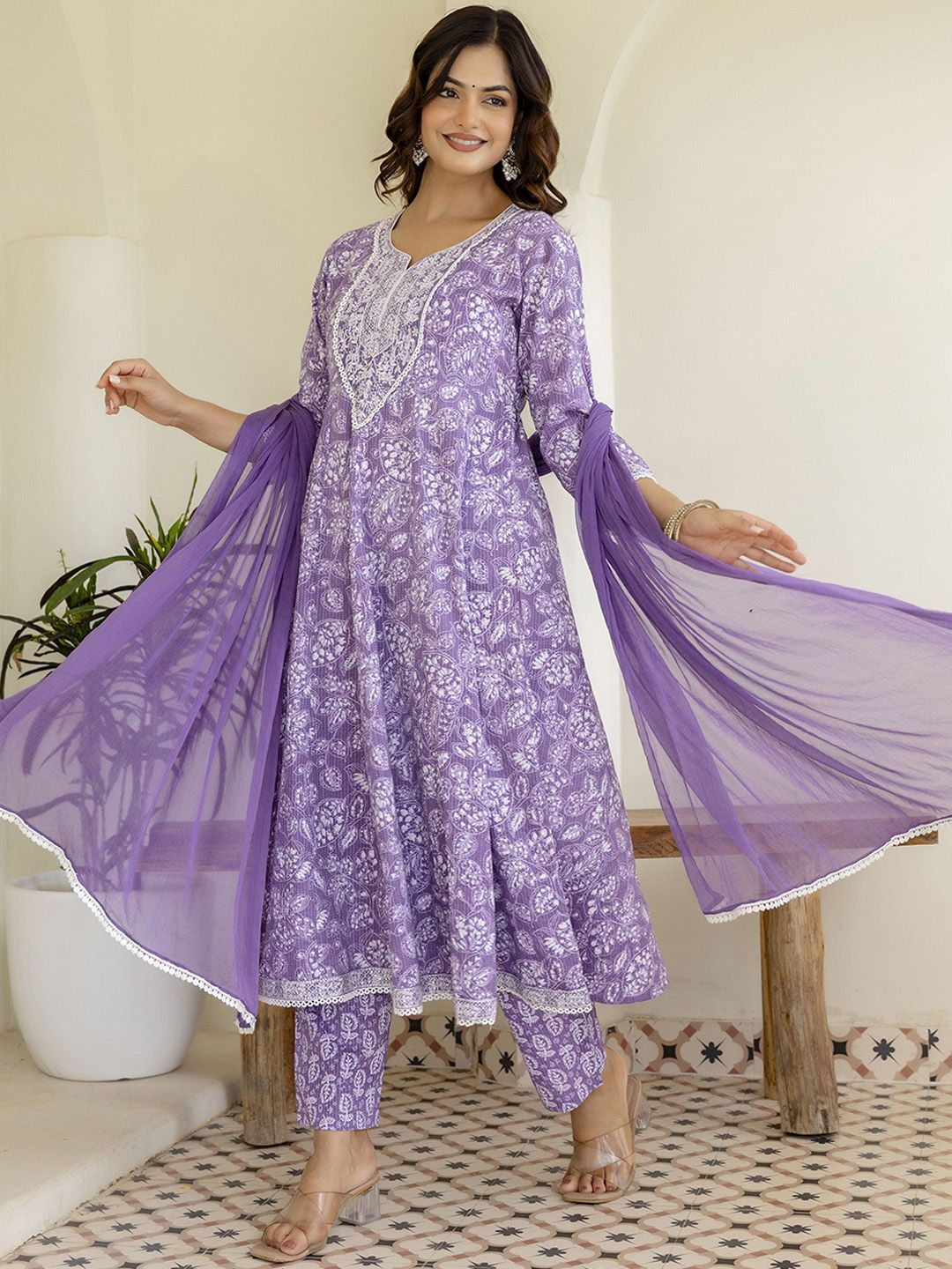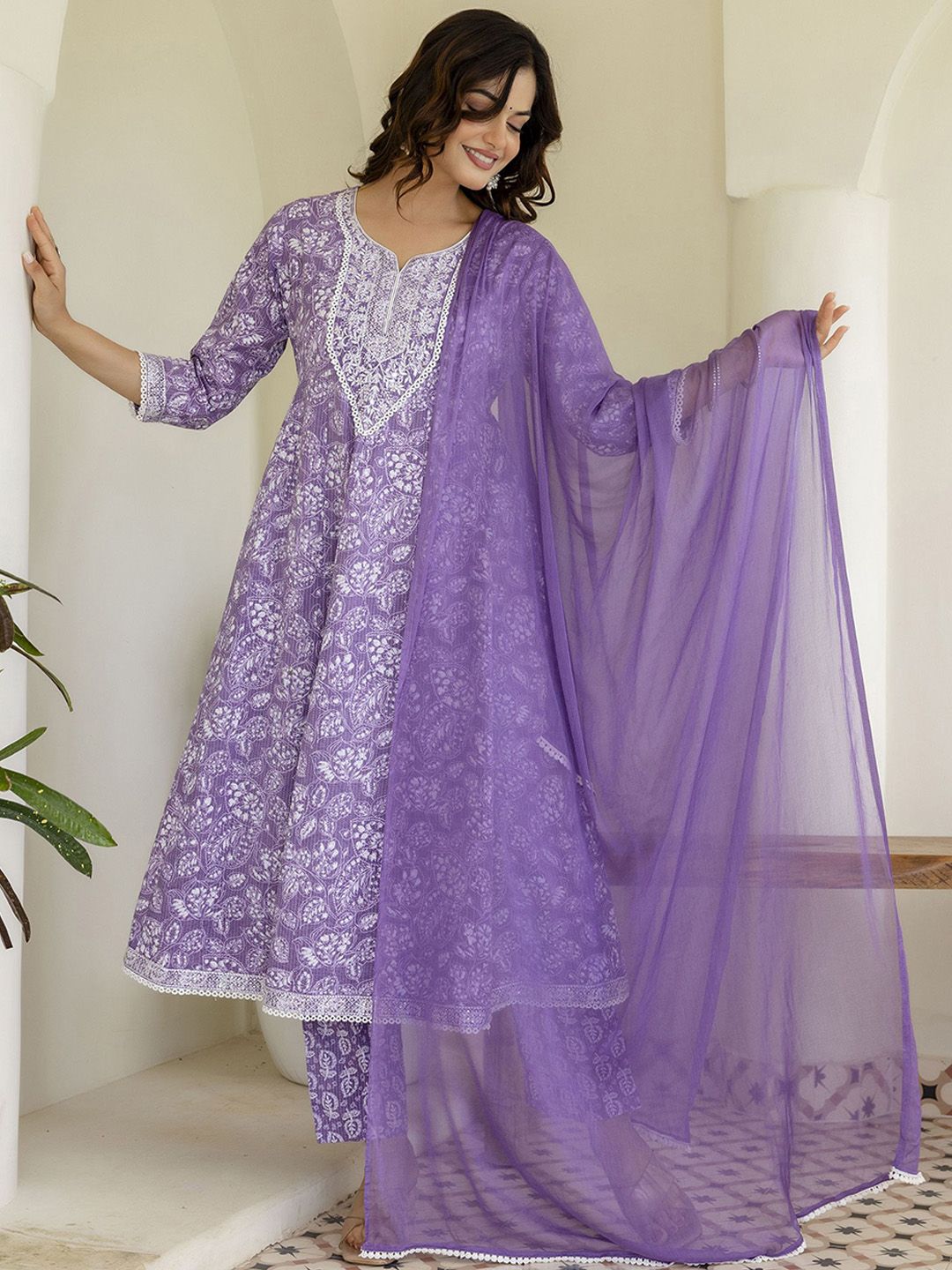 Anouk Women Floral Embroidered Regular Aari Work Pure Cotton Kurta with Pyjamas & Dupatta