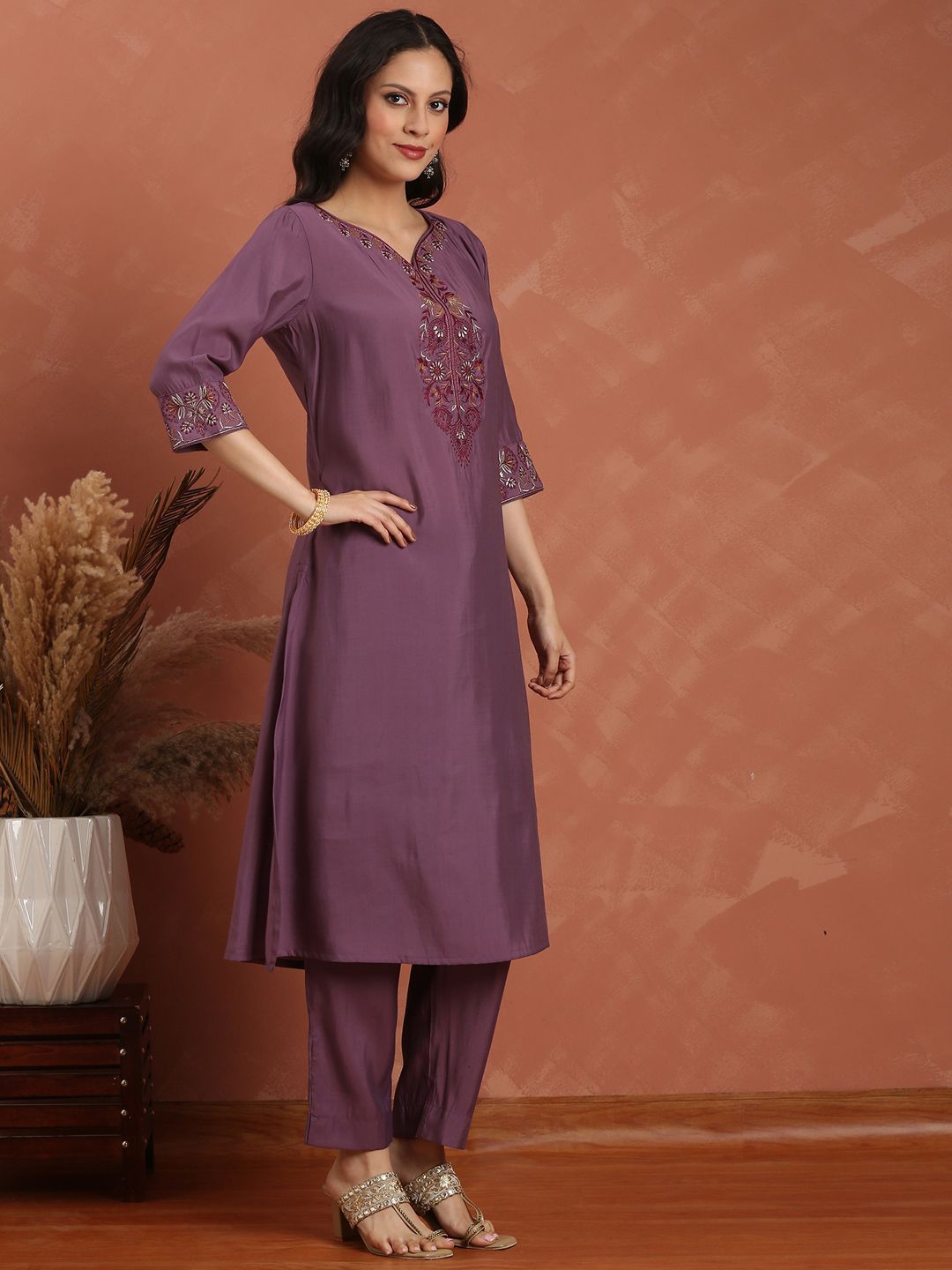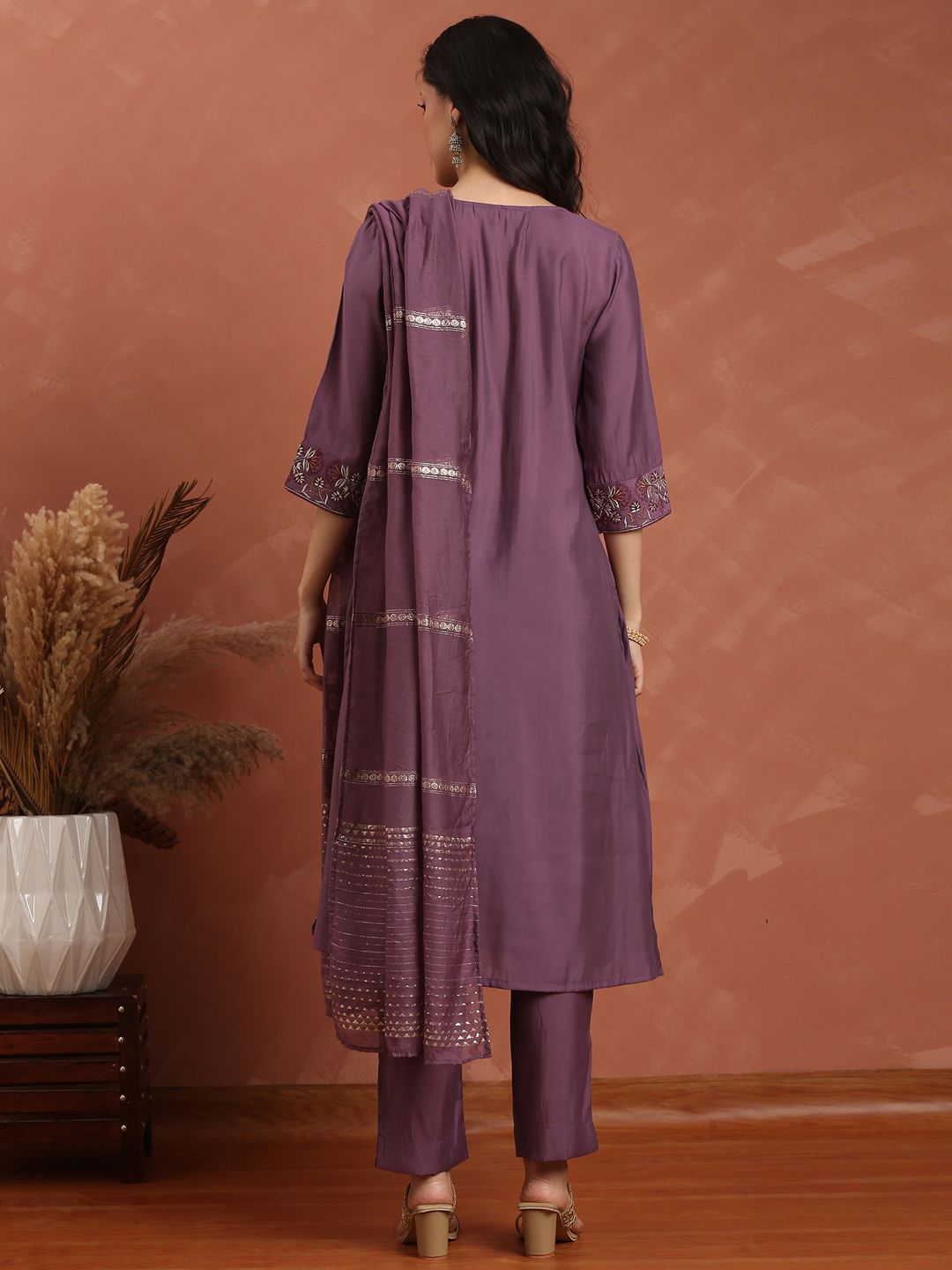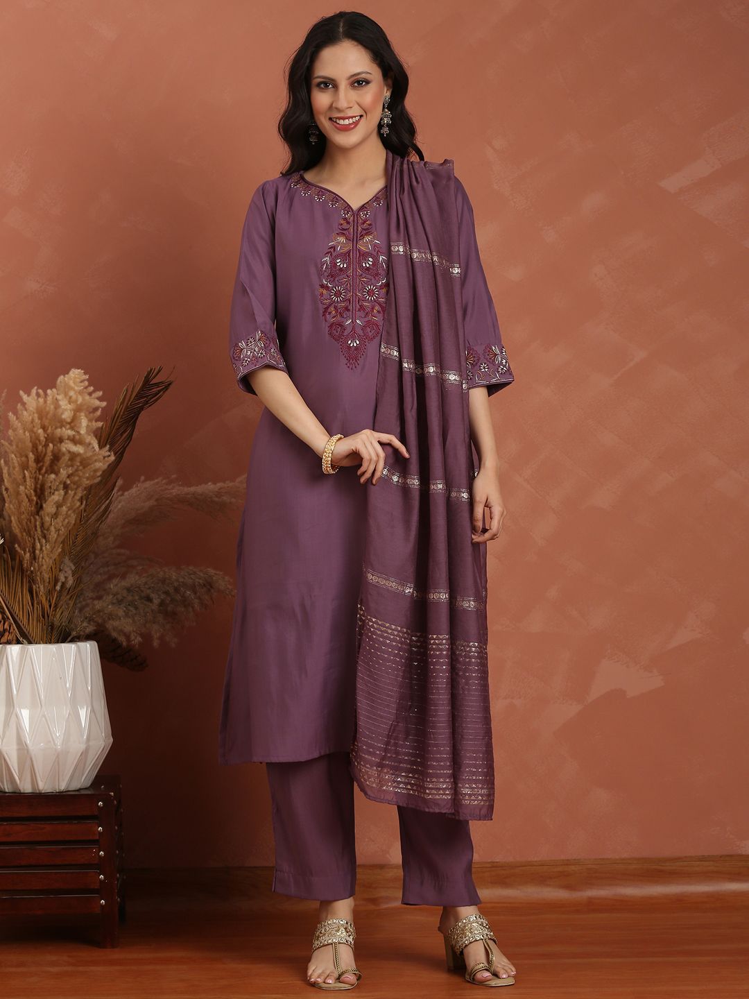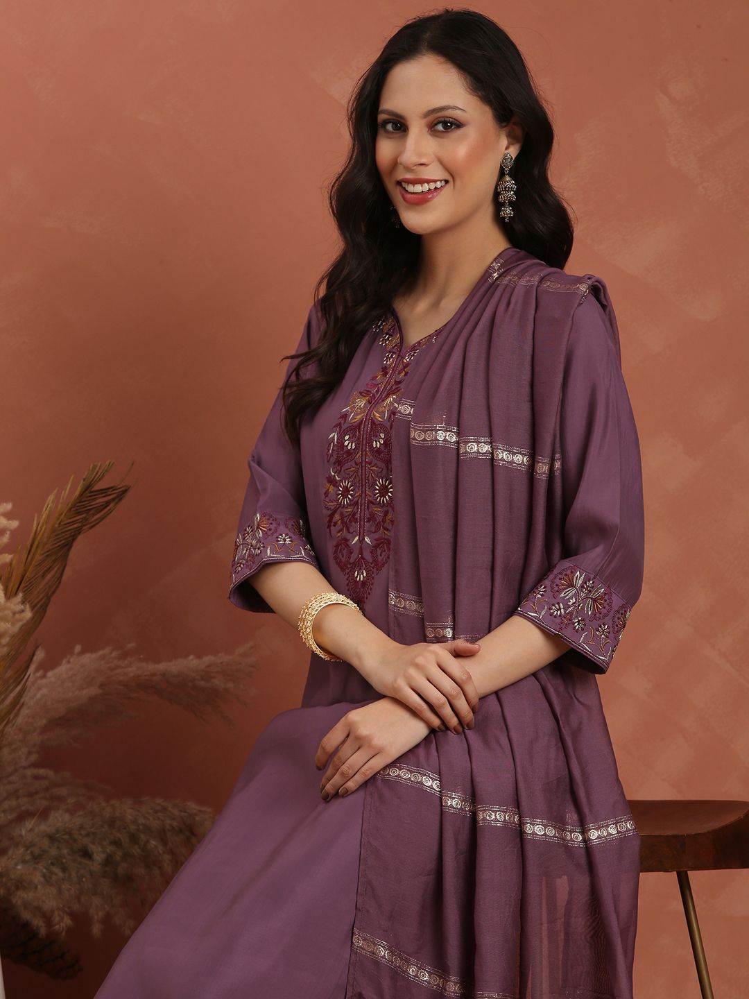 Anouk Women Floral Embroidered Regular Thread Work Kurta With Trousers & Dupatta
