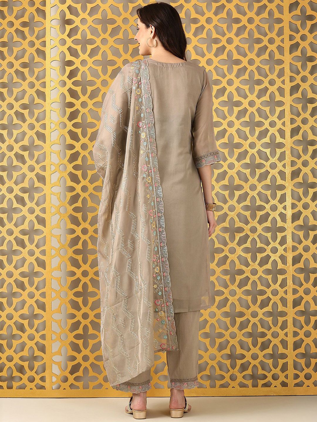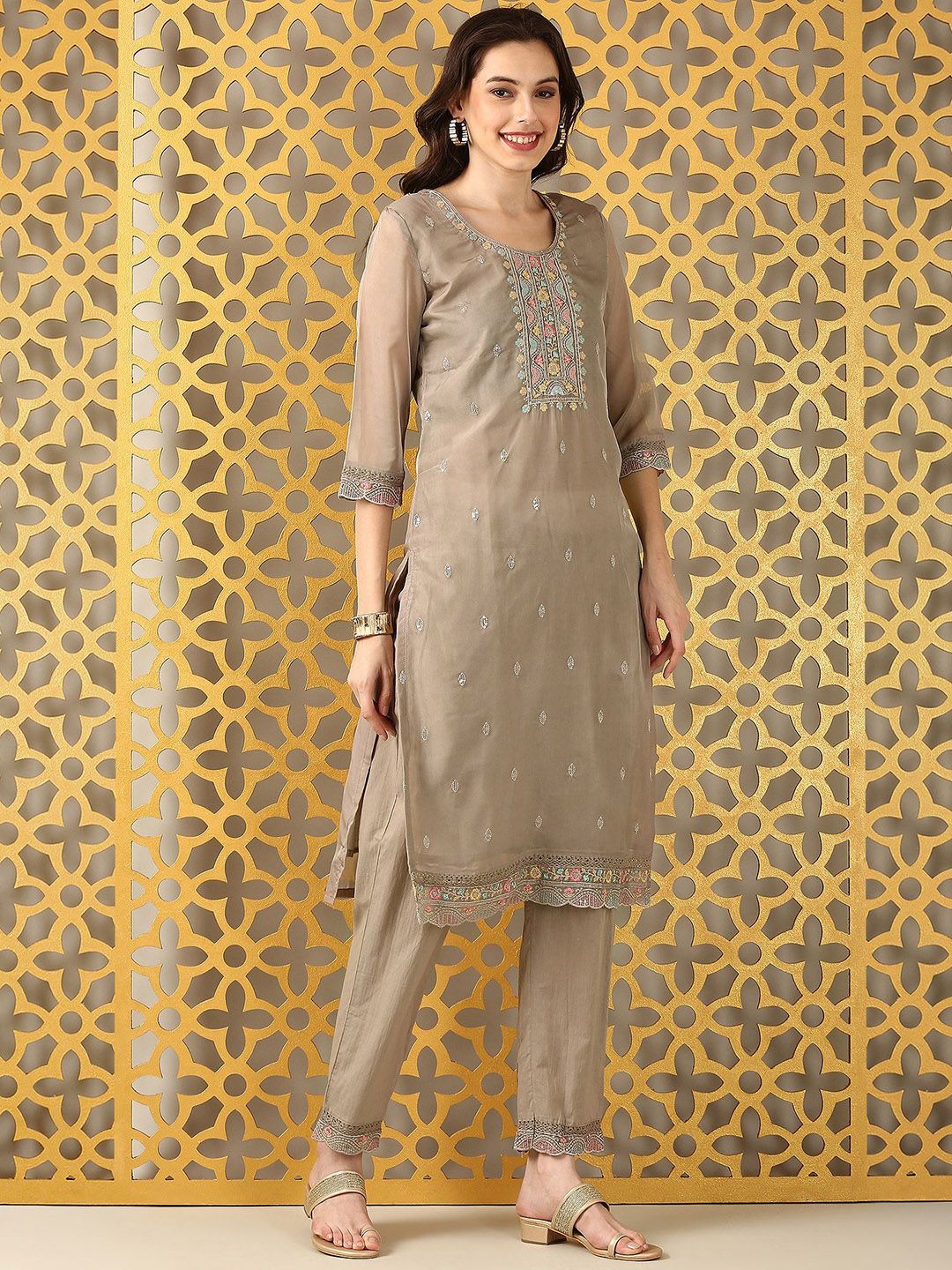 Anouk Women Floral Embroidered Regular Thread Work Kurta with Trousers & With Dupatta