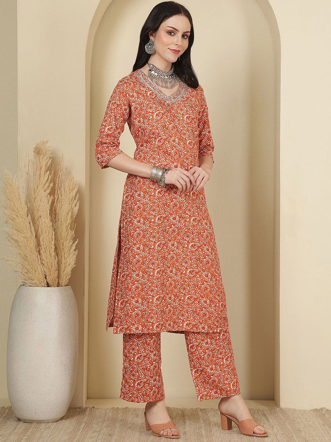 Anouk Women Floral Embroidered Regular Thread Work Kurta with Trousers