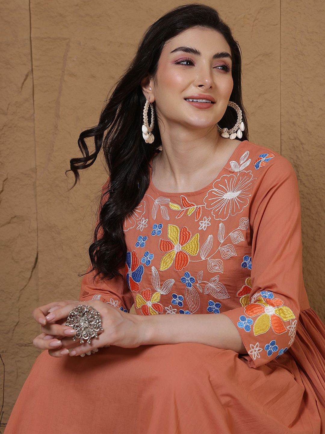 Anouk Women Floral Embroidered Regular Thread Work Pure Cotton Kurta with Trousers