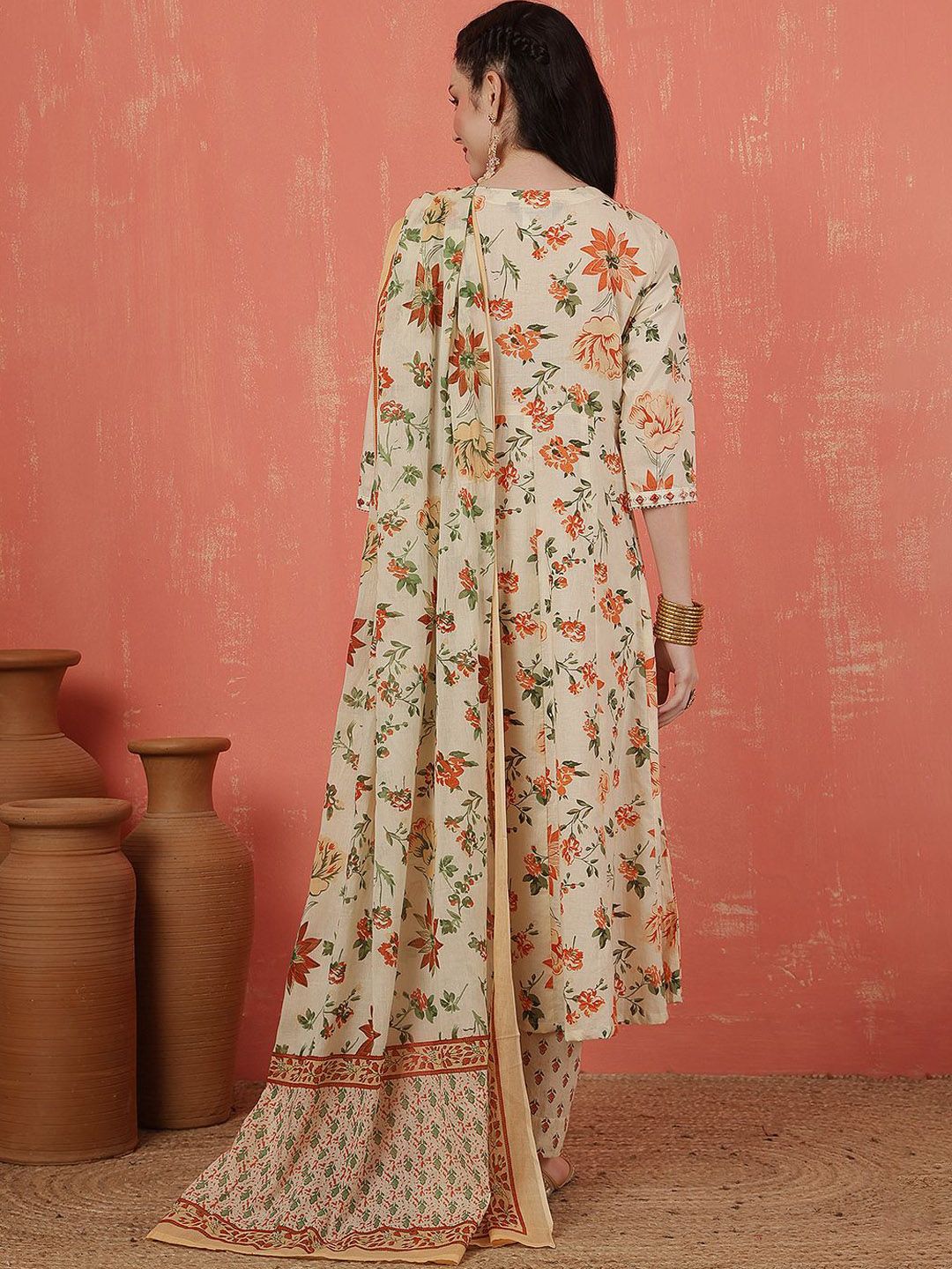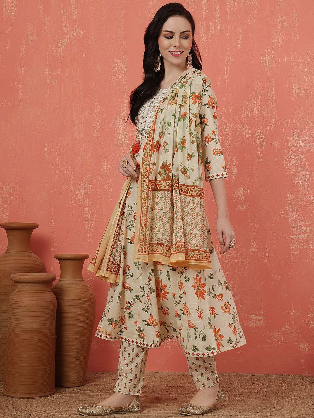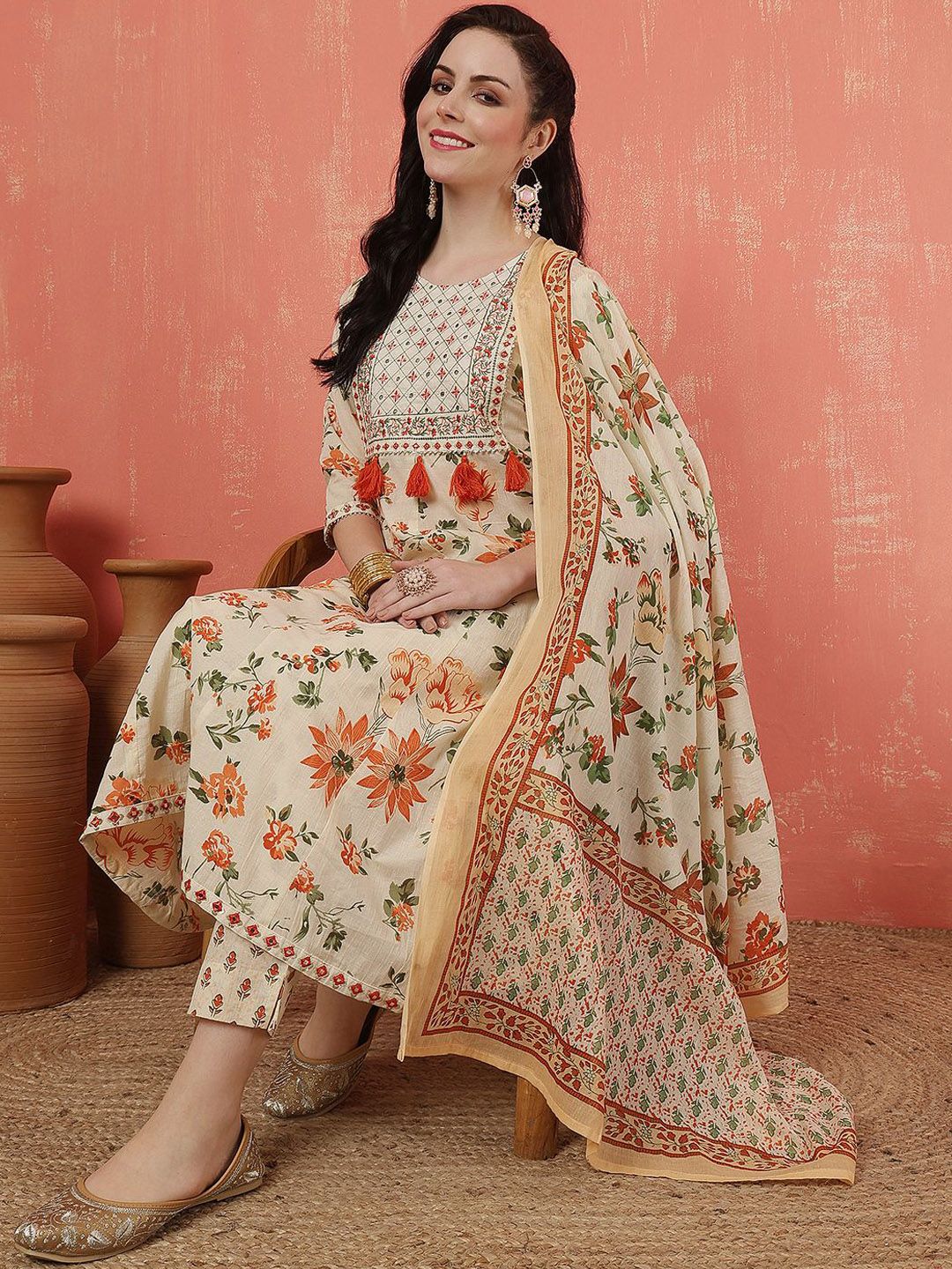 Anouk Women Floral Embroidered Thread Work Pure Cotton Kurta with Trousers & With Dupatta