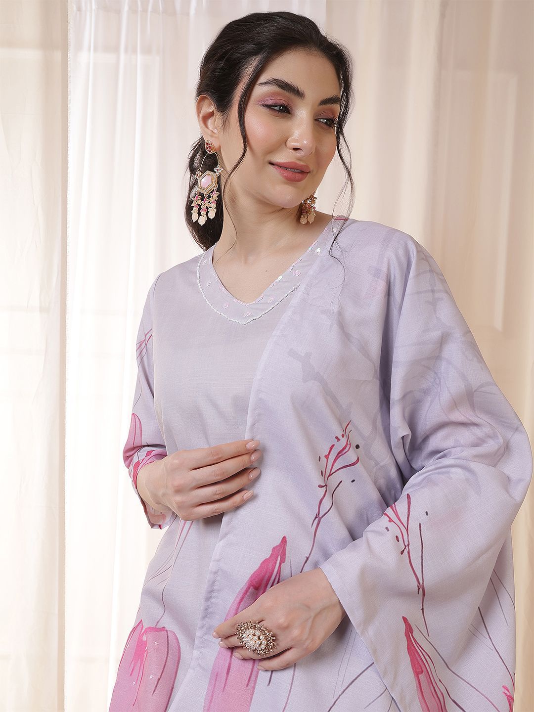 Anouk Women Floral Print Regular Pure Cotton Kurta with Trousers & Dupatta