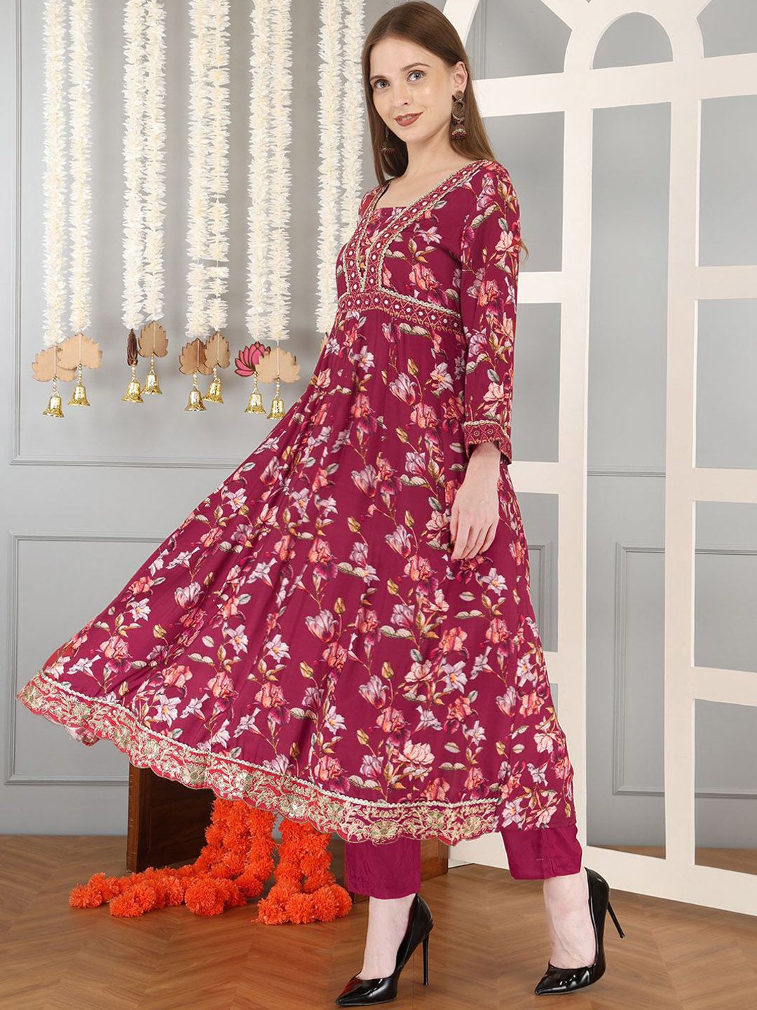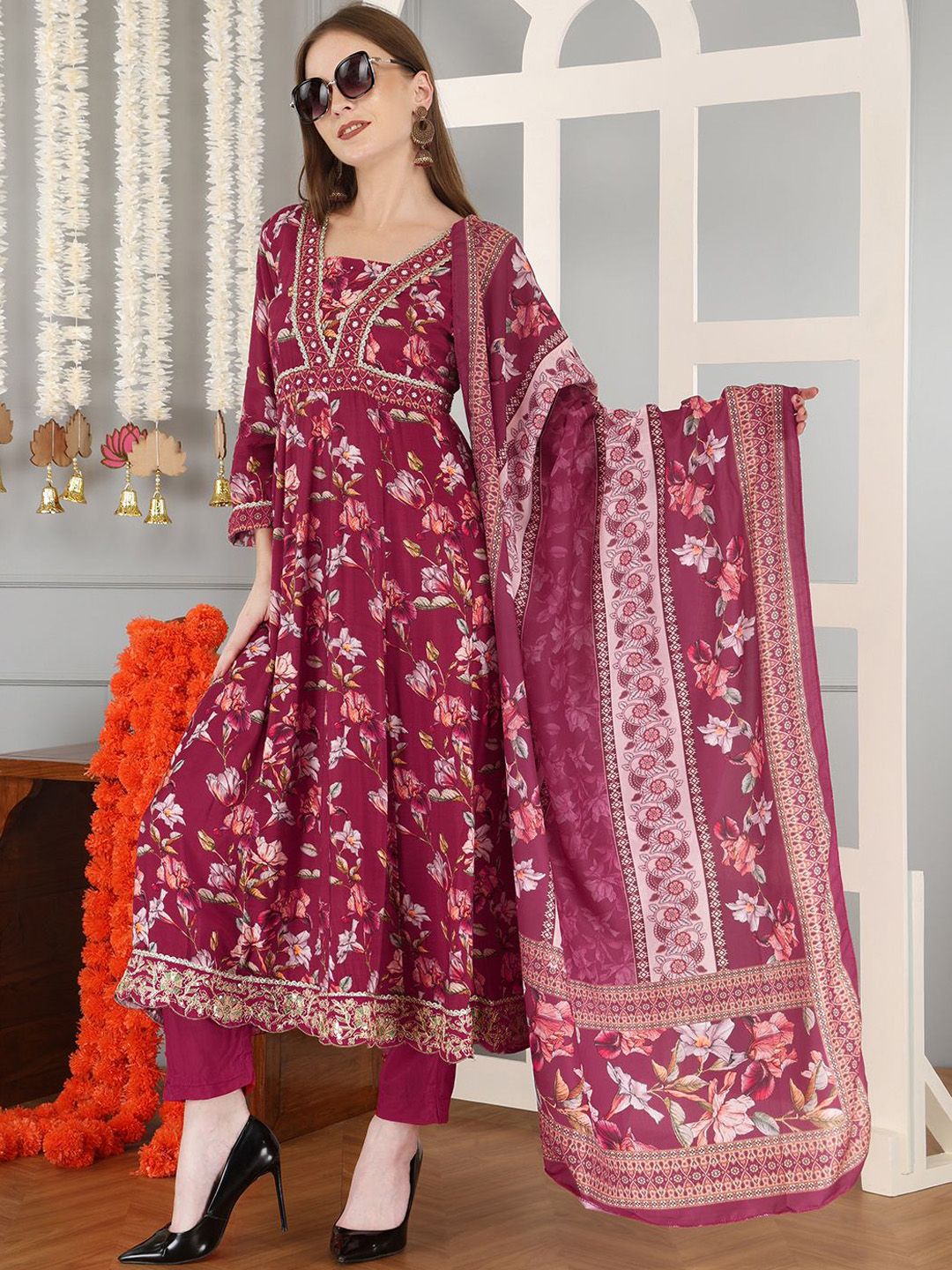 Anouk Women Floral Printed Anarkali Kurta with Churidar & Dupatta