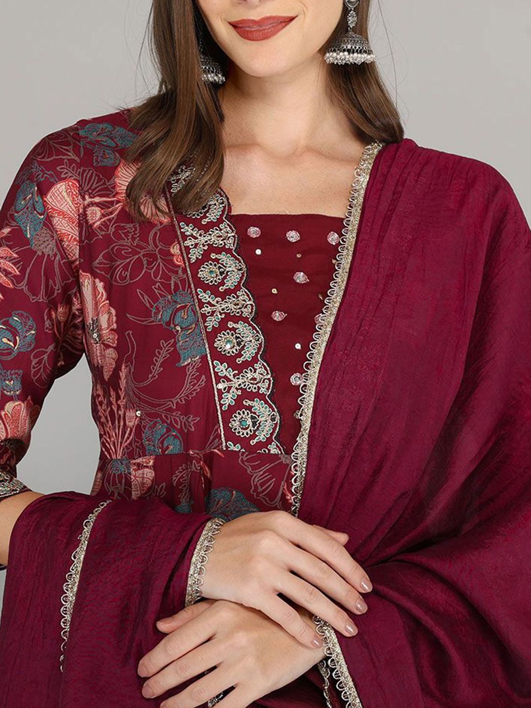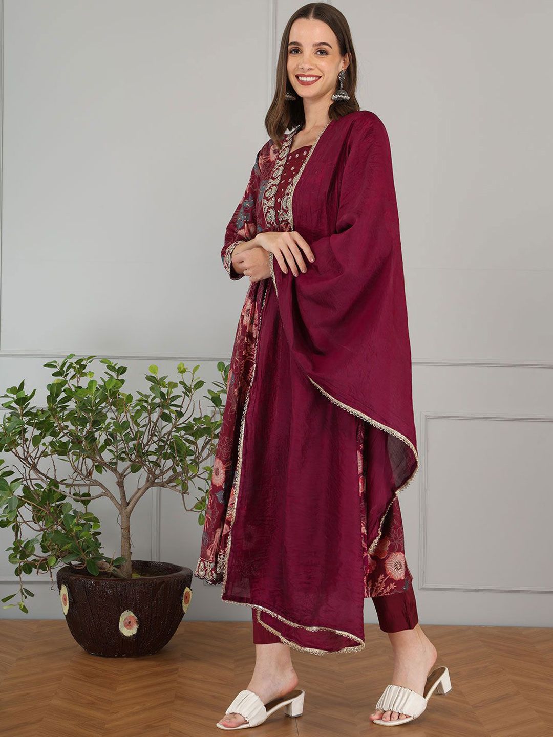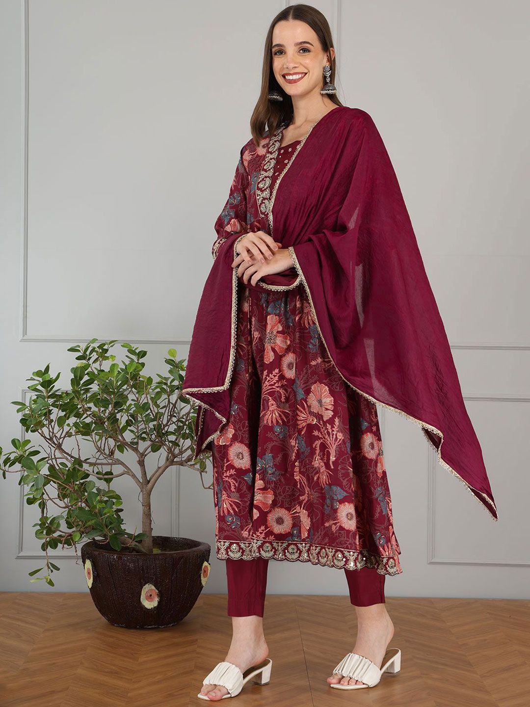 Anouk Women Floral Printed Anarkali Kurta with Trousers & Dupatta