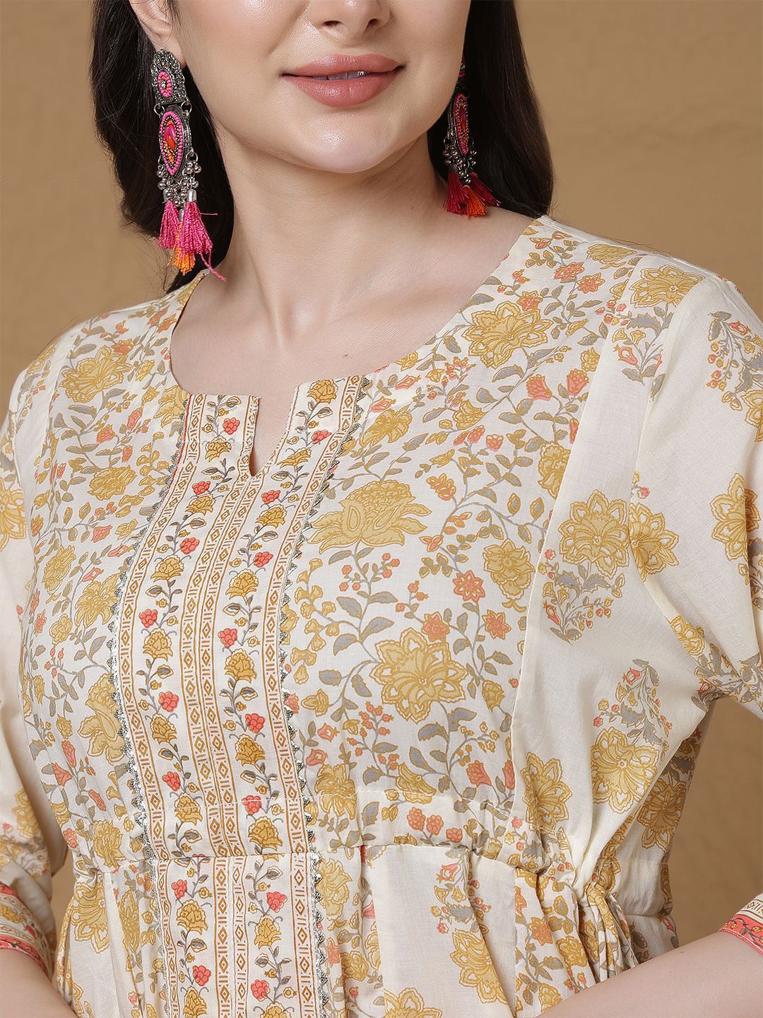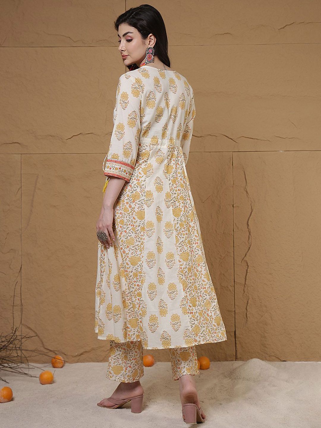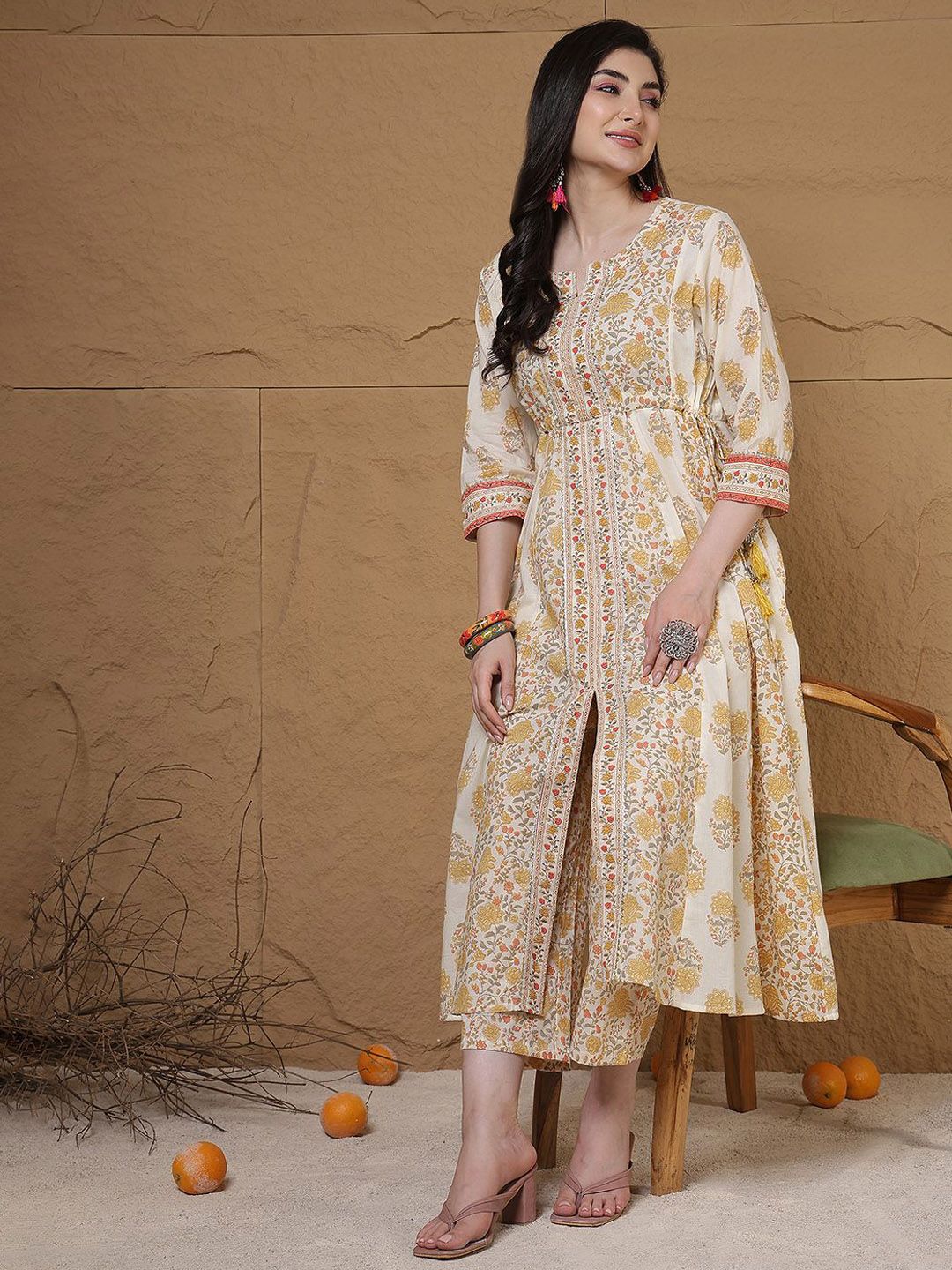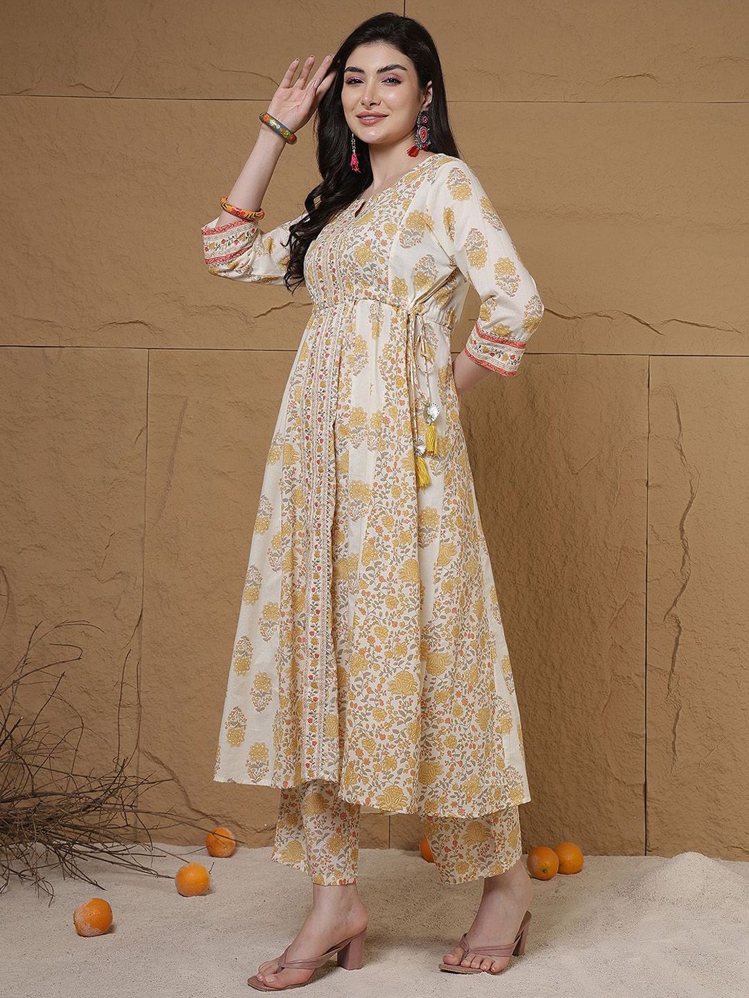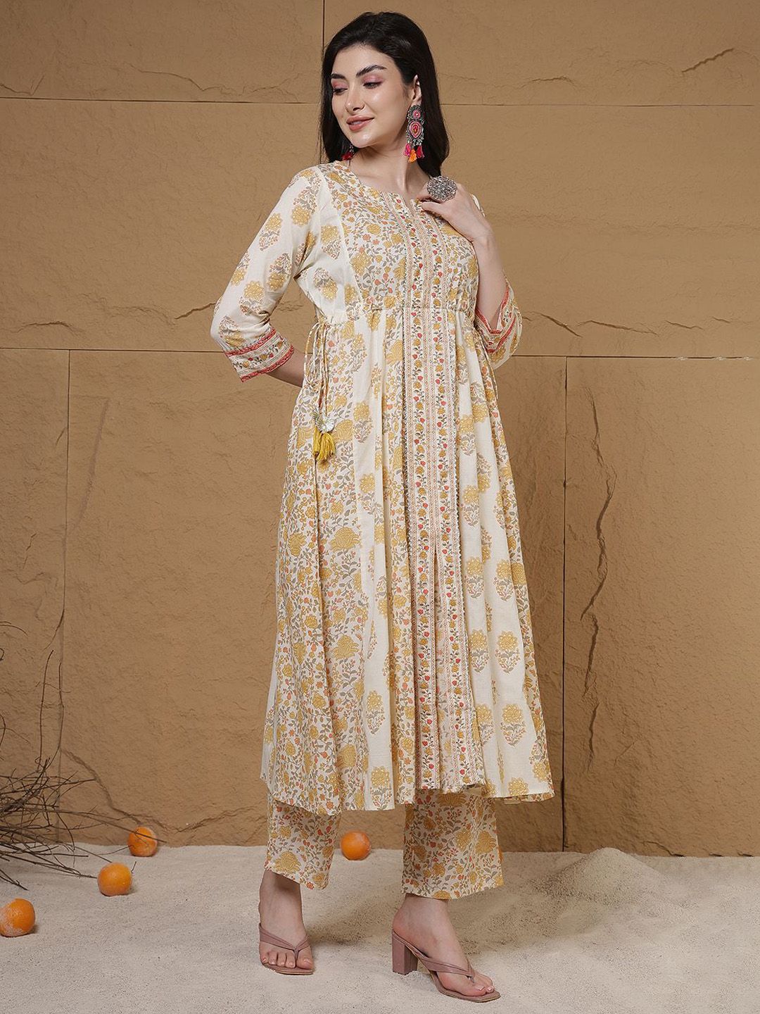 Anouk Women Floral Printed Anarkali Pure Cotton Kurta with Trousers