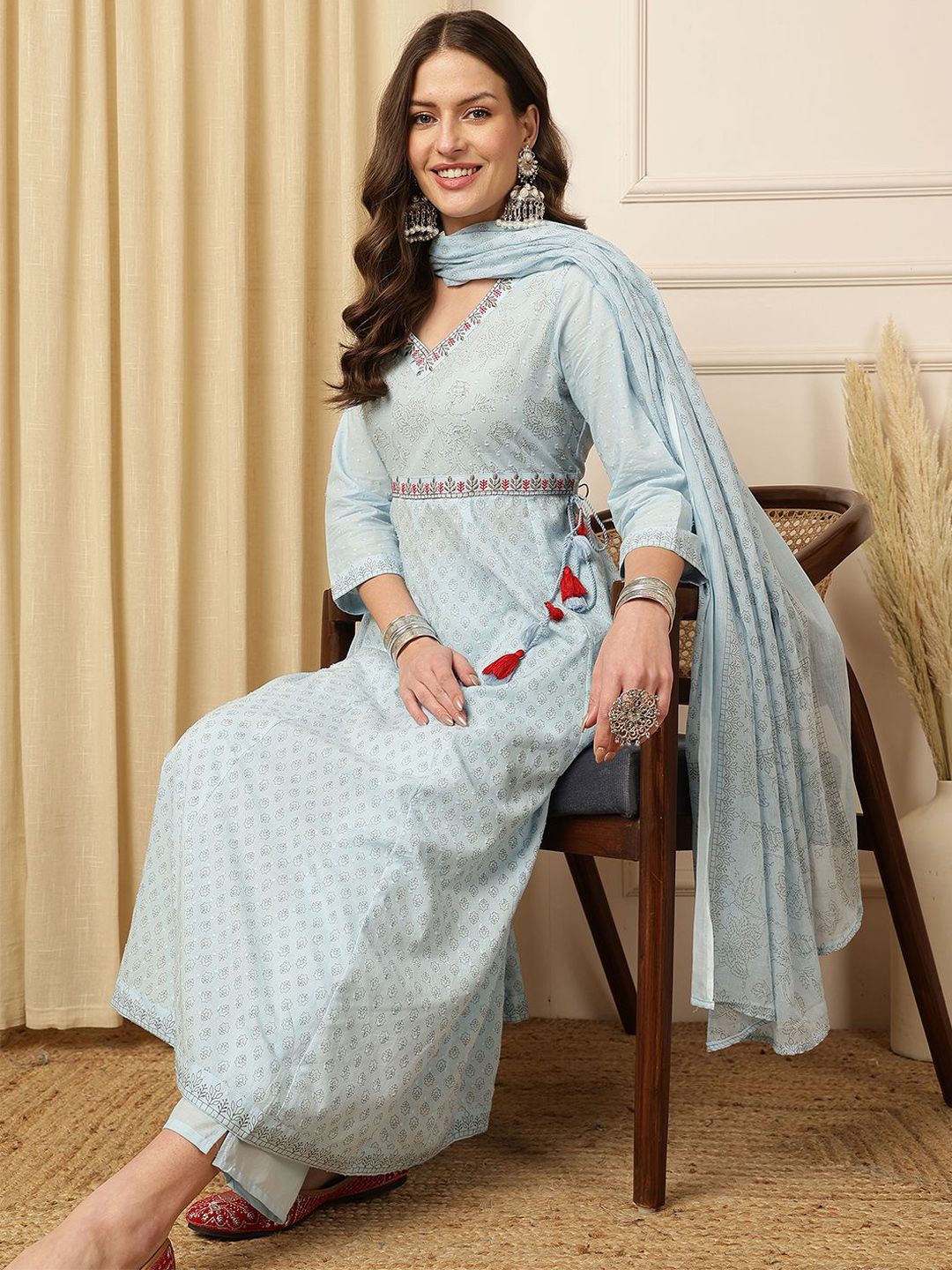 Anouk Women Floral Printed Cotton Kurta with Trousers & Dupatta