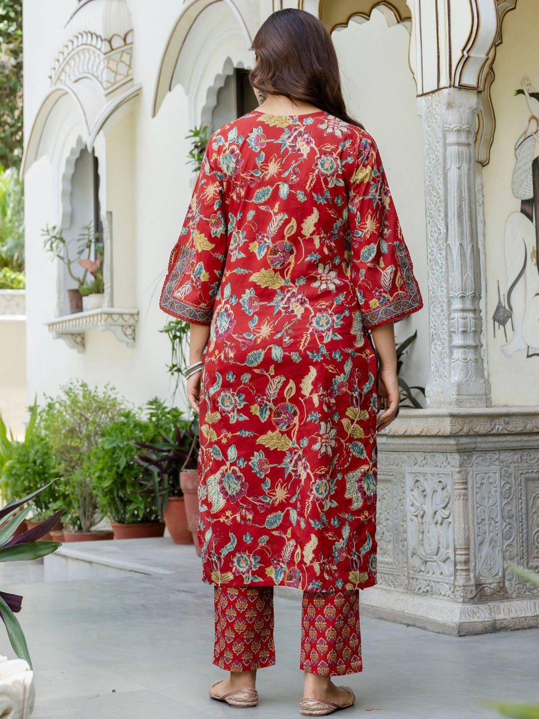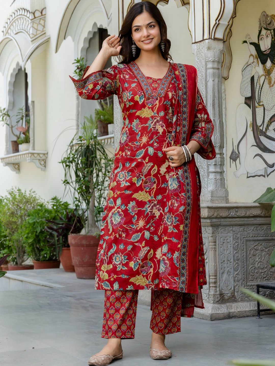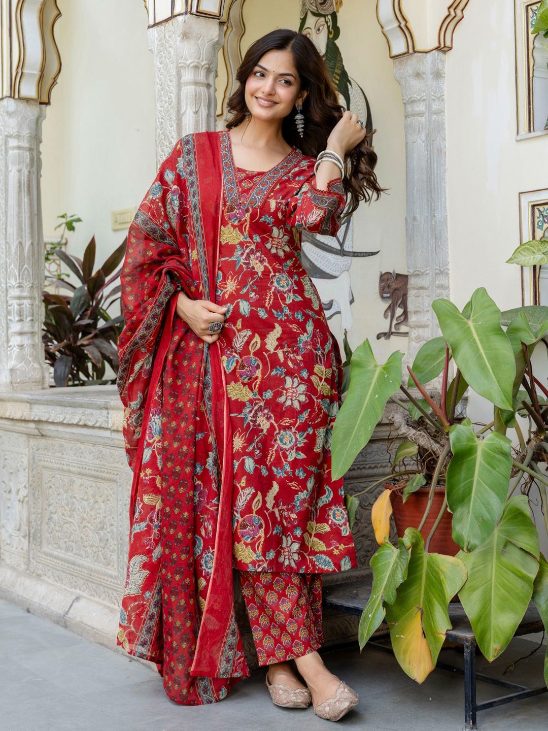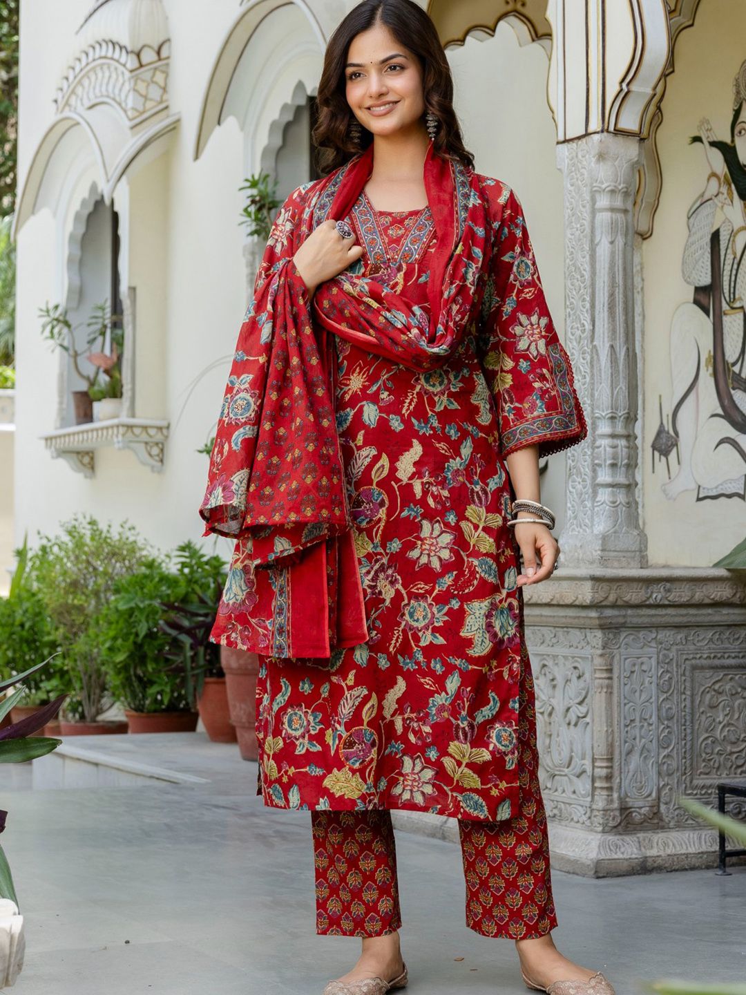 Anouk Women Floral Printed Cotton Kurta with Trousers & Dupatta