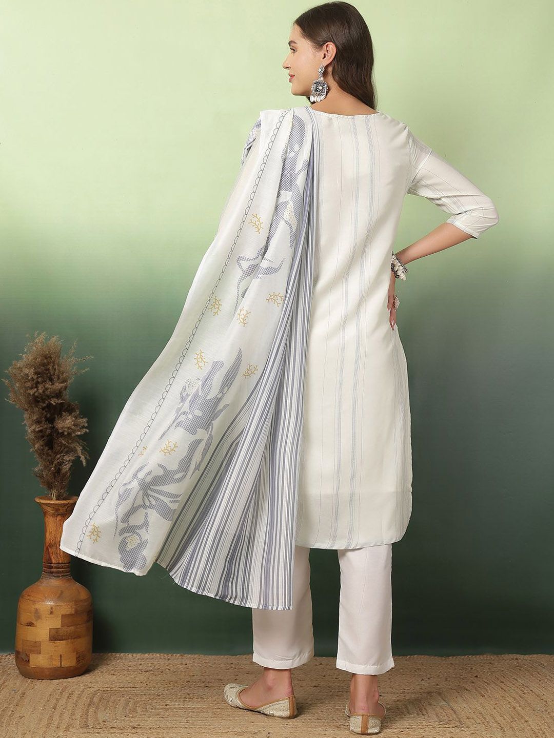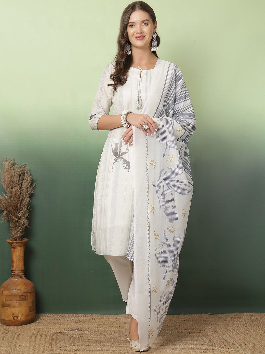 Anouk Women Floral Printed Keyhole Neck Kurta with Trousers & With Dupatta