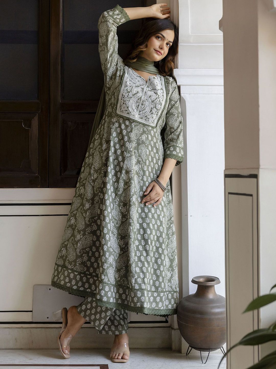Anouk Women Floral Printed Kurta with Trousers & Dupatta