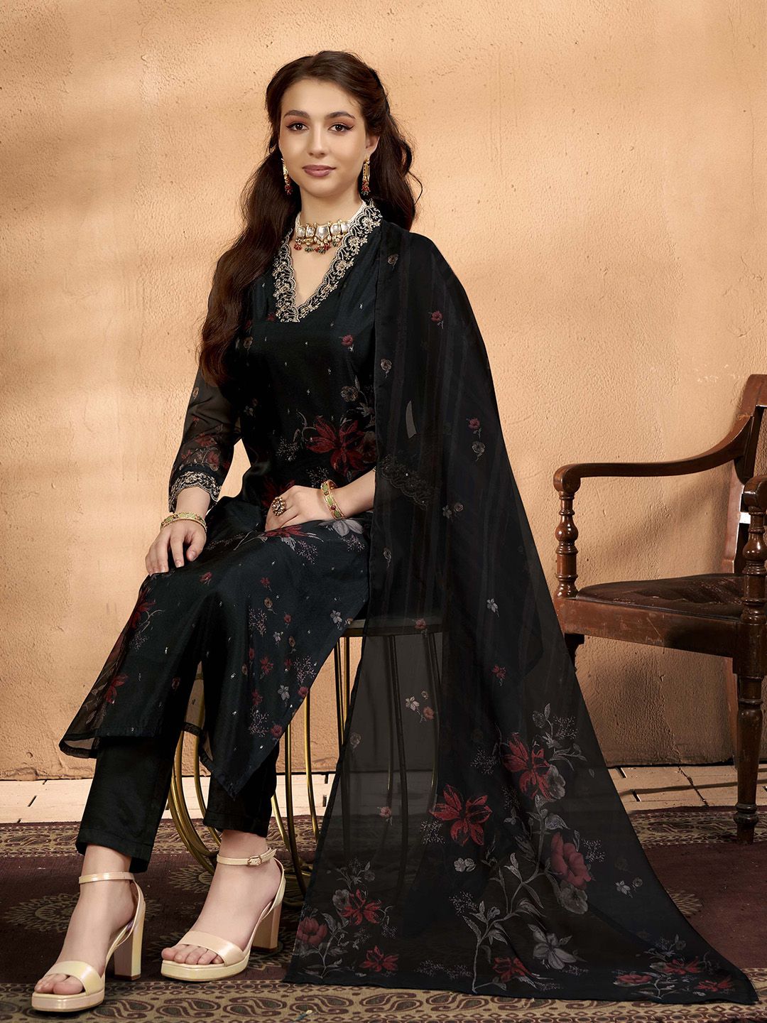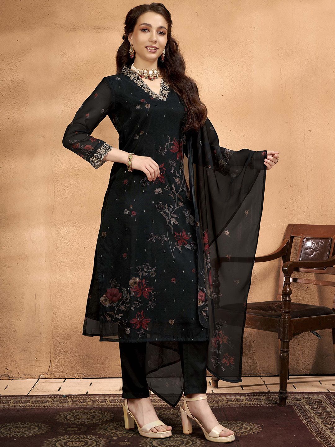 Anouk Women Floral Printed Kurta with Trousers & Dupatta