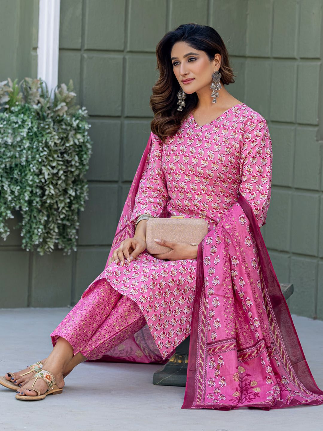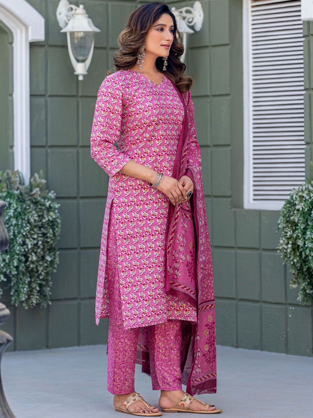Anouk Women Floral Printed Kurti with Trousers & Dupatta