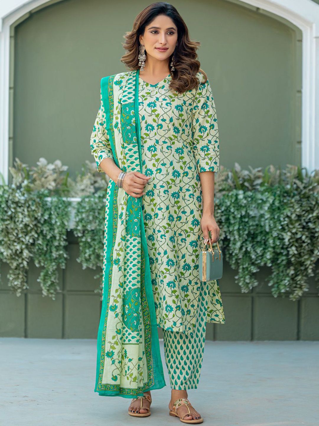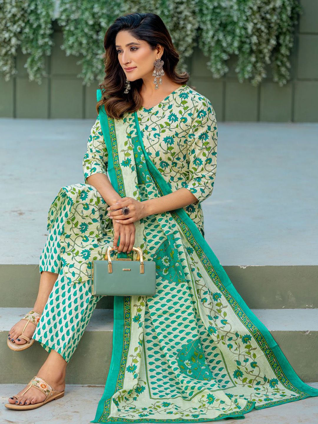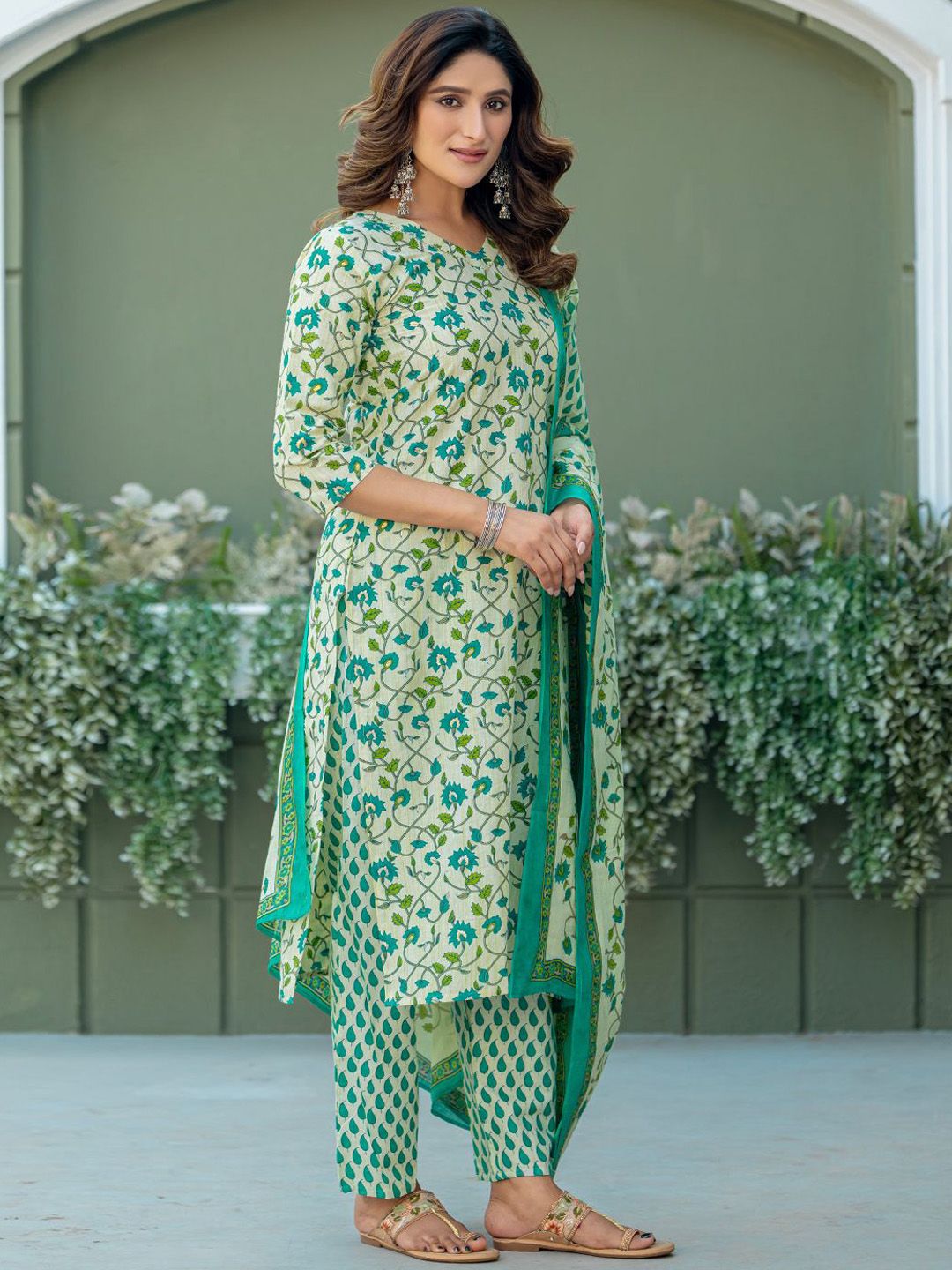 Anouk Women Floral Printed Regular Kurta with Trousers & Dupatta