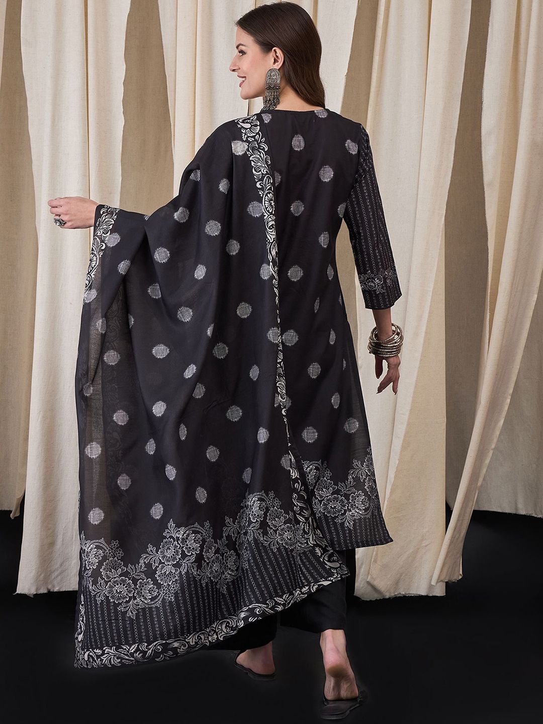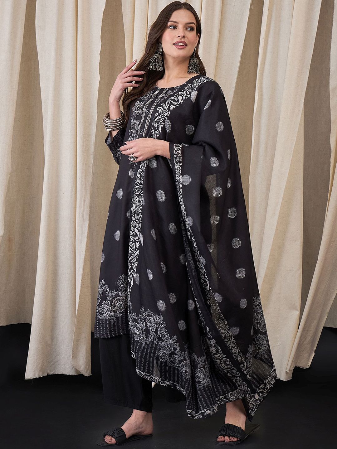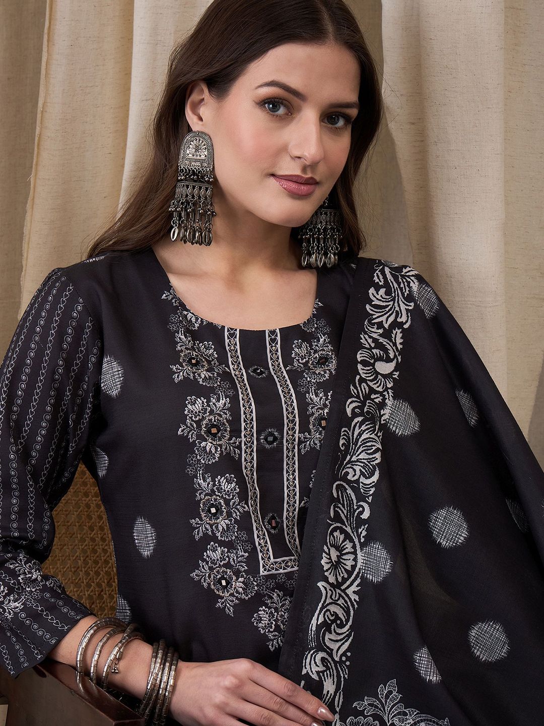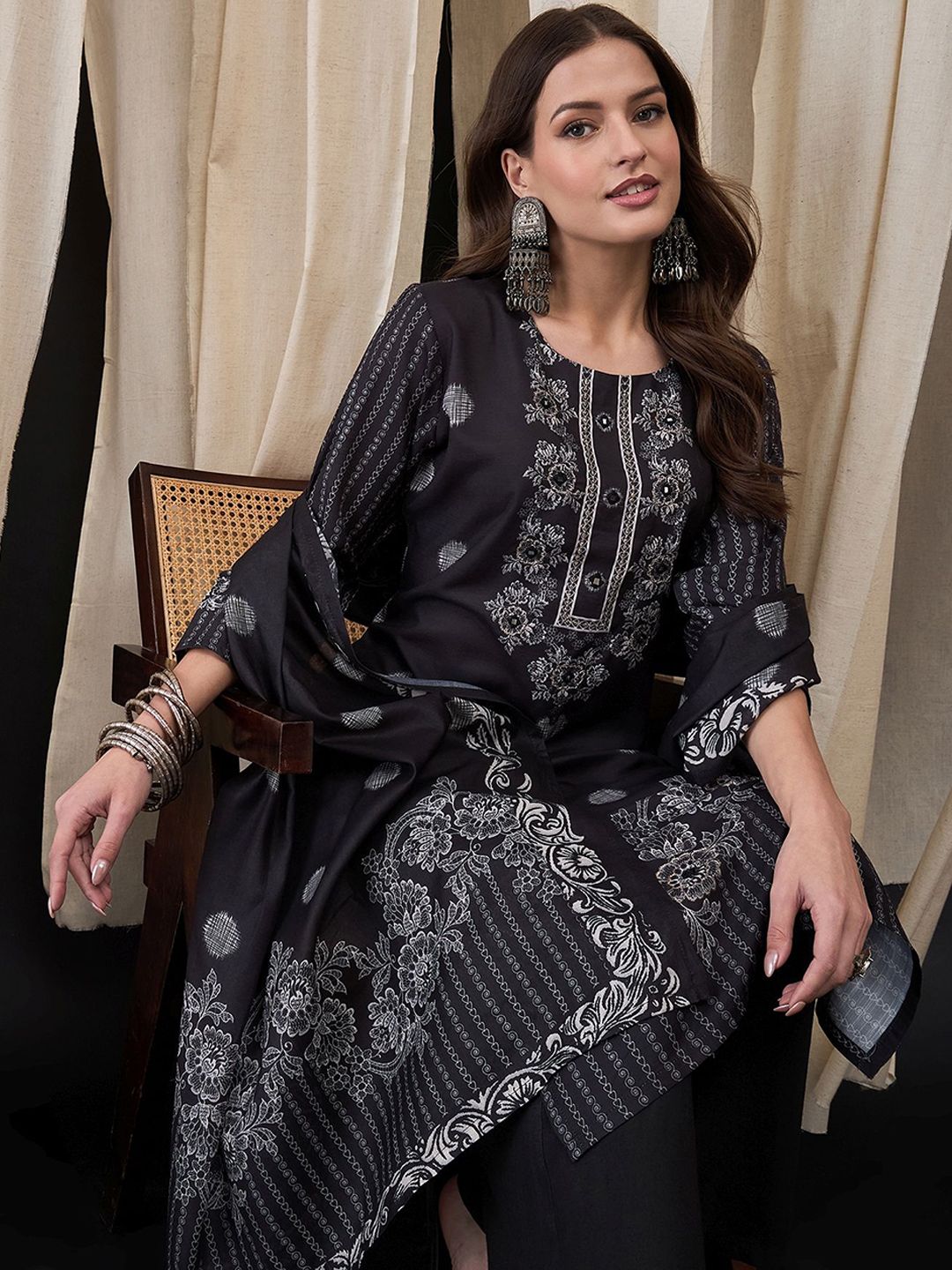 Anouk Women Floral Printed Regular Mirror Work Straight Kurta with Trousers & With Dupatta