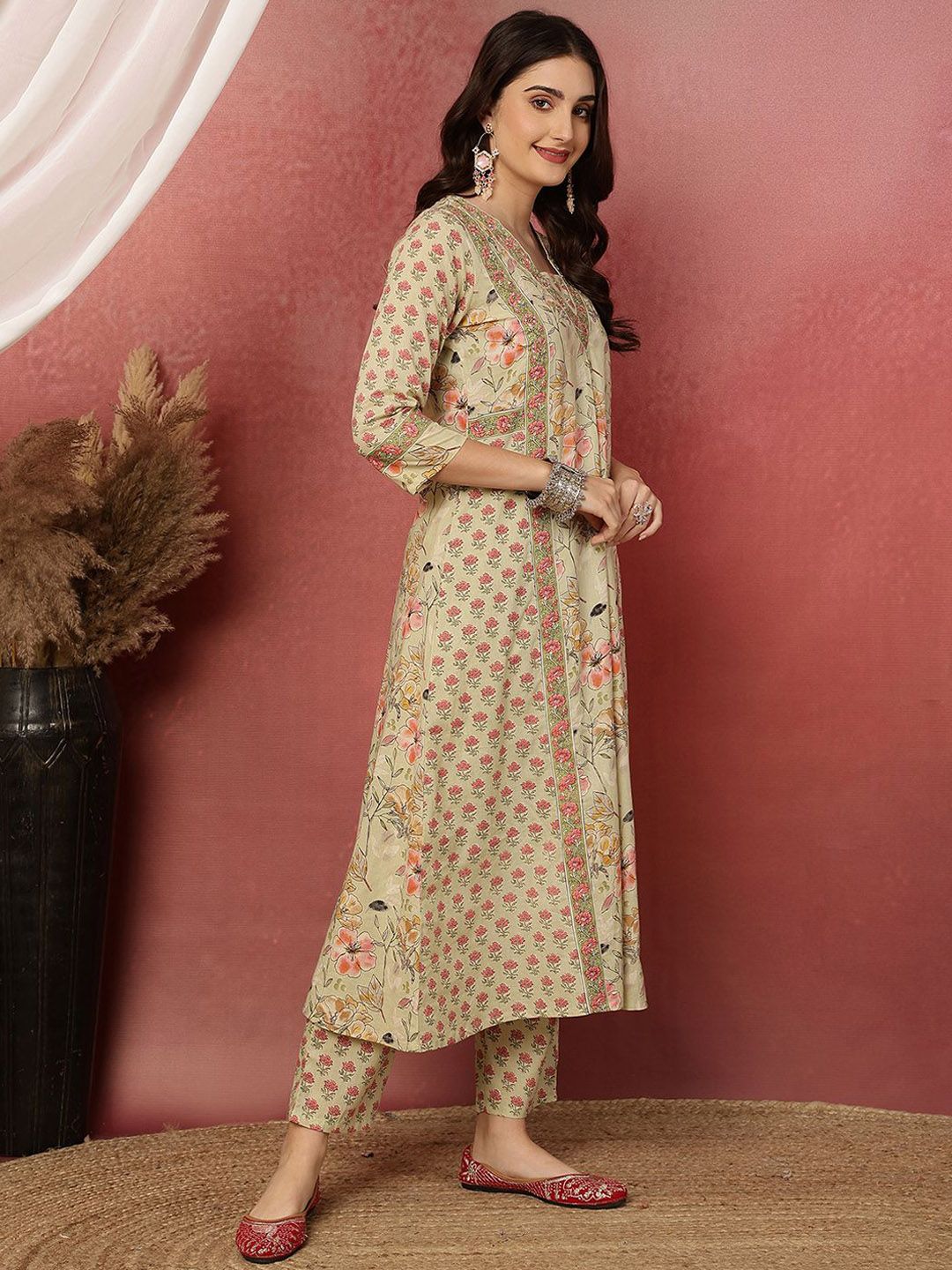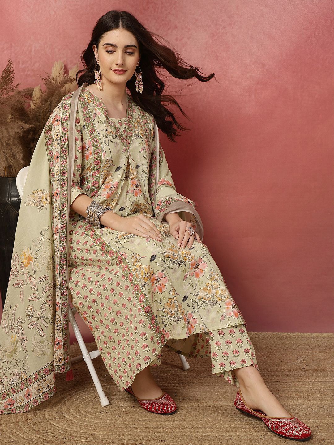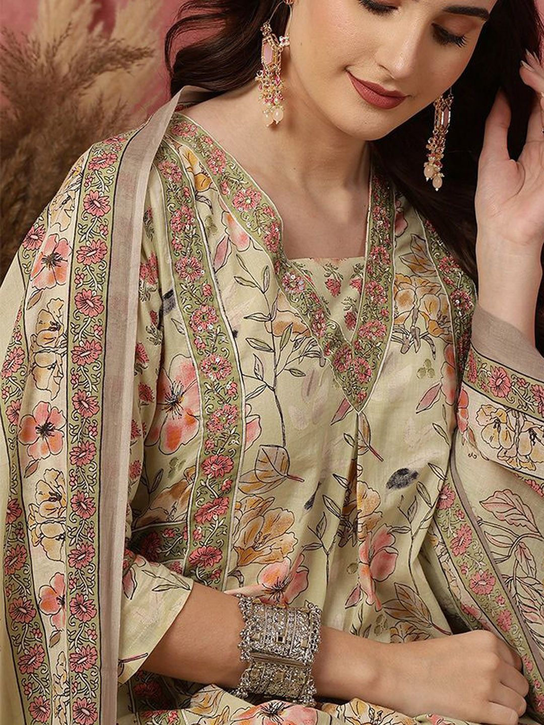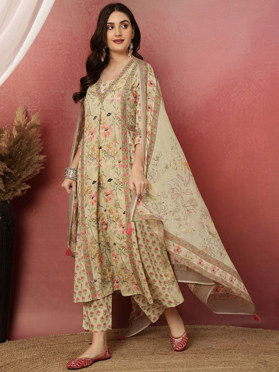 Anouk Women Floral Printed Regular Pure Cotton Kurta with Trousers & Dupatta