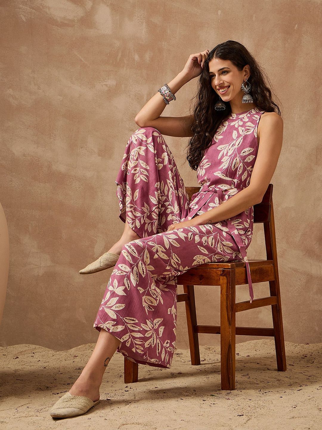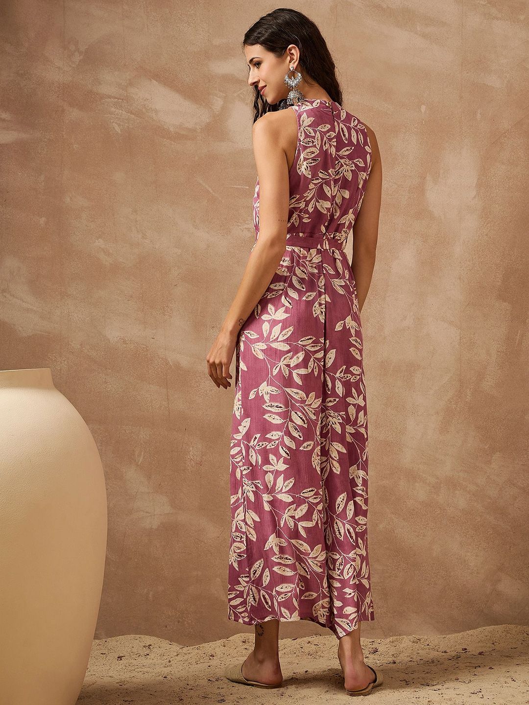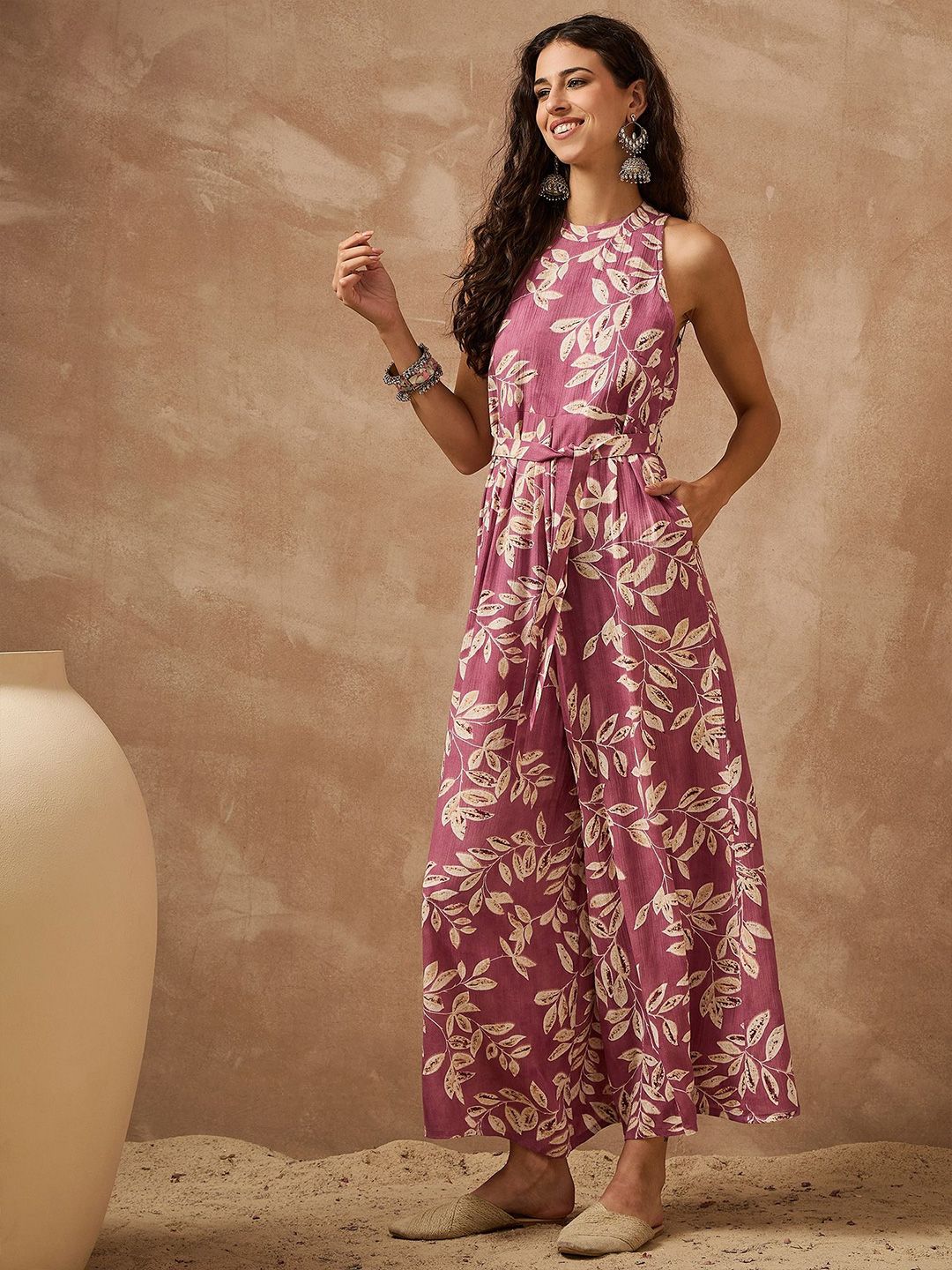 Anouk Women Floral Printed Sleeveless Basic Jumpsuit With Belt