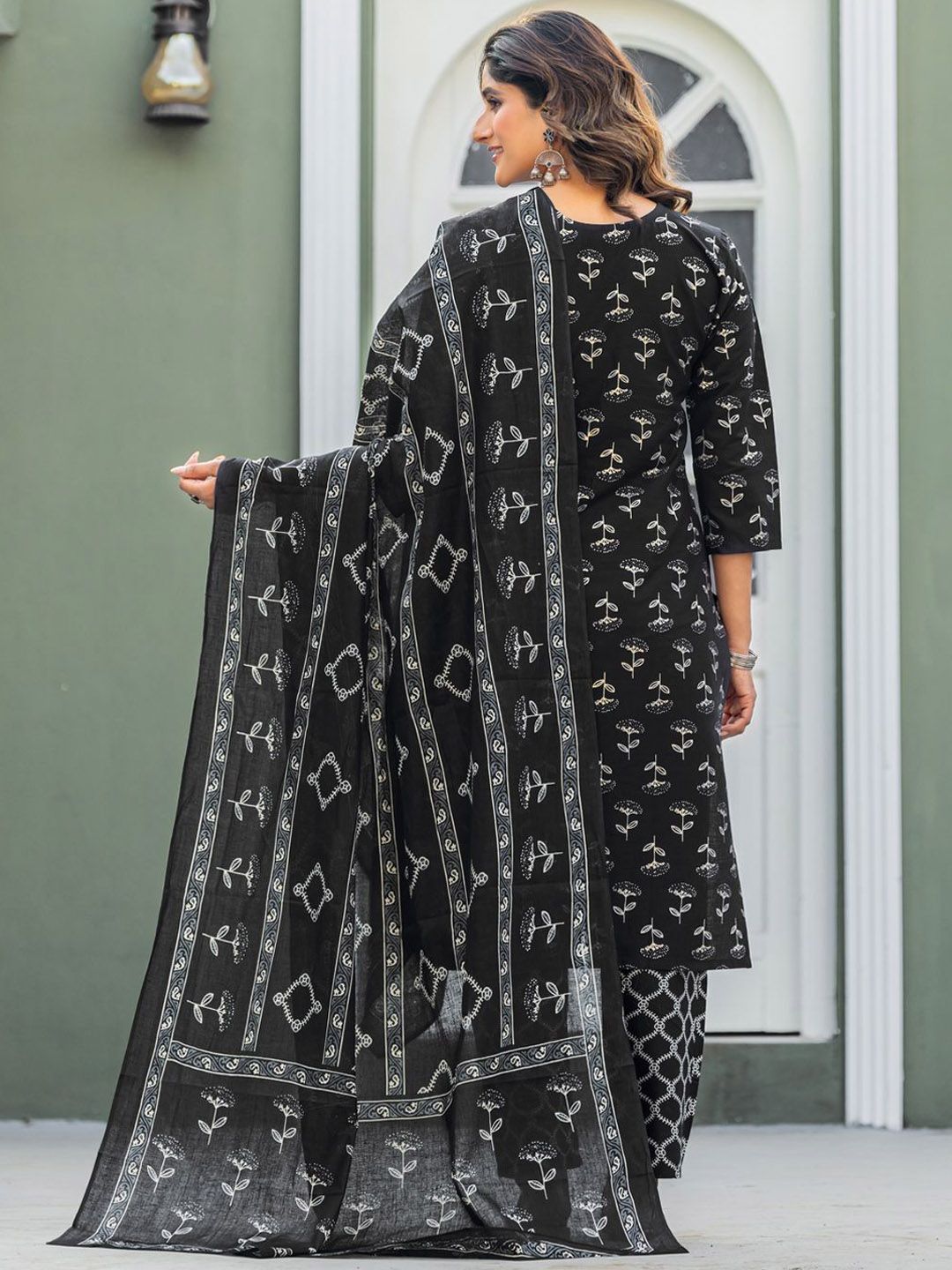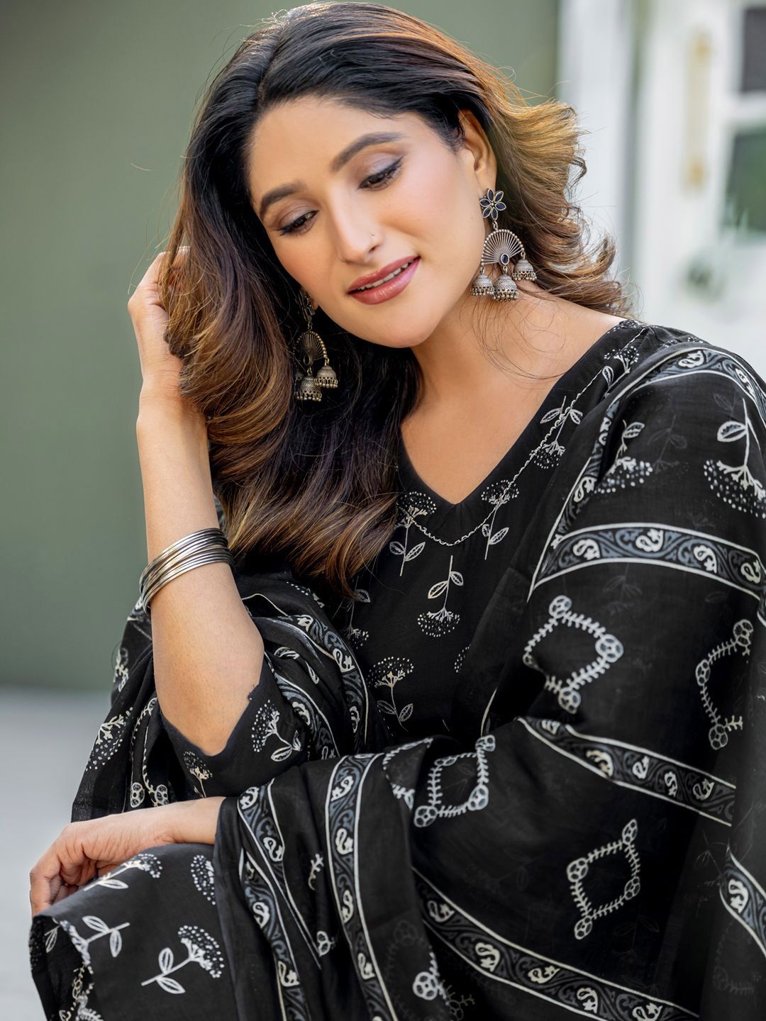 Anouk Women Floral Printed V-Neck Kurta with Trousers & Dupatta