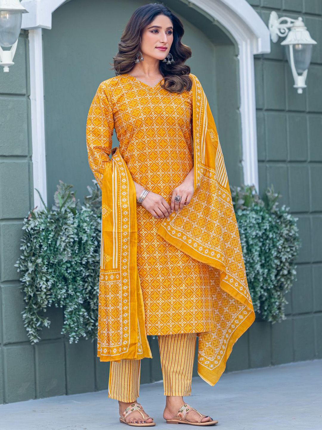 Anouk Women Geometric Printed Kurta with Trousers & Dupatta