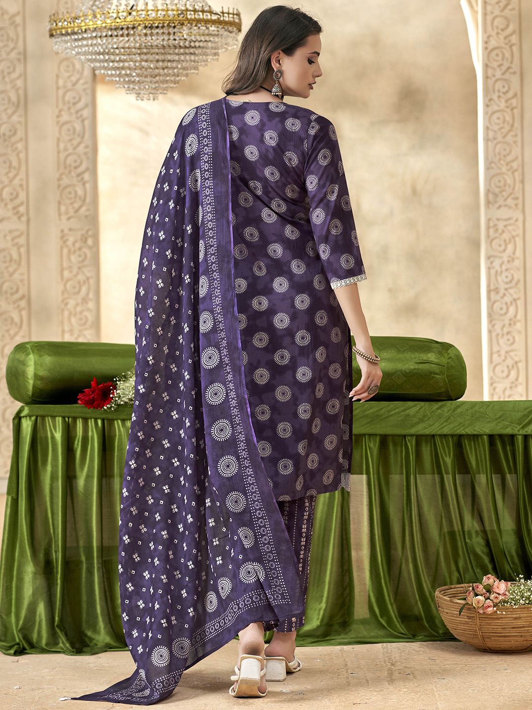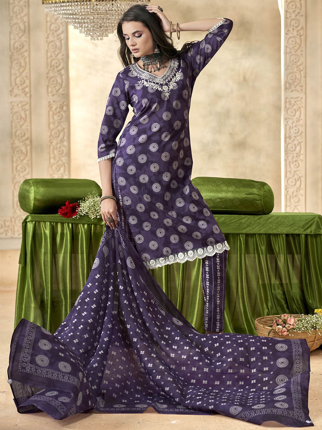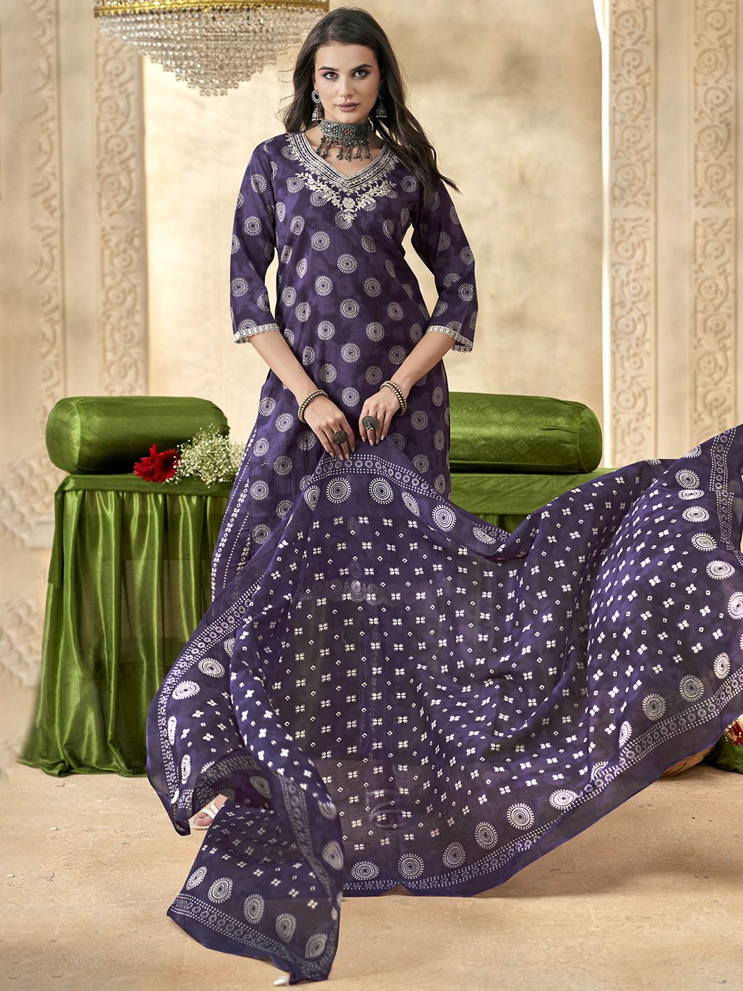 Anouk Women Geometric Yoke Design Pure Cotton Kurta with Trousers & With Dupatta