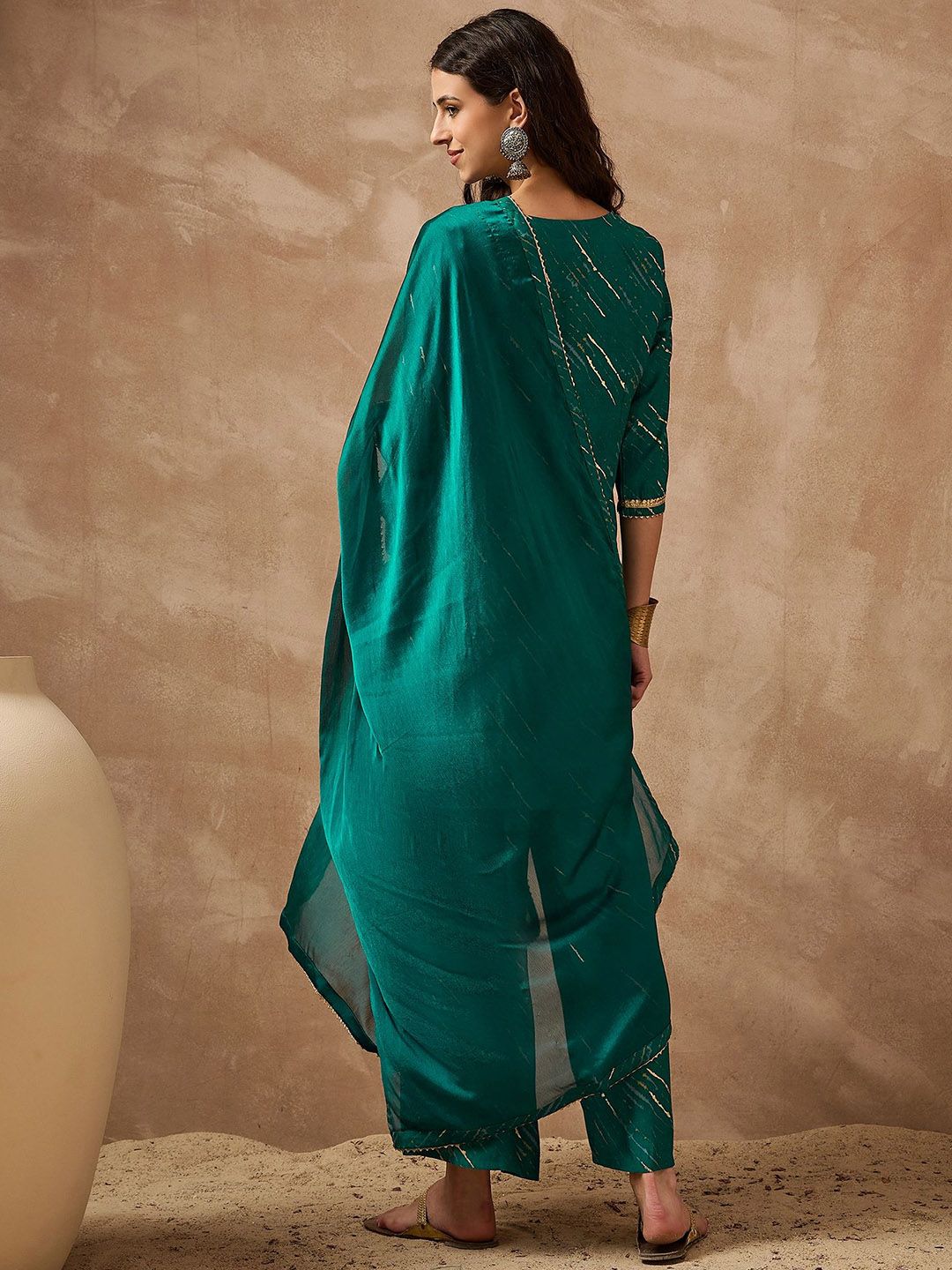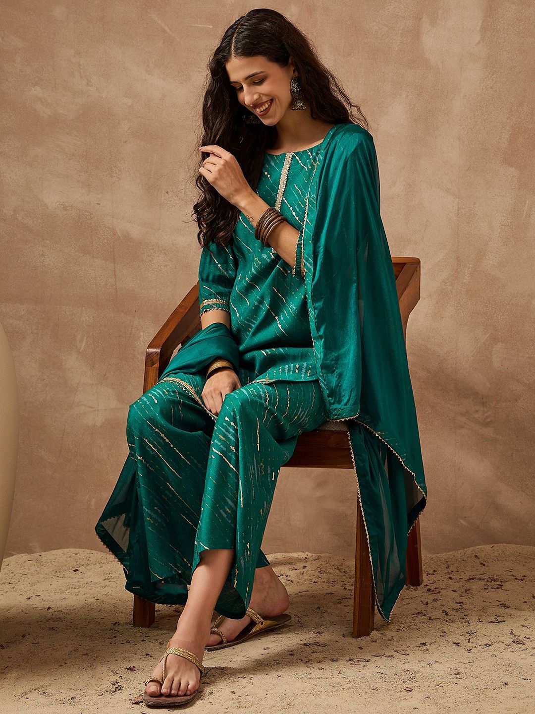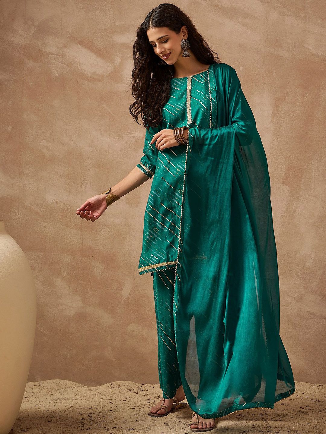 Anouk Women Leheriya Striped Kurta with Trousers & Dupatta