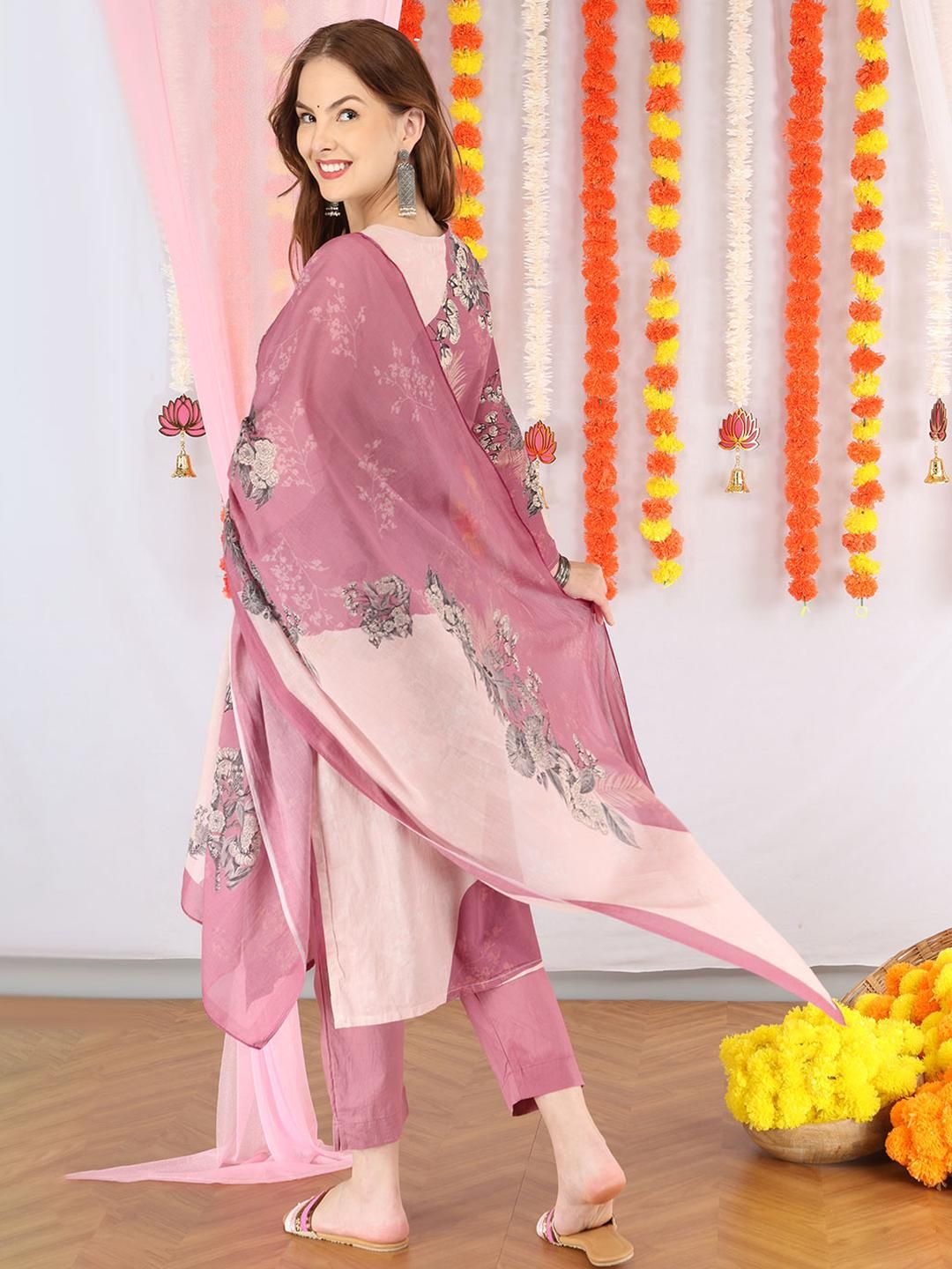 Anouk Women Mauve Pure Cotton Kurta Sets With Dupatta
