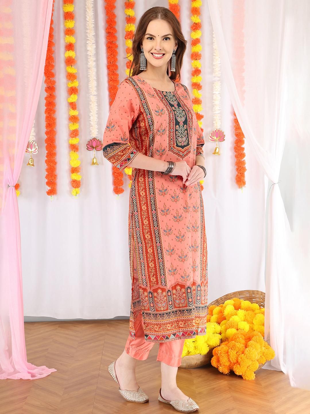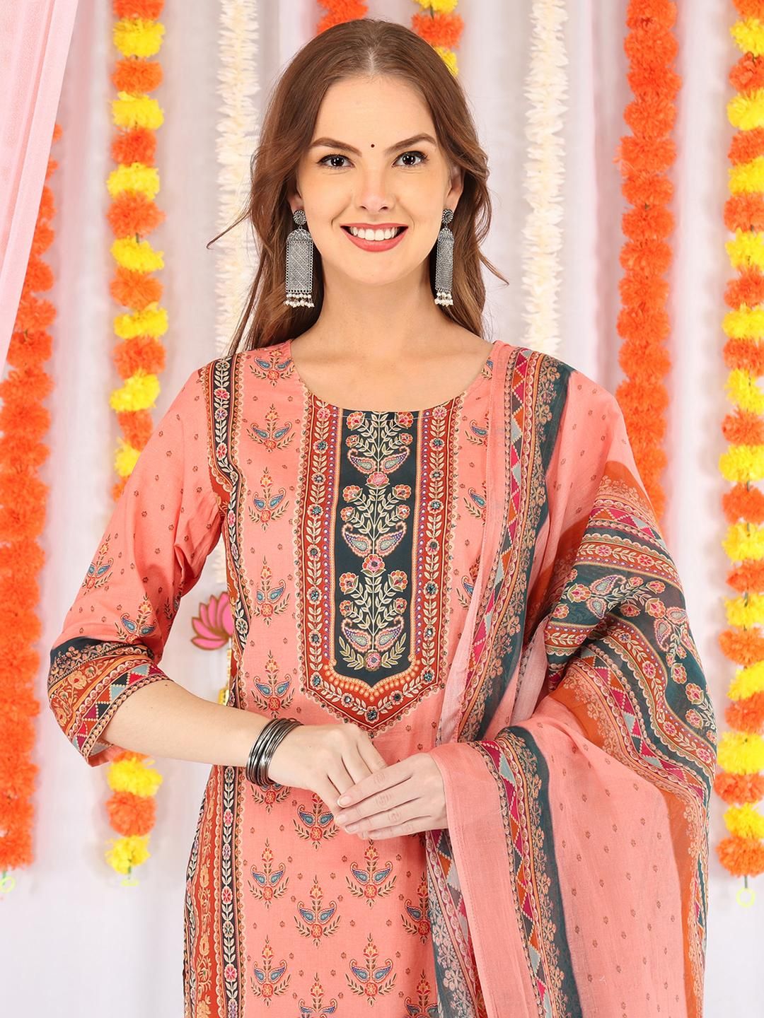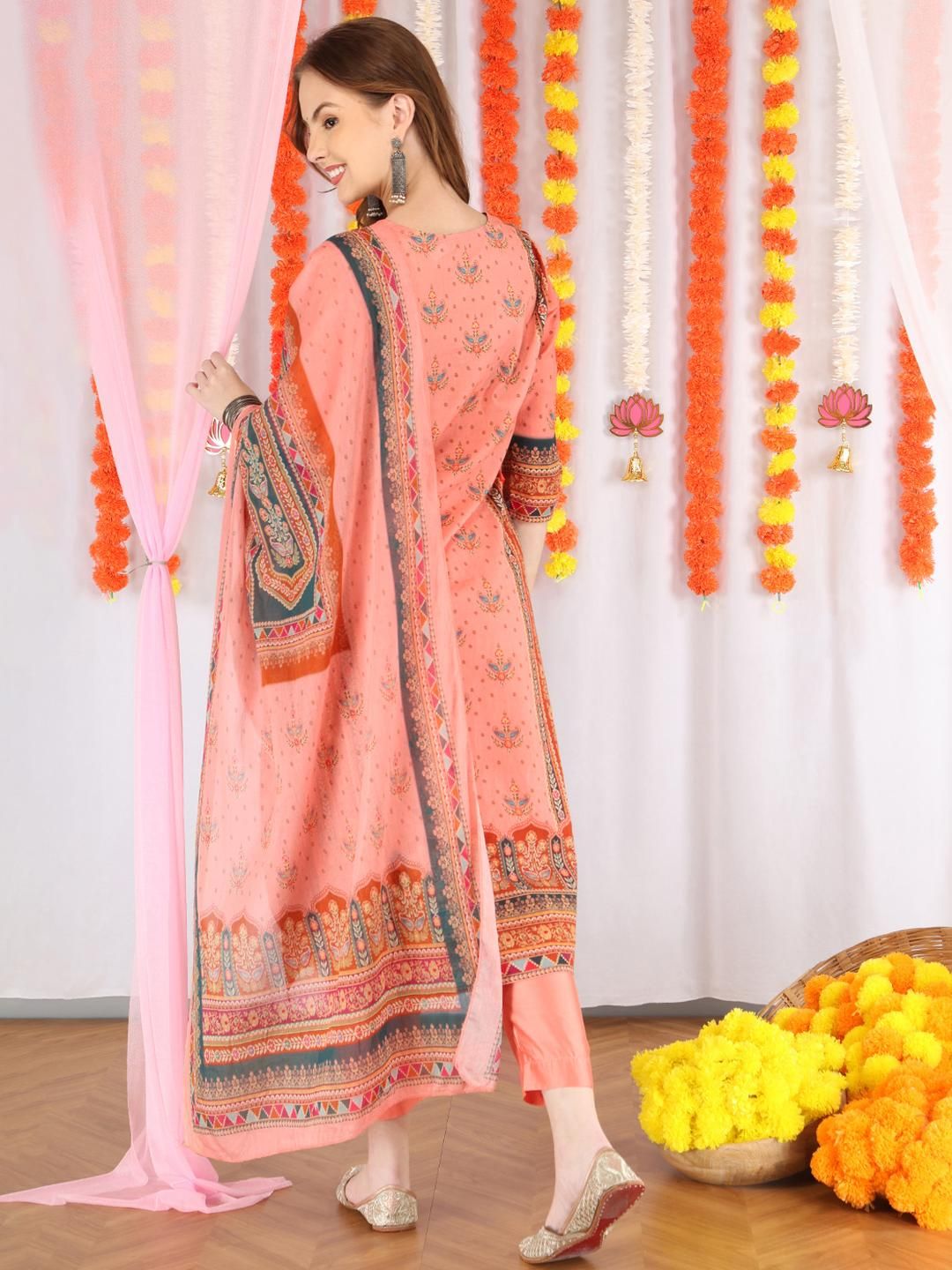 Anouk Women Peach Pure Cotton Kurta Sets With Dupatta