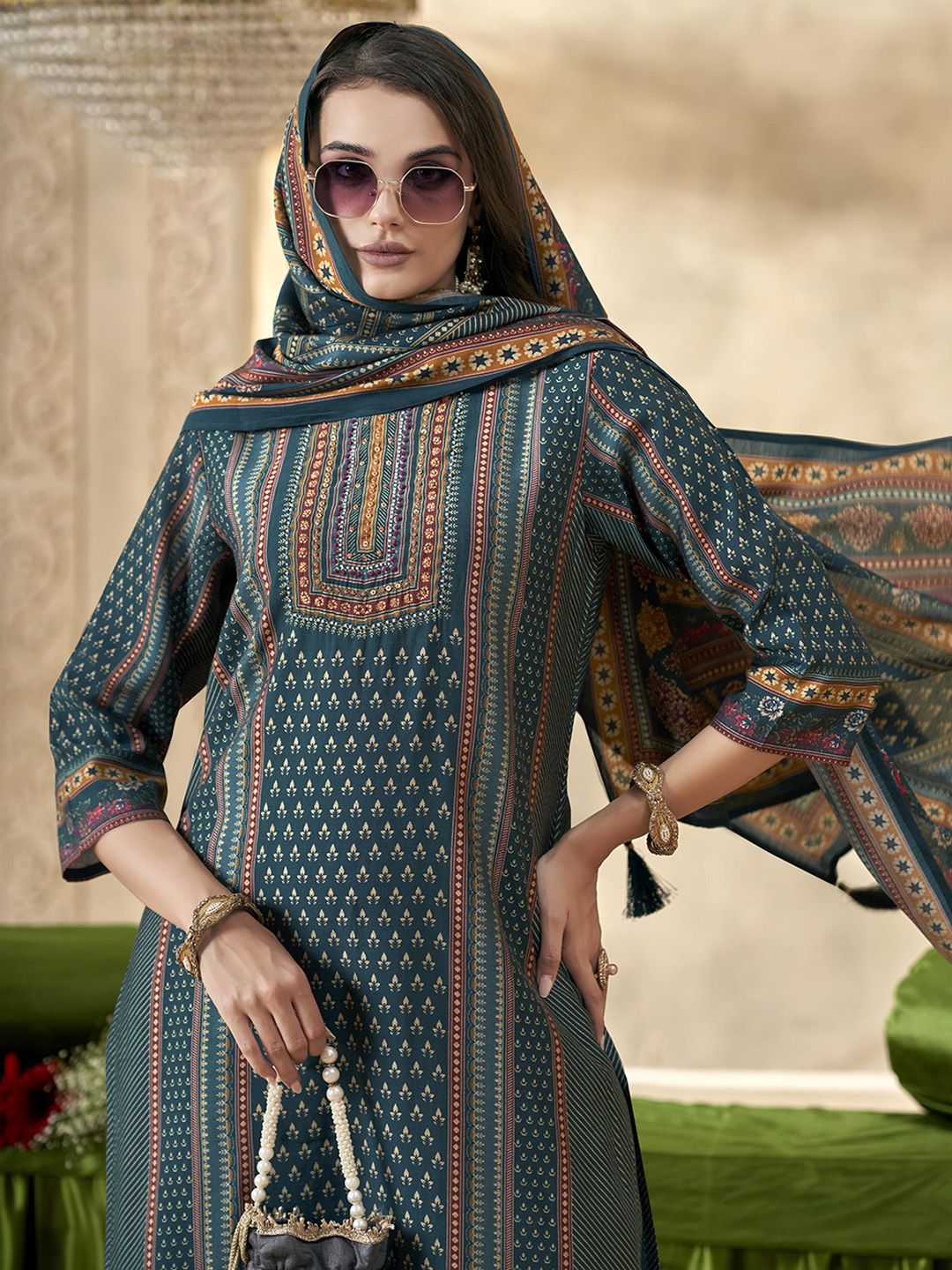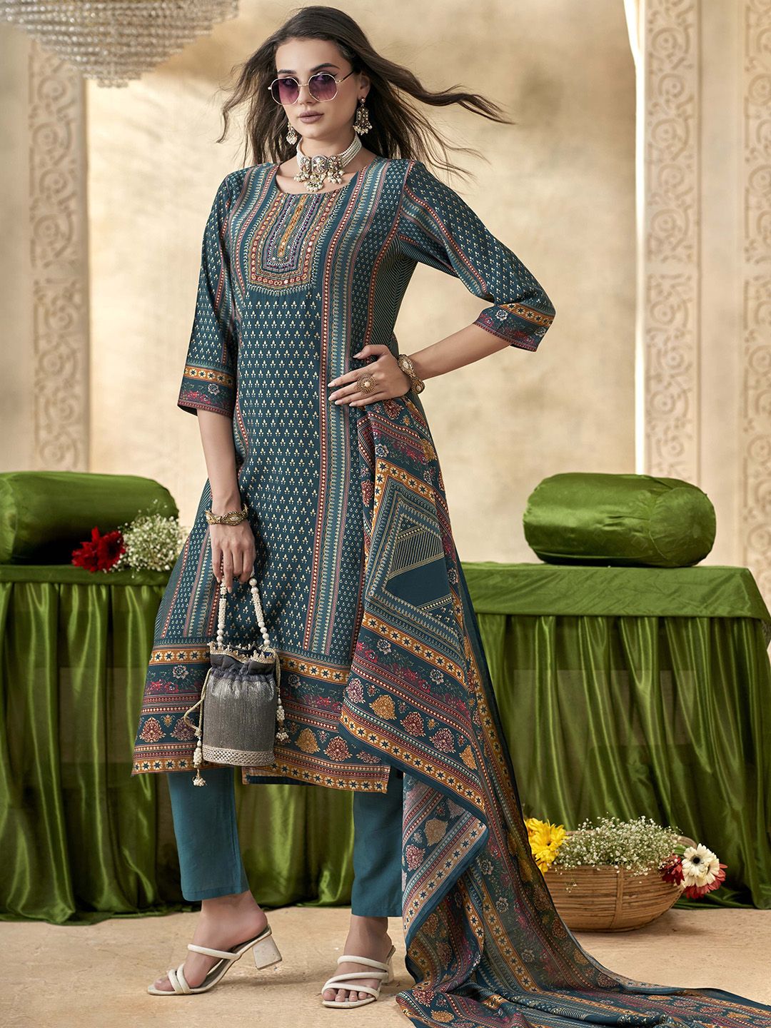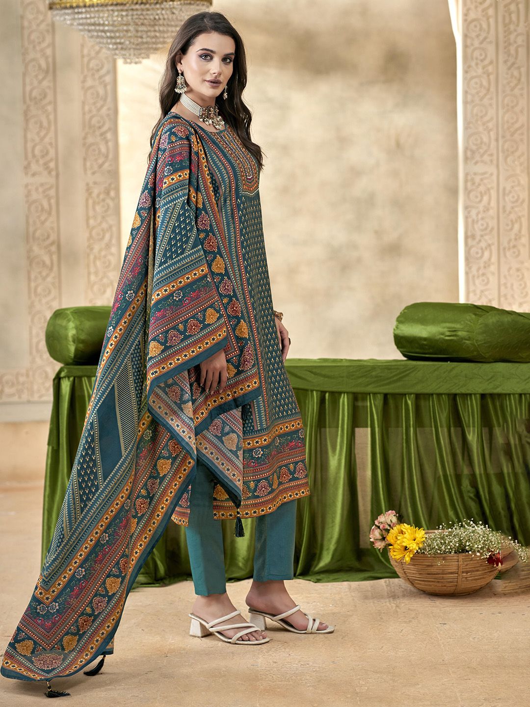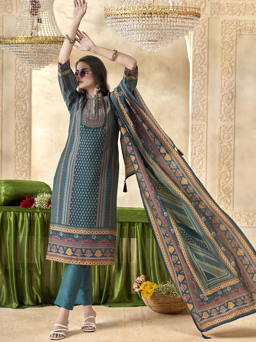 Anouk Women Printed Pure Silk Kurta with Trousers & Dupatta