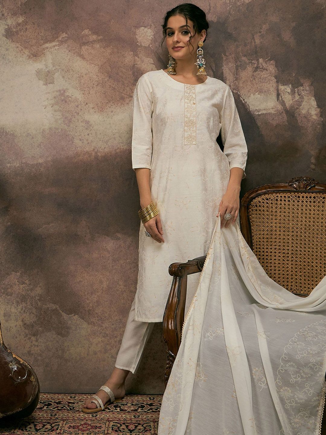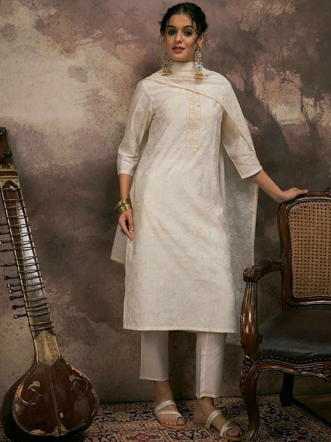 Anouk Women Self Design Kurta with Trouser & Dupatta