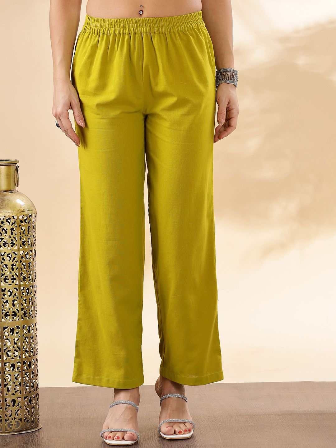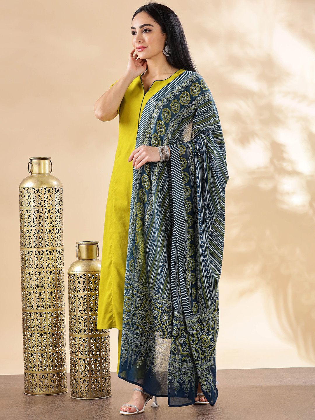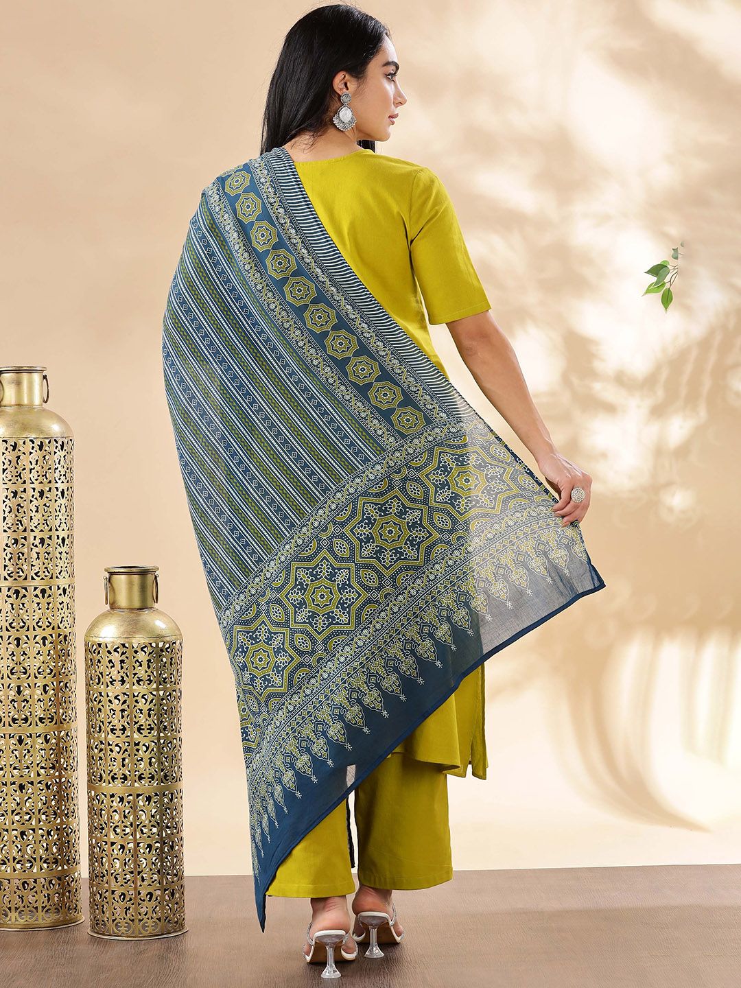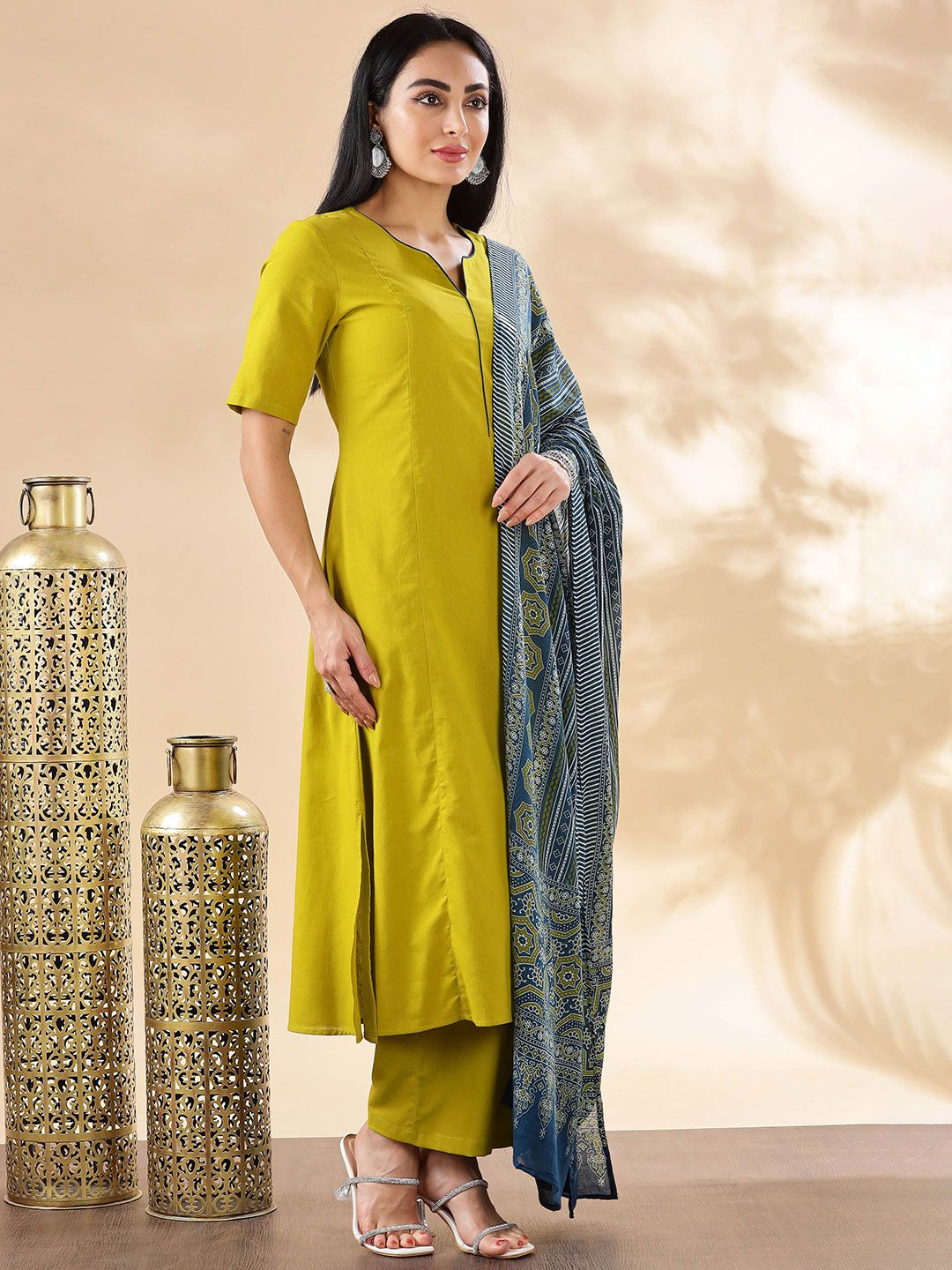 Anouk Women Solid Cotton Kurta with Palazzo & Dupatta