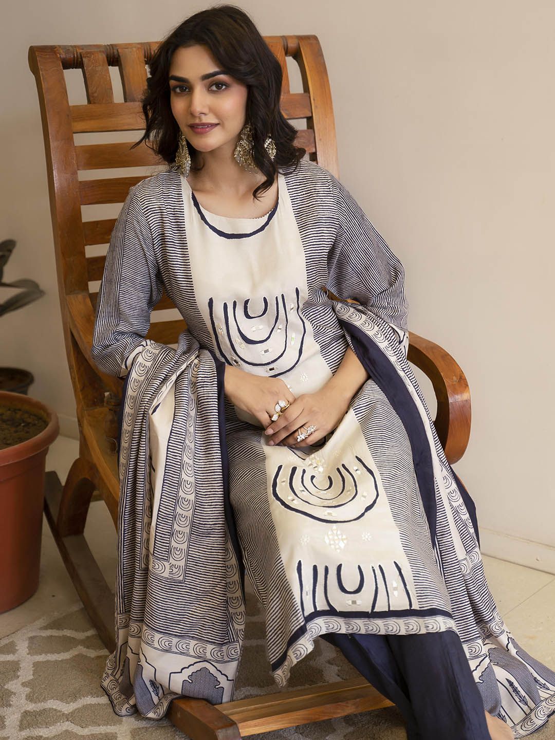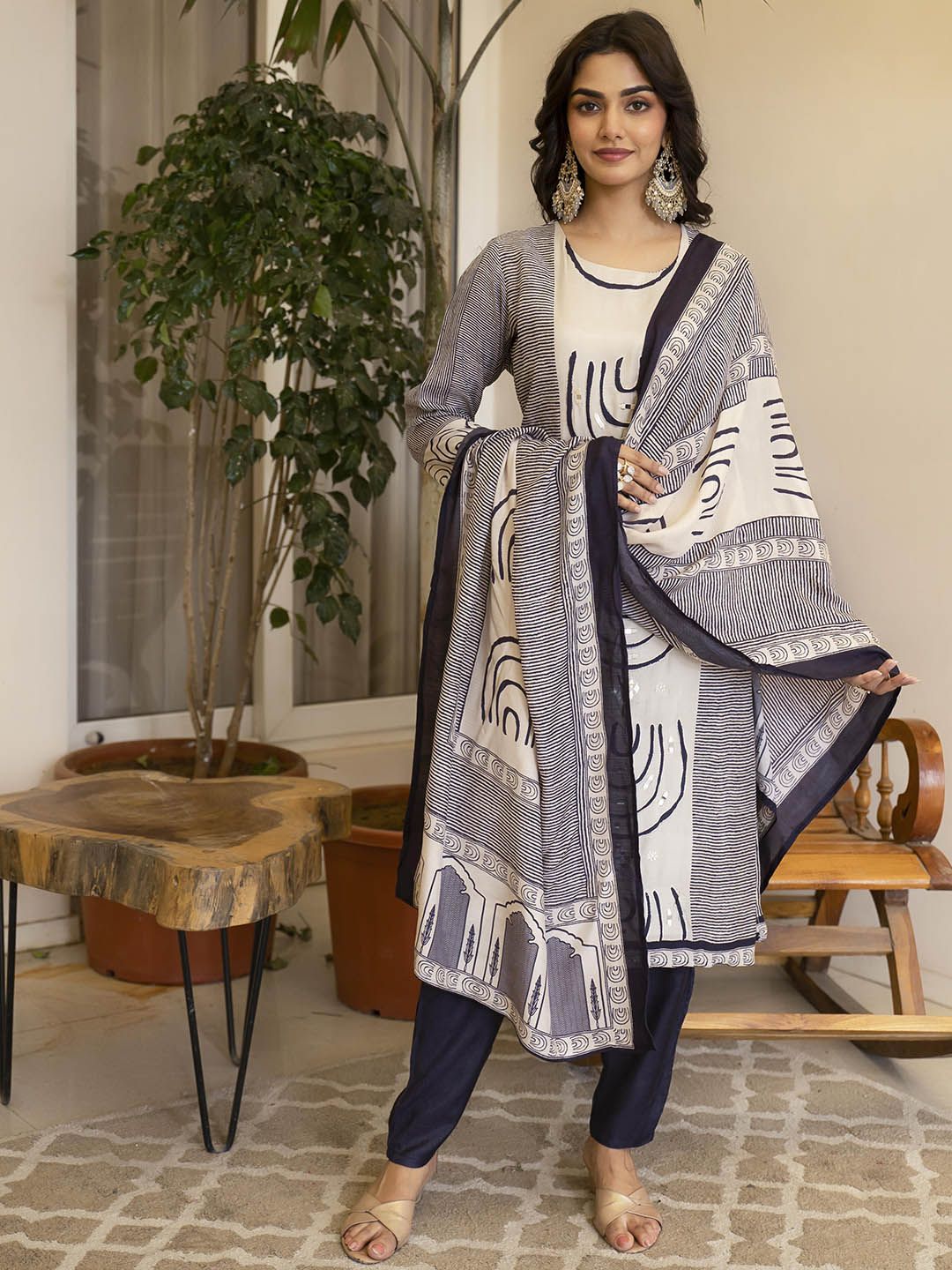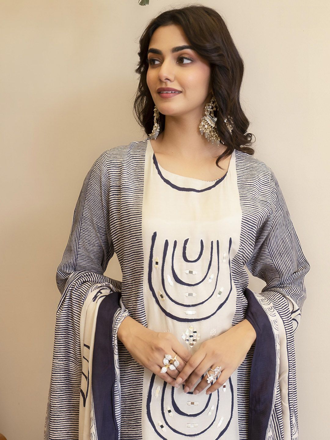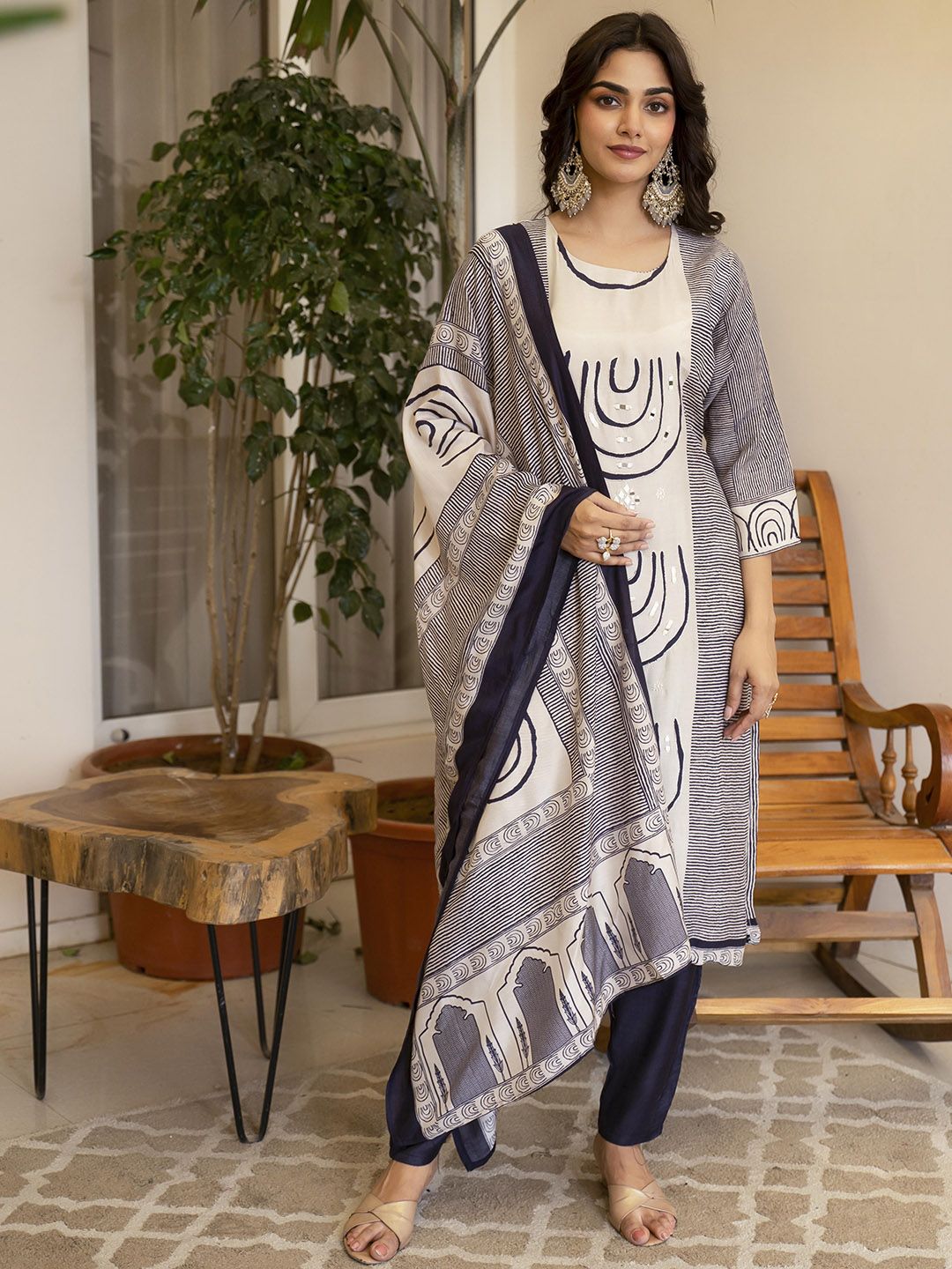 Anouk Women Striped Regular Kurta with Trousers & Dupatta