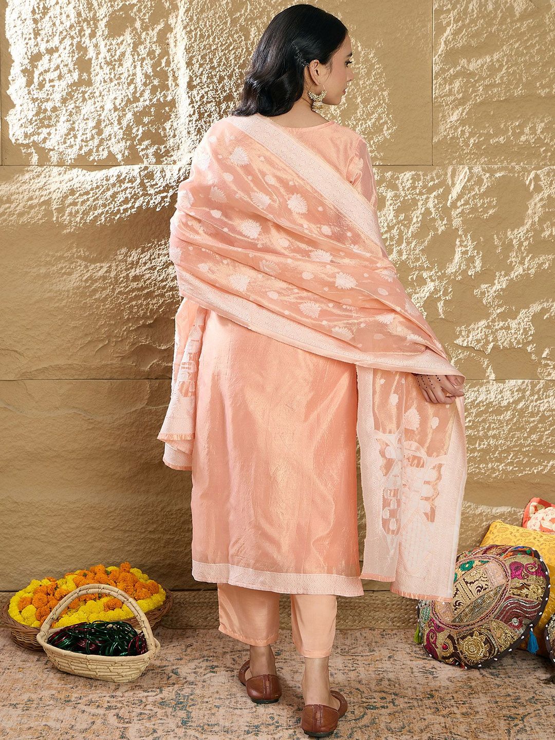Anouk Women Woven Design Regular Straight Kurta with Trousers & Dupatta