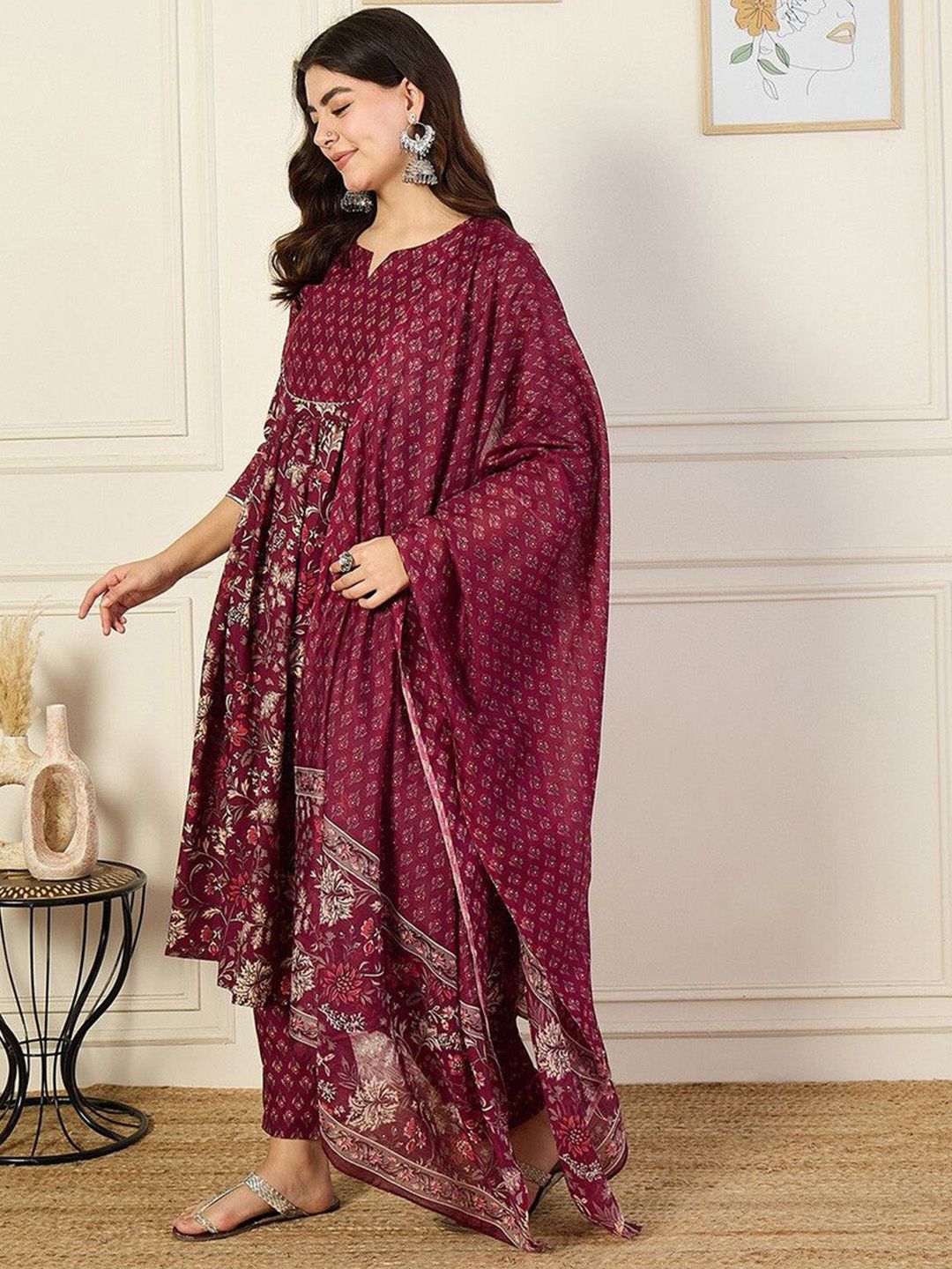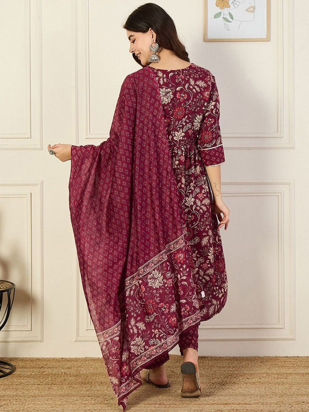 ARADHNA Women Ethnic Motifs Printed Anarkali Kurta with Trousers & Dupatta
