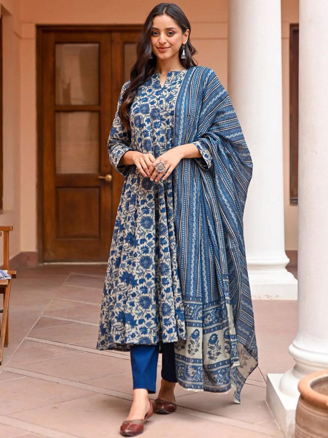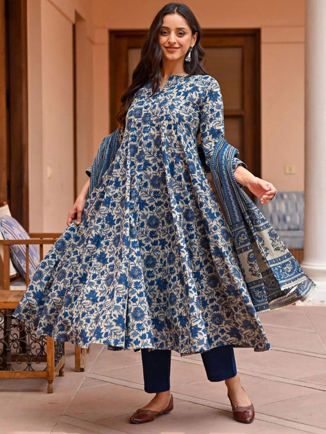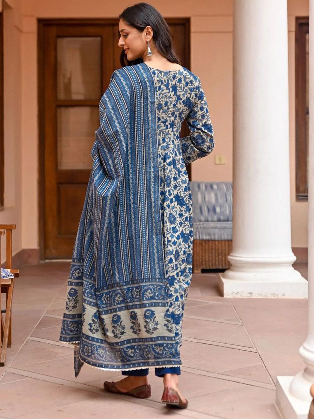 ARADHNA Women Floral Printed Regular Kurta with Trousers & With Dupatta