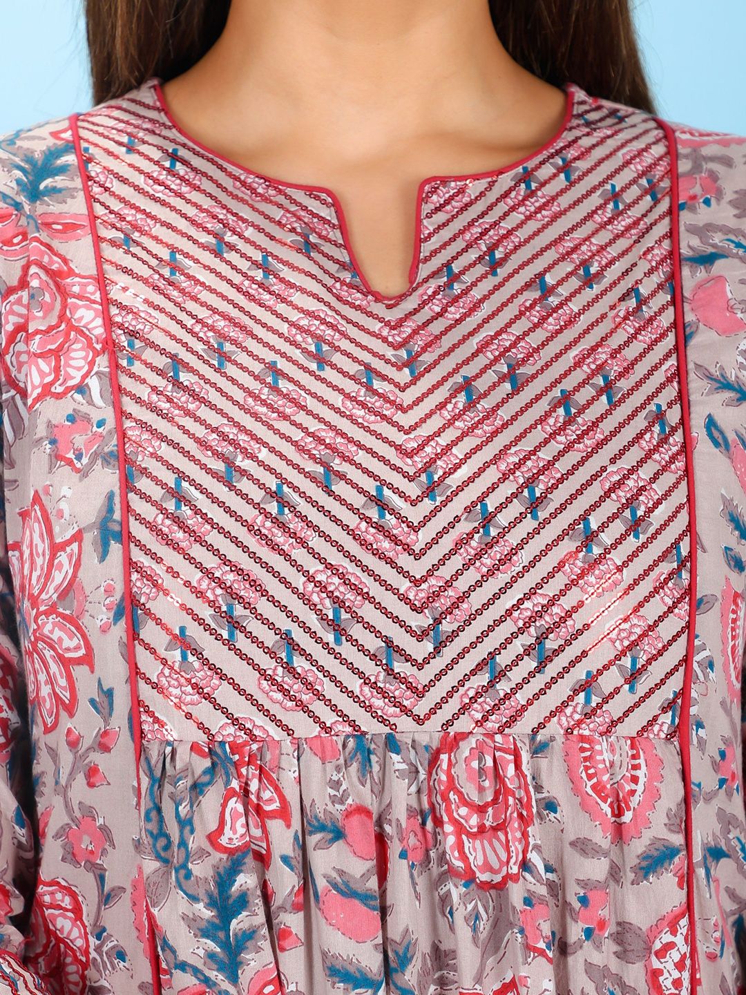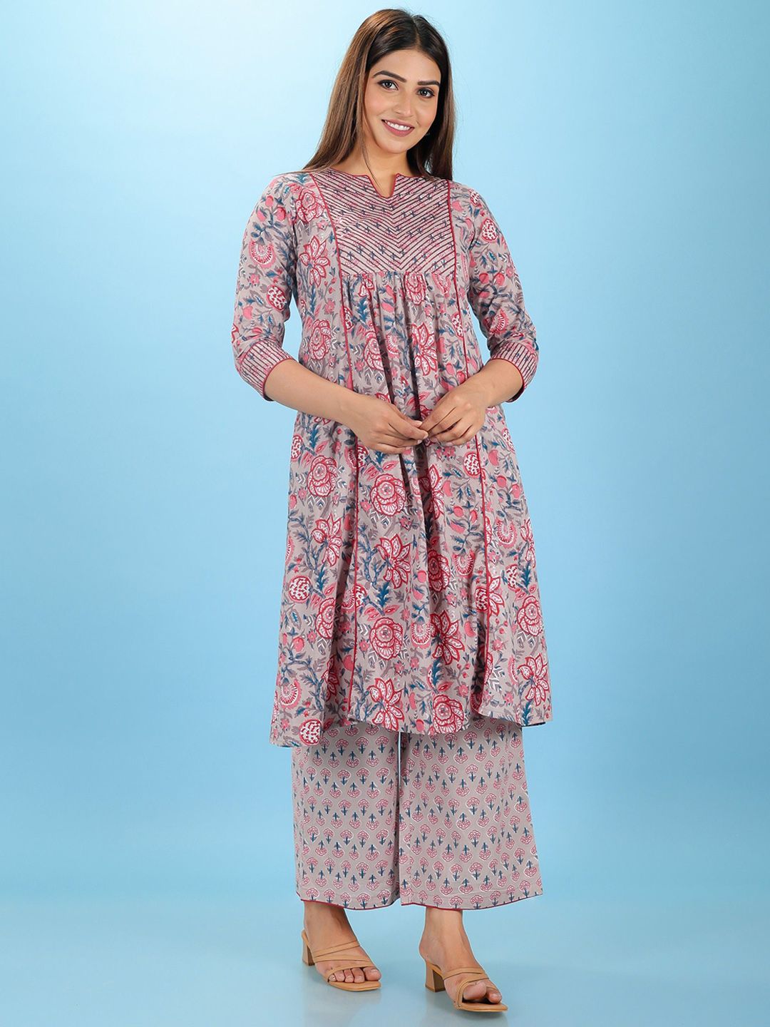 Buy this stylish Aramya Floral Printed Notach Neck Panelled Pure Cotton A-Line Kurta With Palazzos at Marincart Nepal. This product offers great quality and value. Perfect for those looking for the latest trends in fashion. Get yours now at unbeatable prices.