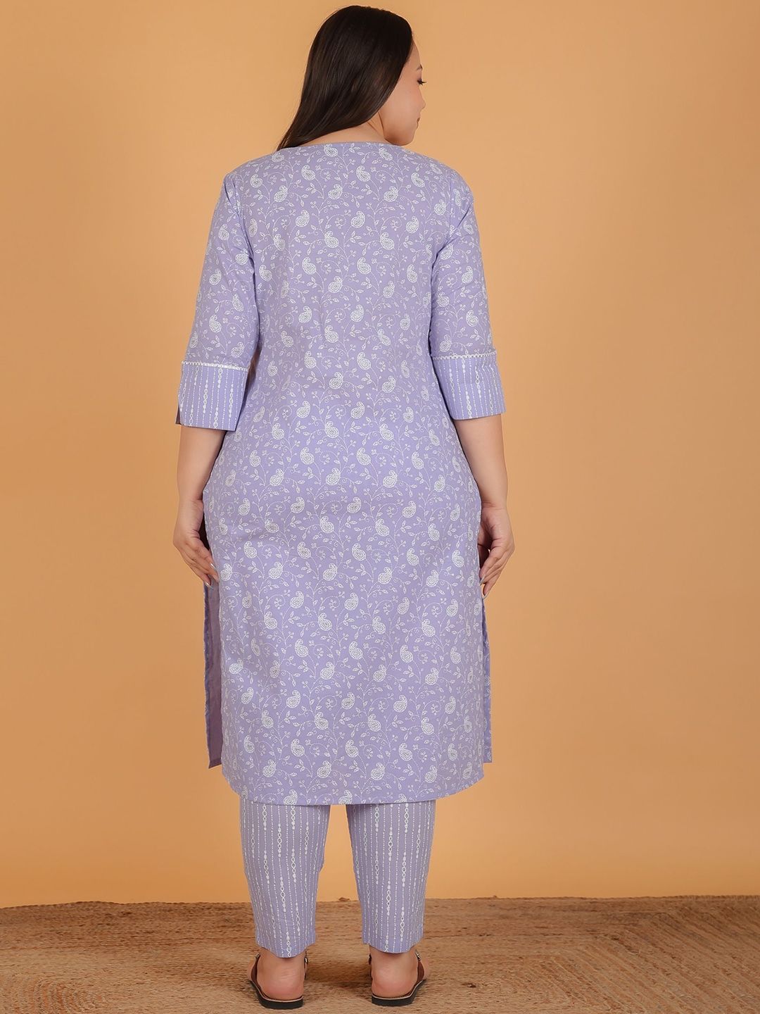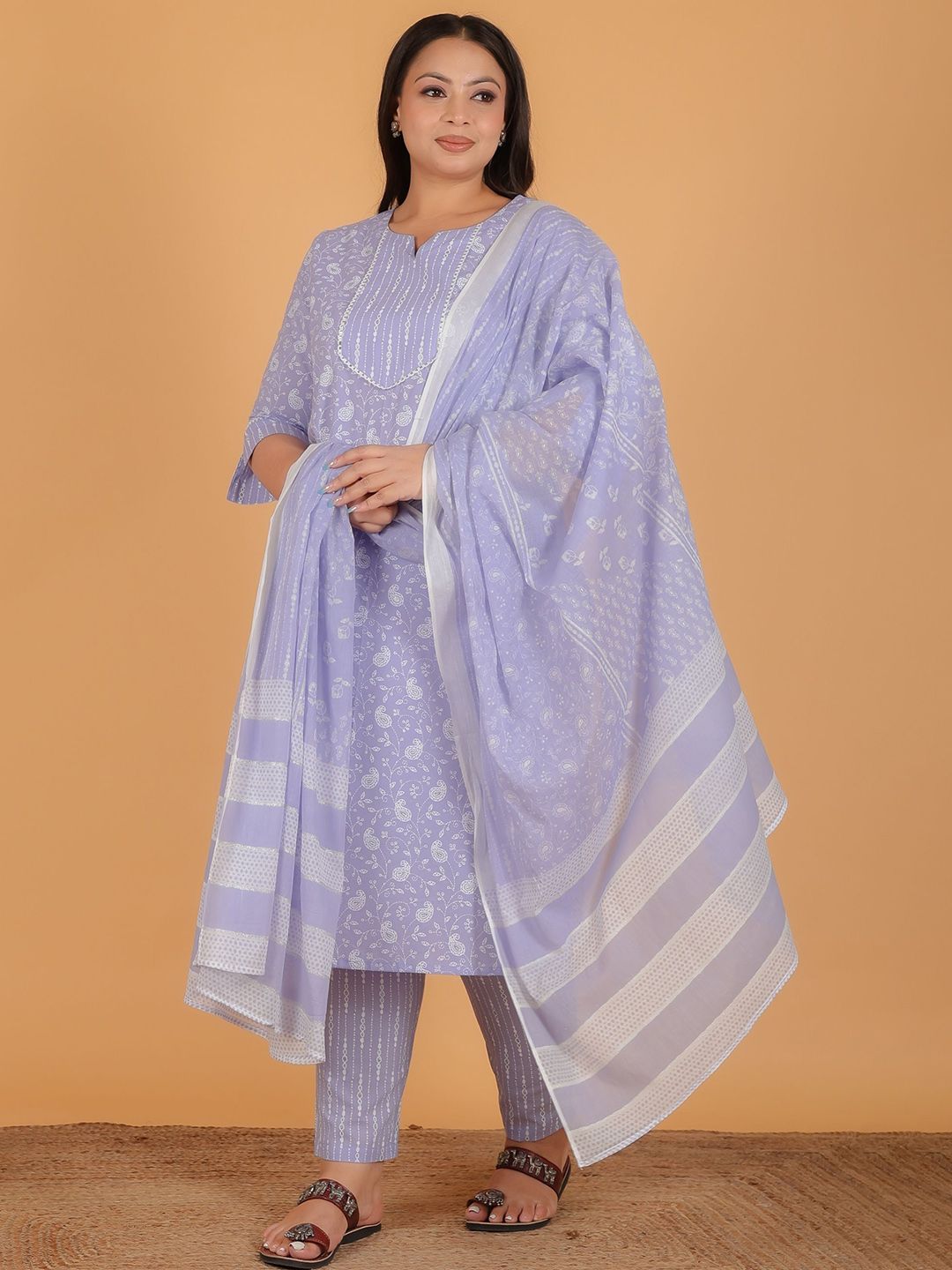 Aramya Paisley Printed Notch Neck Pure Cotton Straight Kurta With Trousers & Dupatta
