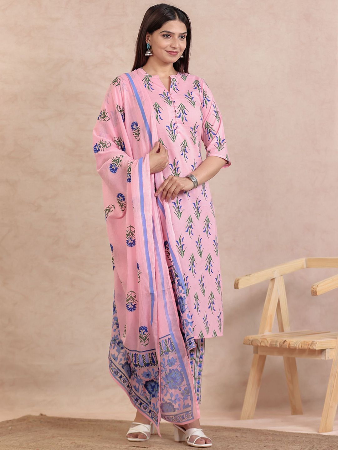 Aramya Women Floral Printed Regular Pure Cotton Kurta with Trousers & Dupatta
