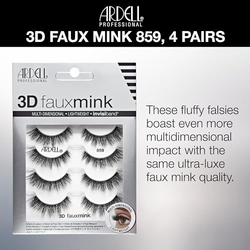 Ardell 3D Faux Mink 859 False Eyelash for Women, Fun, Fresh & Light False Eyelashes, Beautiful, Irresistible & Long-Lasting Lashes, Softest, Deluxe Faux Mink Fibers (4 Pack)