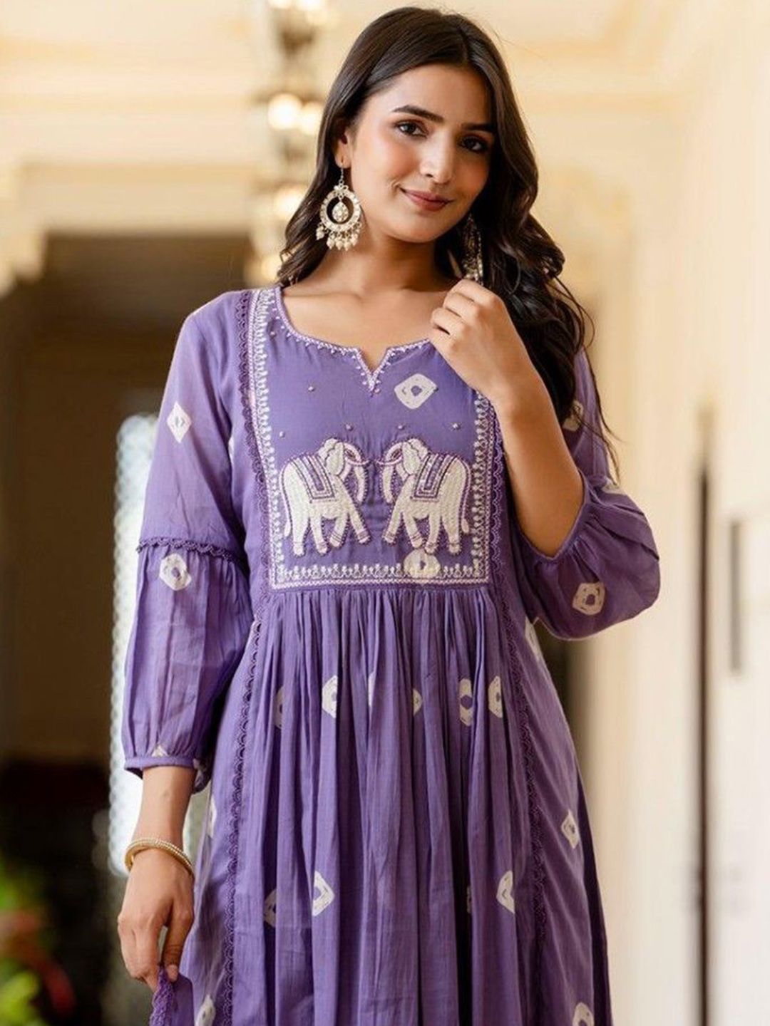 AREEH Women Bandhani Embroidered Thread Work Pure Cotton Kurta with Palazzos & Dupatta