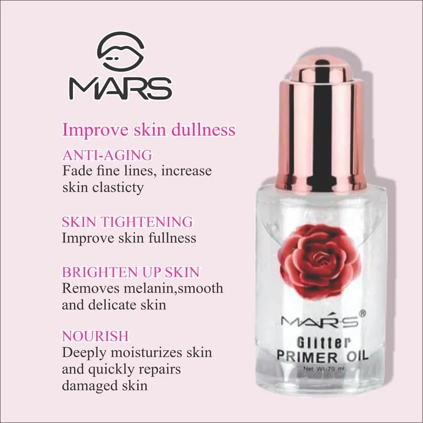 ars Glitter Primer Oil T4 35ml (Pack of 1) | Soft Texture | Hydrates and Nourishes Skins | Anti Aging Formula| Skin Tightening | Smooth Base For Makeup.