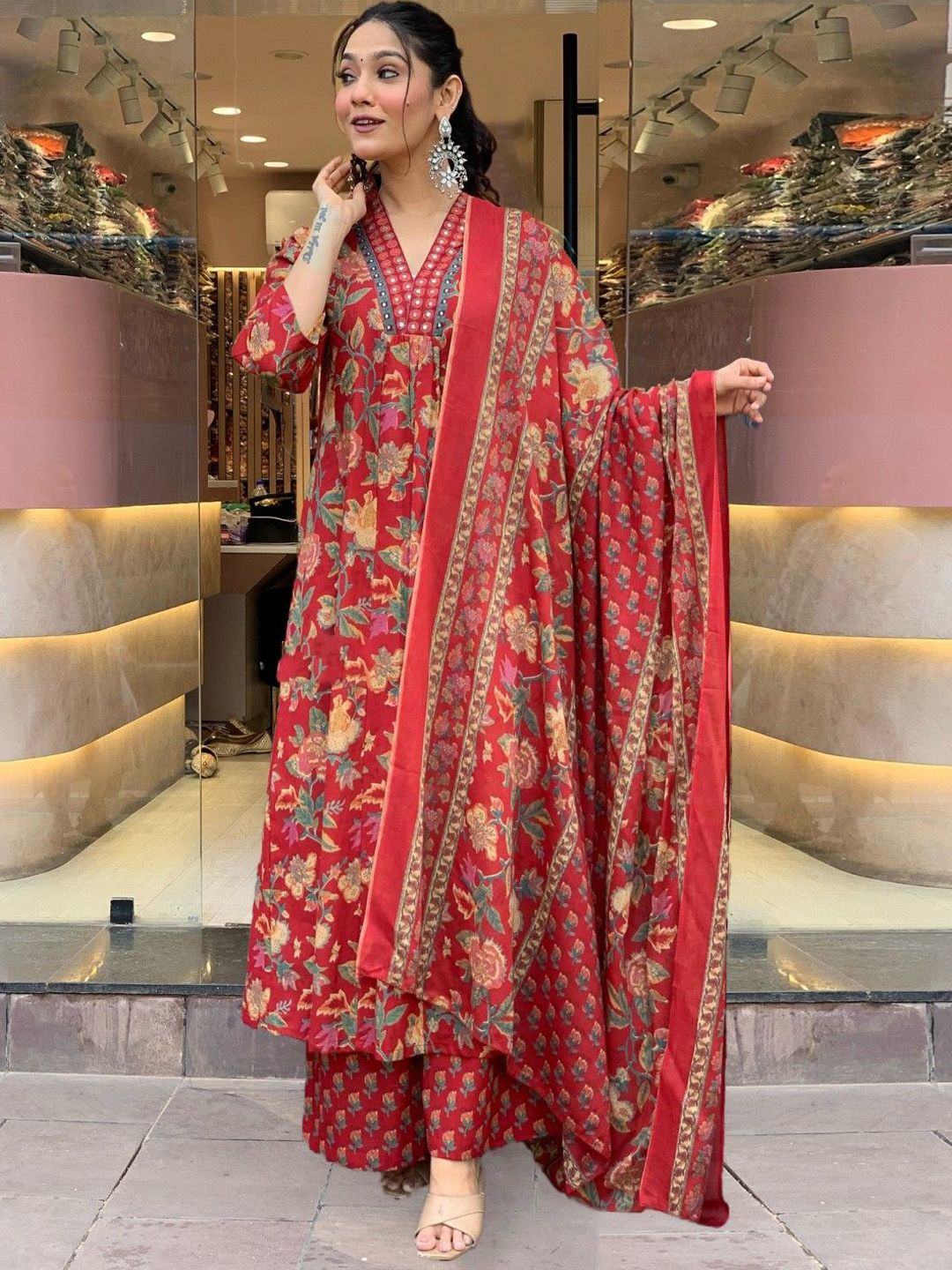 Buy this stylish Art Avenue Floral Printed V-Neck Mirror Work Pure Cotton Kurta With Palazzos & Dupatta at Marincart Nepal. This product offers great quality and value. Perfect for those looking for the latest trends in fashion. Get yours now at unbeatable prices.