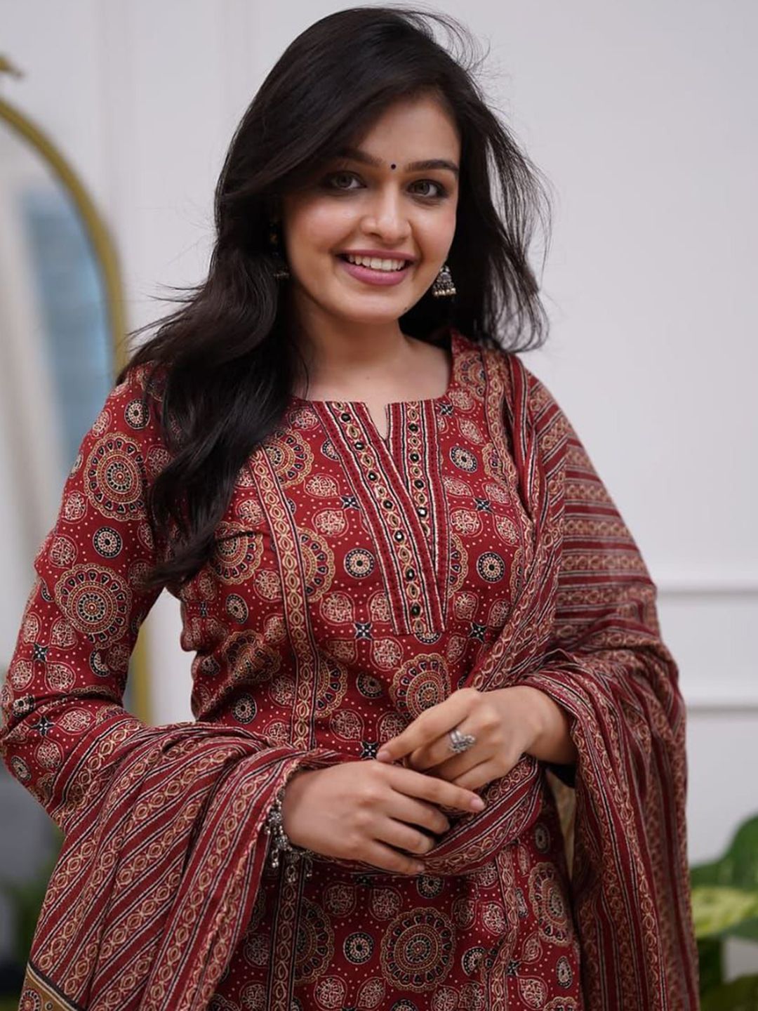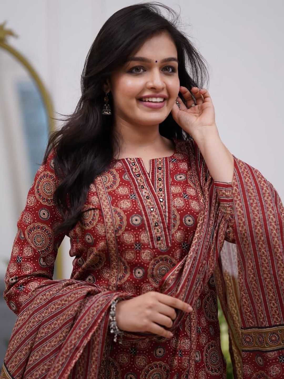 Art Avenue Floral Printed V-Neck Pure Cotton Kurta With Trousers